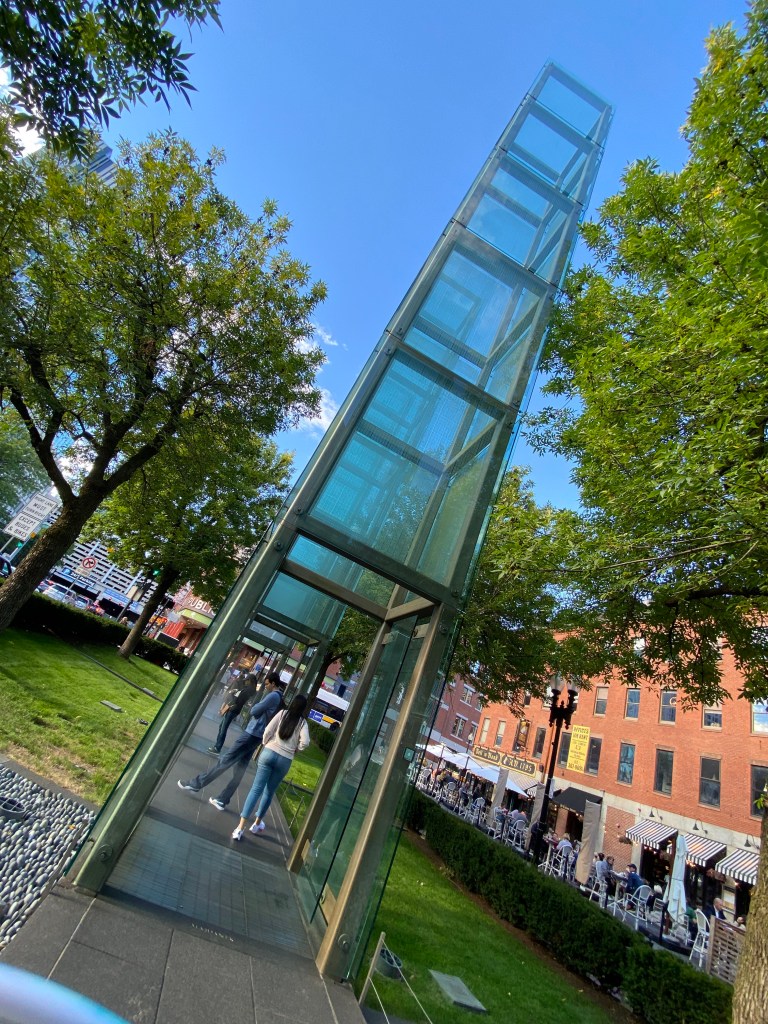 המשכנו ללכת, ולמרות שכבר עברנו בדרך הזו קודם, אנחנו מגלים דברים שלא ראינו קודם, כמו אנדרטת זכרון לשואה The New England Holocaust Memorial, עם 6 עמודי זכוכית מכוסים במספרים, אדים שיוצאים מהרצפה, ותזכורת לזה שהעולם הוא מקום די גרוע לפעמים.