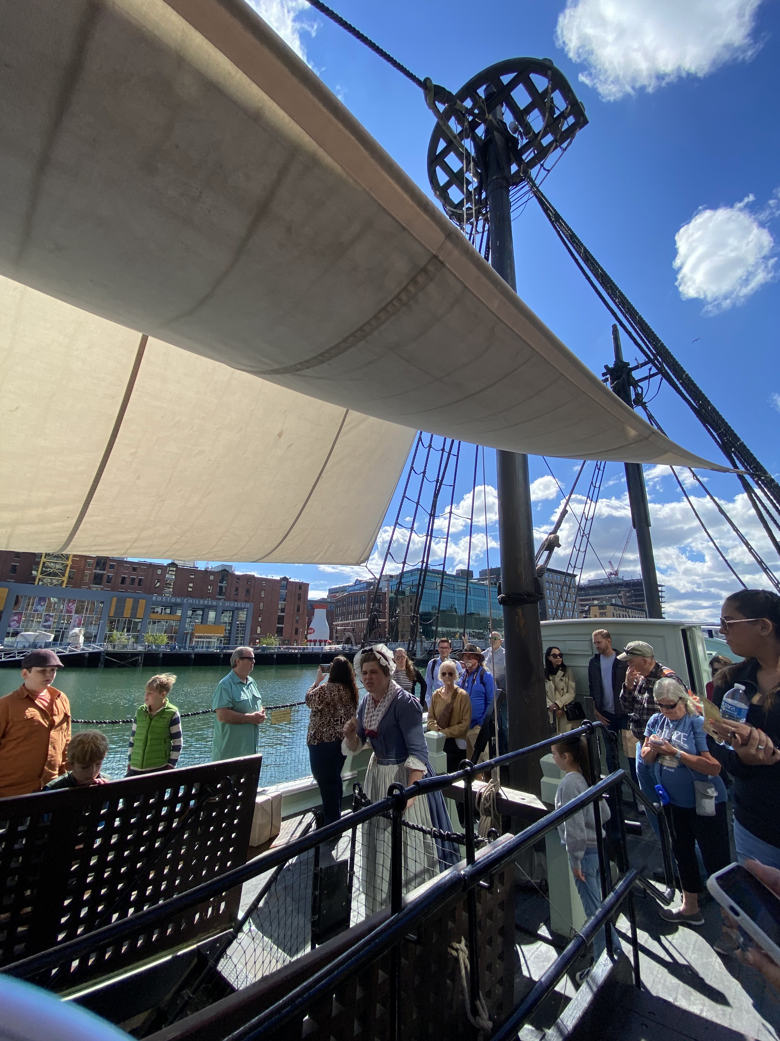 המשכנו בהליכה איטית עם הפסקות מנוחה לאורך Harbor Walk עד ליעד הבא שלנו – מוזיאון מסיבת התה Boston Tea Party Ships & Museum. המוזיאון מאד תיירותי, ומיועד למשפחות, אבל לא בטוחה שאם הילדים לא מבינים אנגלית הם יהנו. המדריכים לבושים בתלבושות תקופתיות, ומכניסים את המבקרים למסע קטן בזמן, לאחד האירועים המשמעותיים והסמליים במלחמת העצמאות האמריקאית – הלילה בו זרקו התושבים ארגזי תה שאוחסנו בספינות בנמל, כאות מחאה על הצורך לשלם מיסים אבל לא לקבל ייצוג בפרלמנט הבריטי. המוזיאון עשוי נהדר, ומאד חווייתי, ואפילו יש בו קופסה אחת שאולי השתתפה במסיבת התה! חלק מהסיור כולל ביקור בספינה ואת האפשרות הנחמדה לזרוק ארגז תה (למעשה ארגז פלסטיק, ארגזי התה היו כבדים לאללה) למימי הנמל. תיירותי, אבל עשוי יפה.