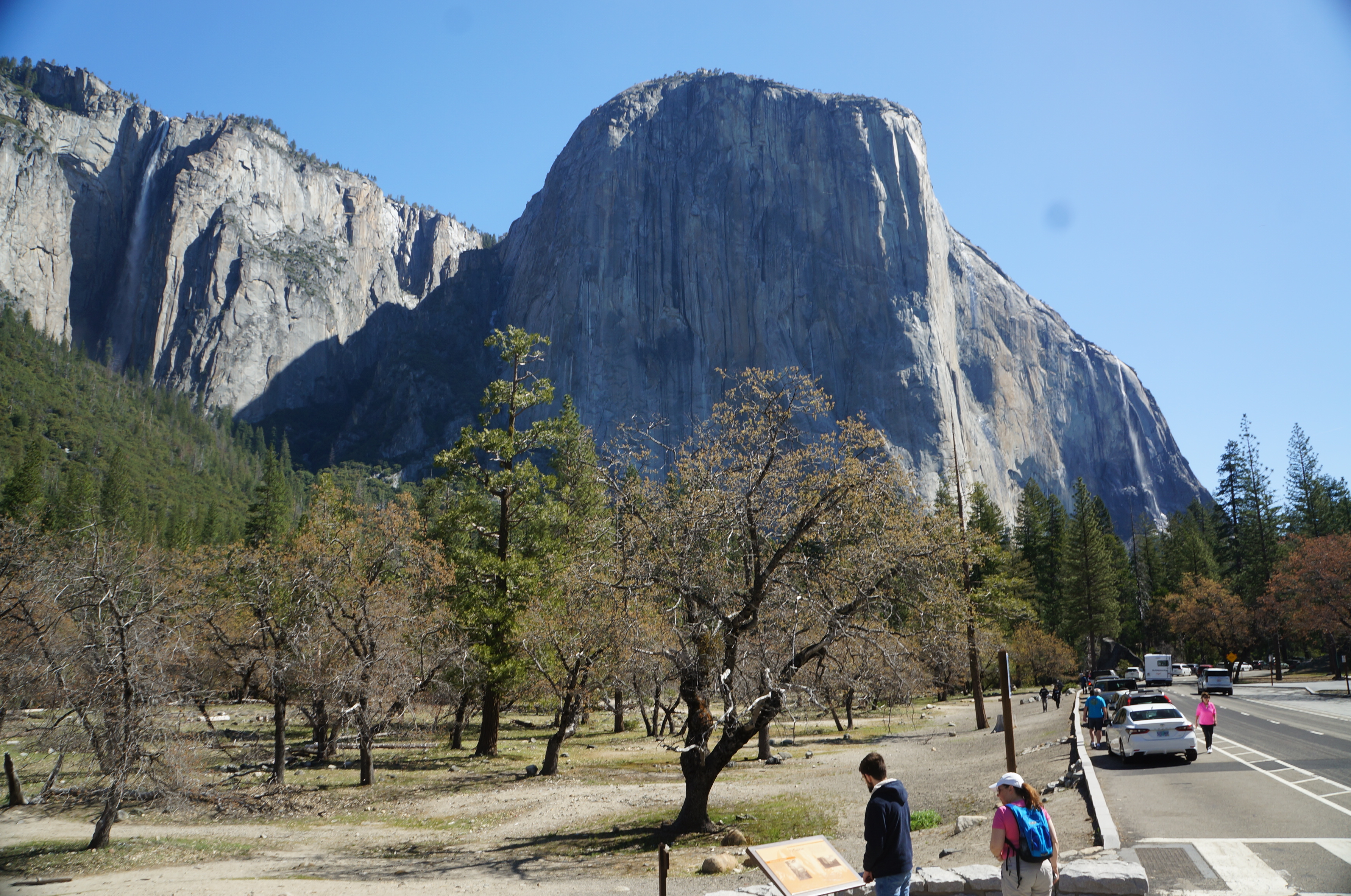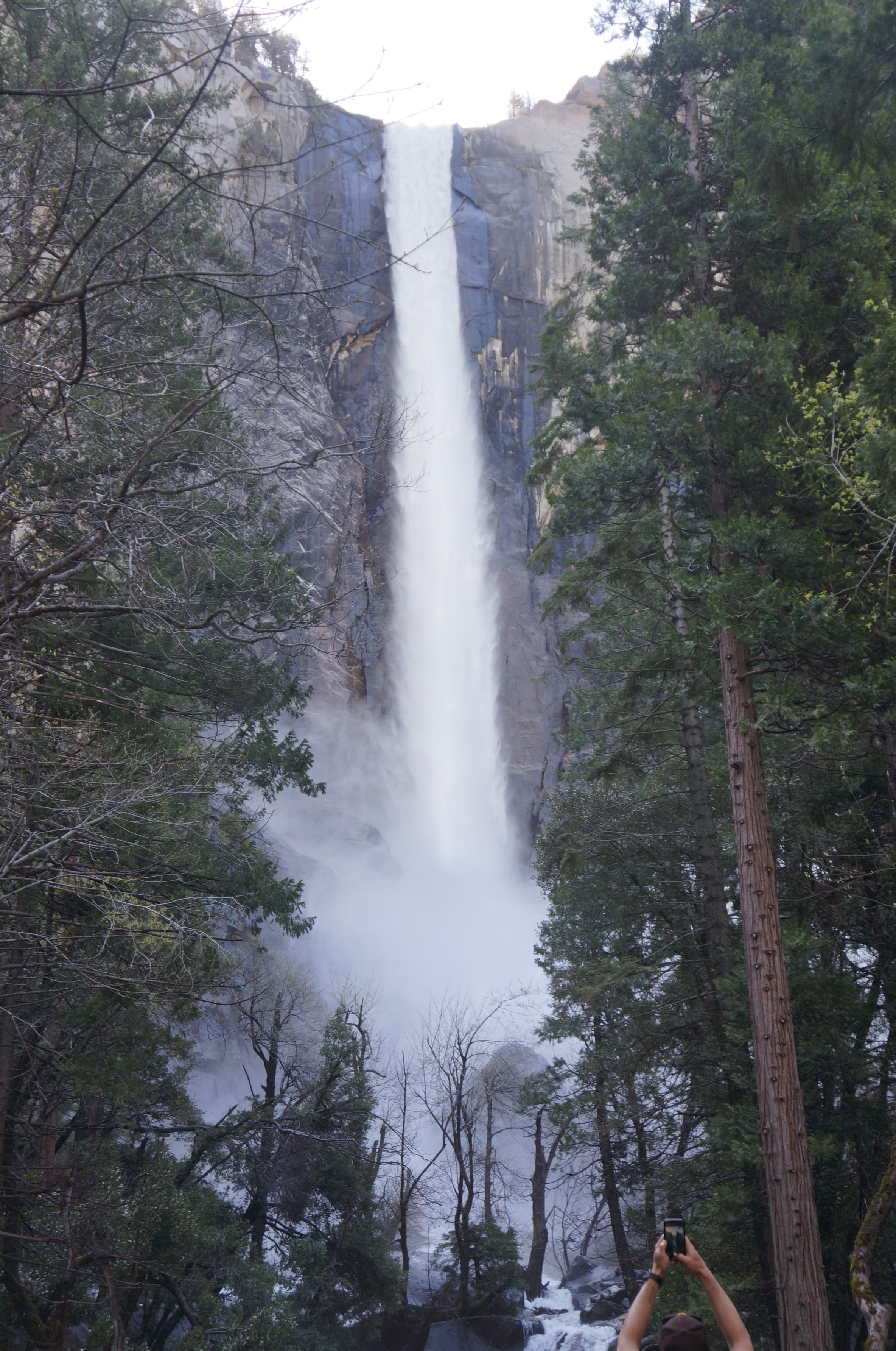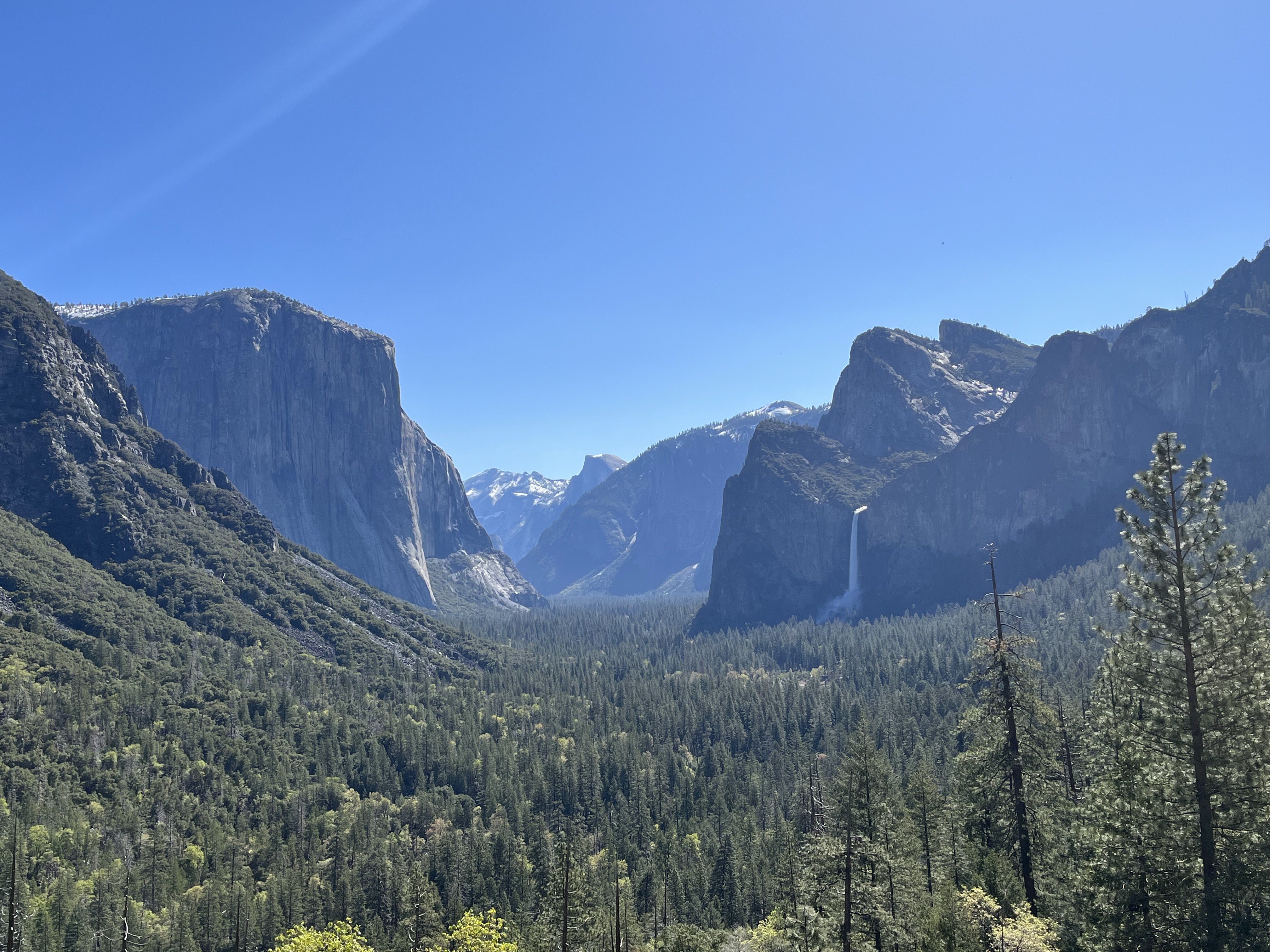נסענו חזרה לכיוון העמק, עם עצירה בBridal Veil Falls. החניה סגורה לשיפוצים אבל אפשר לעצור על הכביש הראשי וללכת משם ברגל. מהנקודה הזו יש גם תצפית מרהיבה של אל קפיטן. המפל מלא מלא מים ורסס קפוא מתעופף באוויר. זה מסלול קצרצר ולא אתגרי בכלל אבל לא סלול לעגלות.