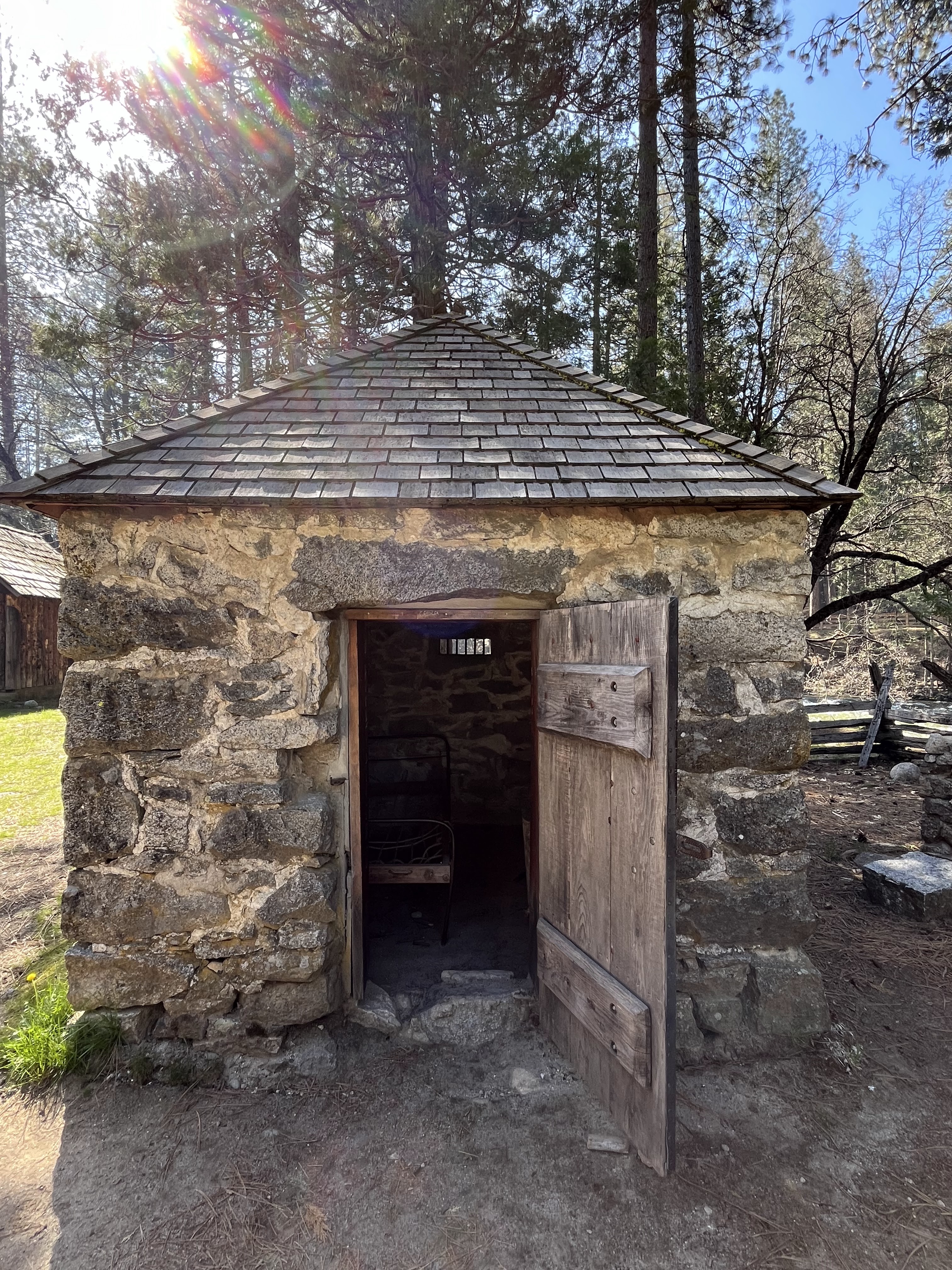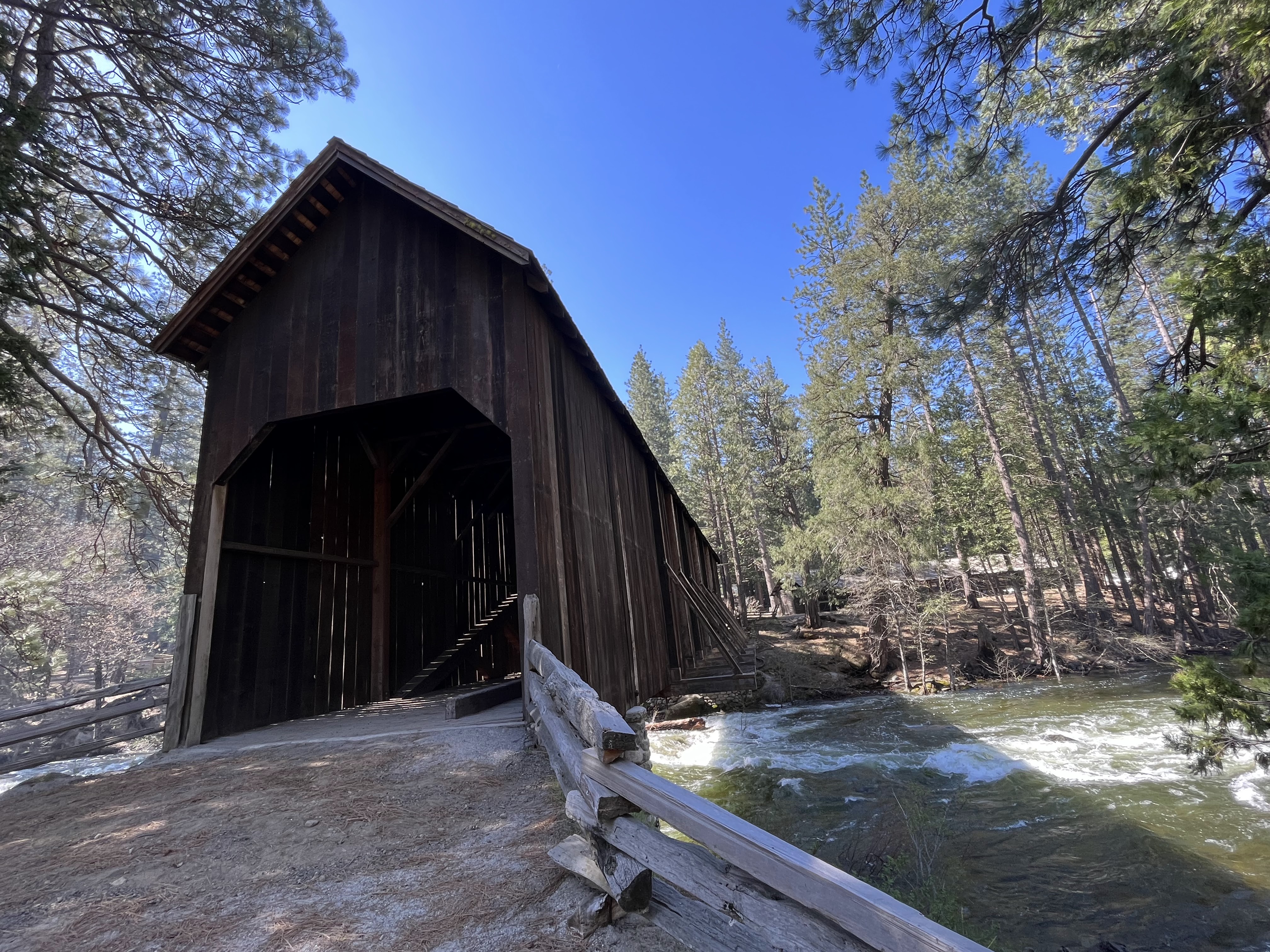 עצרנו באיזור המוזיאון הפתוח עם הגשר המקורה והבתים ההיסטוריים Yosemite History Center, מדובר במבנים אותנטיים שהובאו למקום מאיזורים שונים בפארק מתקופות שונות שלו. כיוון שזו לא העונה עדיין, רוב המבנים היו סגורים אבל עדיין היה (לי) מעניין להציץ בחלונות, לקרוא את ההסברים, ולהעריך את החלוצים שגרו באיזור לפני עשרות ומאות שנים. בקיץ יש במקום פעילויות כמו רכיבה בעגלה עם סוסים או ביקור בנפחיה של פעם.