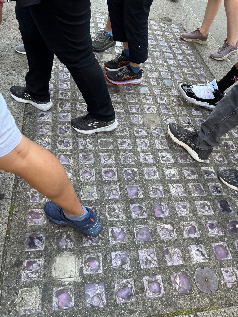 מהמוזיאון לקחנו אובר למלון, השארנו את הדברים והלכנו לארוחת צהרים במסעדת סושי יפנית נחמדה ממש מעבר לכביש Sushi Katsu-ya, ואז צנחנו לשנ"צ כי בכל זאת, קמנו מוקדם! אחר הצהרים לקחנו אוטובוס לאיזור פיוניר סקוור כדי להצטרף לסיור התת קרקעי Bill Speidel's Underground Tour. הסיור לקח אותנו לאיזורים של העיר סיאטל שנקברו מתחת לאדמה אחרי ששריפה גדולה החריבה את מרכז העיר, והוחלט לנצל את המאורע לבניית מערכת ביוב עירונית ולהרים את הרחובות בכמה מטרים. המדריך היה מעולה, הסיפורים מרתקים, משעשעים, ודי לא יאומנו, ומאד נהנינו. בסיור יש הרבה מדרגות (יורדים ועולים מספר פעמים) אז לא הכי מתאים למי שמתקשה בהליכה. ואם אתם הולכים בדאונטאון סיאטל ורואים ריבועי זכוכית סגולה על הרצפה, דעו שאלו חלונות קטנטנים ששימשו להאיר את הרחובות שמתחת. במקור הזכוכית היתה שקופה, וקיבלה את הצבע הסגול עם הזמן.