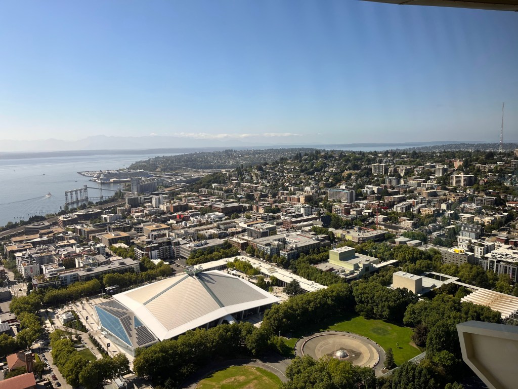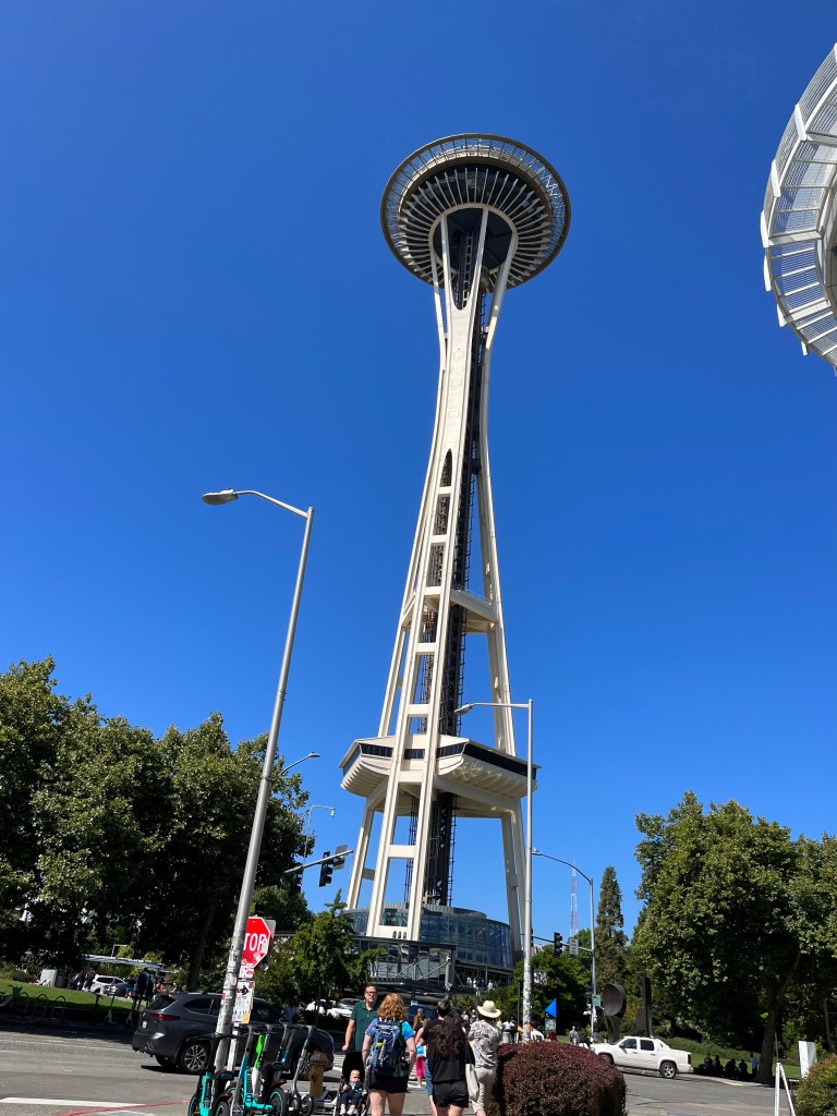 כשיצאנו מחדר הבריחה כבר היה שמשי לחלוטין, אז מיהרנו (ברגל) למחט החלל Space Needle. העליה לקחה כ-45 דקות בתור משתרך שלאורכו יש הסברים על בניית המבנה הנראה כחללית על מגדל בתחילת שנות ה-60 בשיא מירוץ החלל. למעלה יש מרפסת תצפית בקומה העליונה ובקומה שמתחת יש רצפה מסתובבת עם חלונות זכוכית. נחמד, אבל לא איזה וואו למי שכבר ראו איזו תצפית או שתיים בניו יורק.