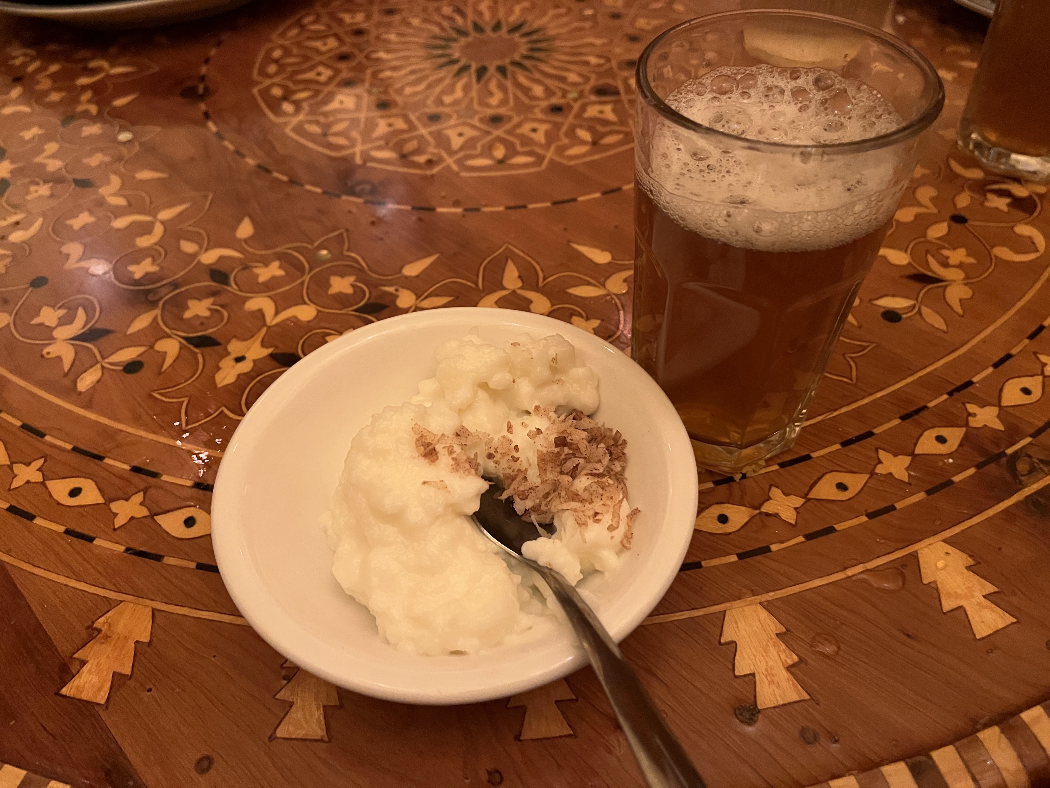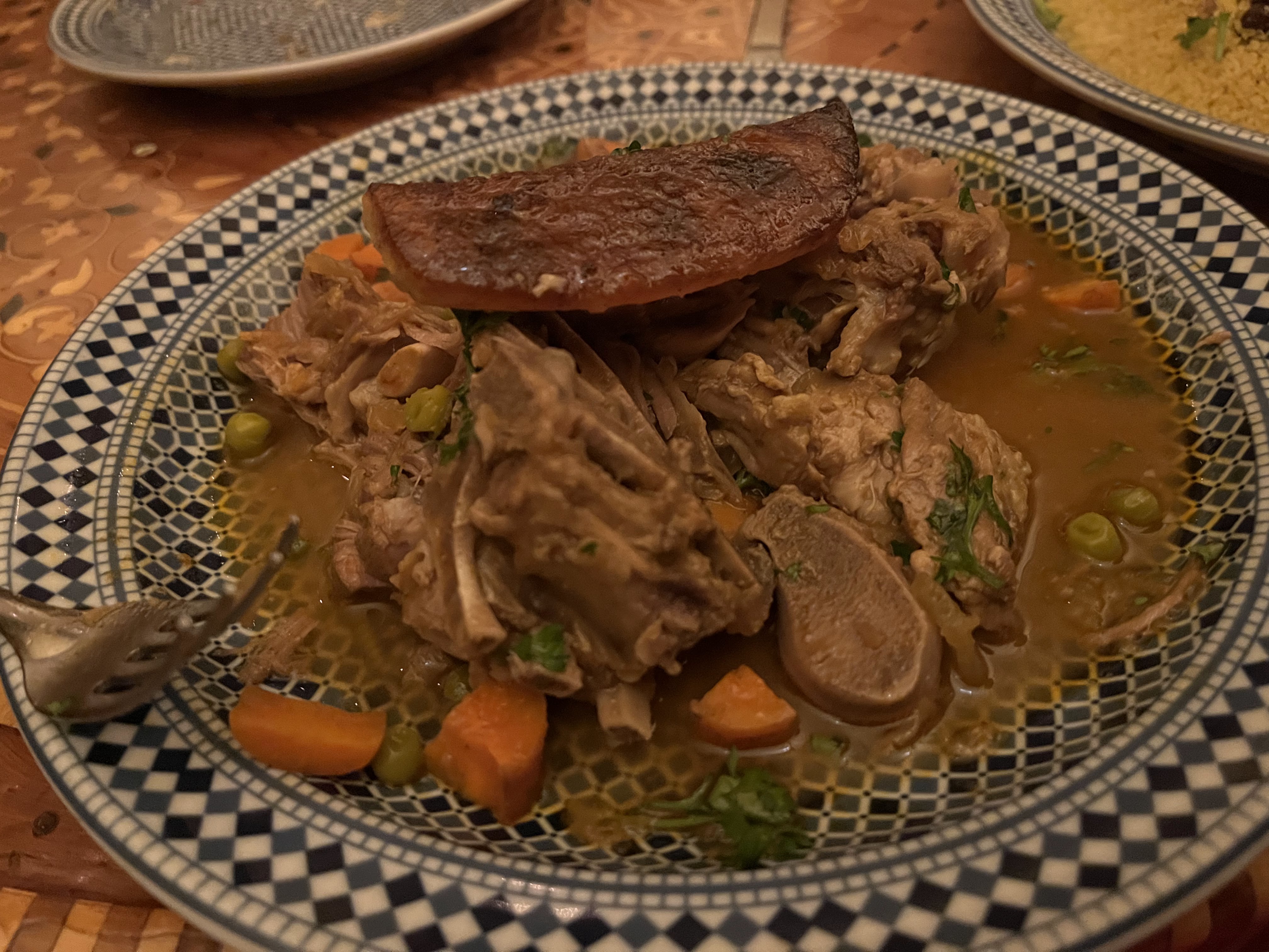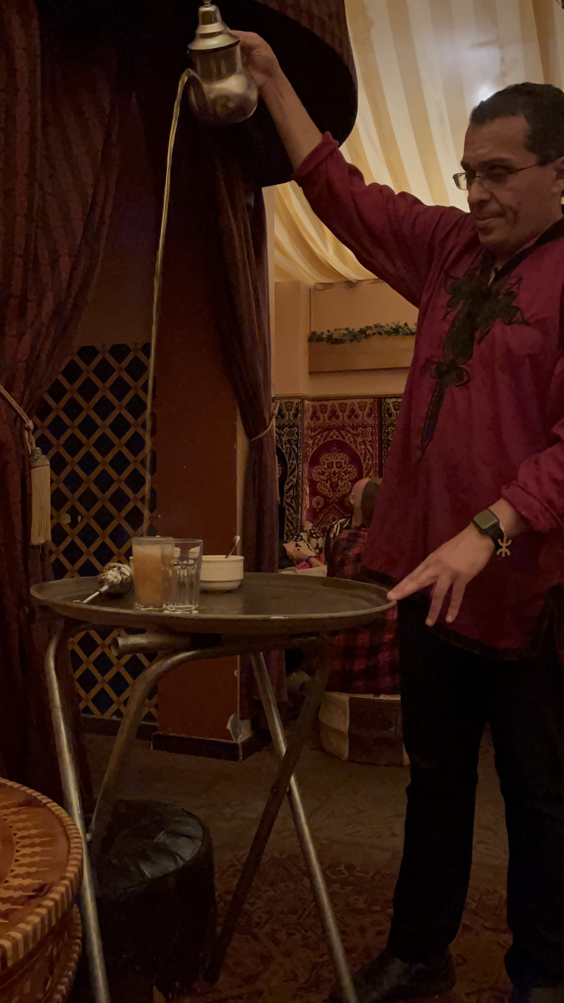 חזרנו למלון למנוחה קלה ובערב הלכנו למסעדה בשם Marrakesh לארוחת ערב בסגנון מרוקאי. הישיבה במסעדה על כריות וספות נמוכות והערב מתחיל בנטילת ידיים. התפריט מסורתי כצפוי, ובהזמנת מנה עיקרית מקבלים גם מרק עדשים, סלט ירקות ומאפה בשר כפתיחה ומלבי מלווה בתה נענע לקינוח. בחלק מהערבים יש גם רקדנית בטן, שבוא נגיד בעדינות שראיתי כבר טובות ממנה, אבל היה משעשע, במיוחד לראות את התגובות של הצעירים האסייתים שישבו בשולחן הסמוך. האוכל היה טעים, השירות היה ידידותי (כולל מלצר שידע כמה מילים בעברית), ולסיכום מאד נהנינו, וגם לא היה יקר (כ$45 לאדם כולל טיפ). חזרנו למלון ברגל, ותכלס את כל היום עשינו ברגל.