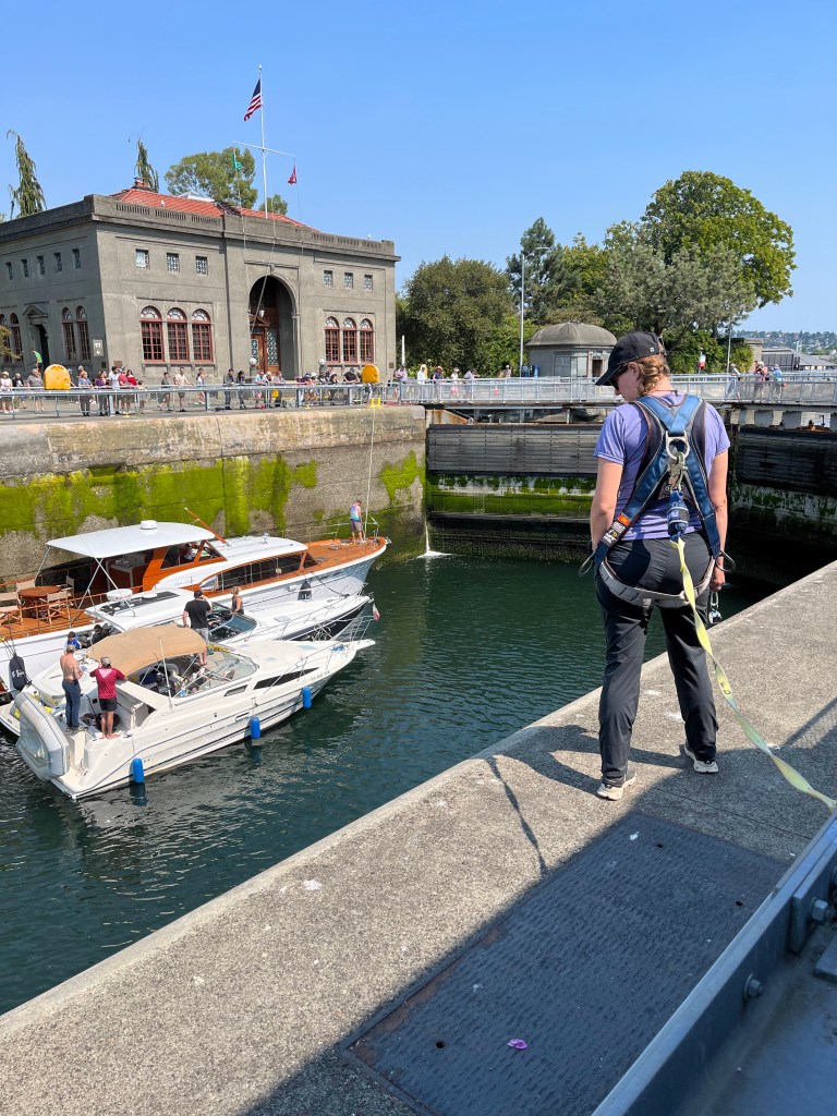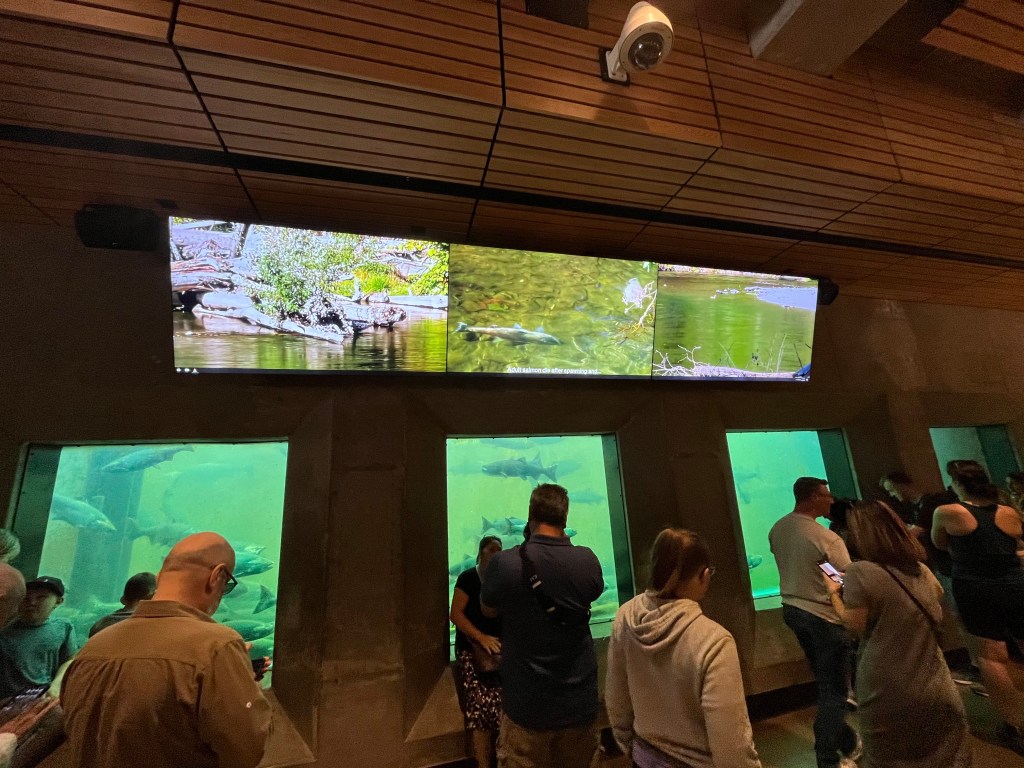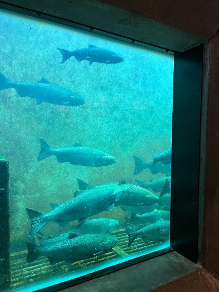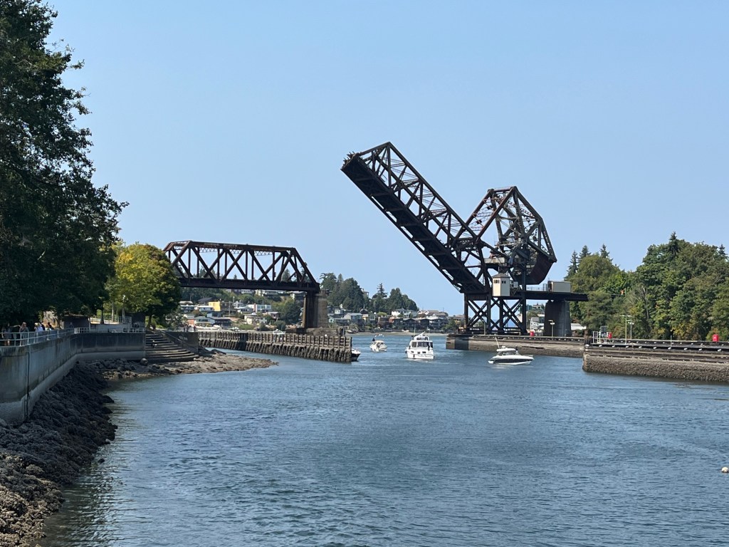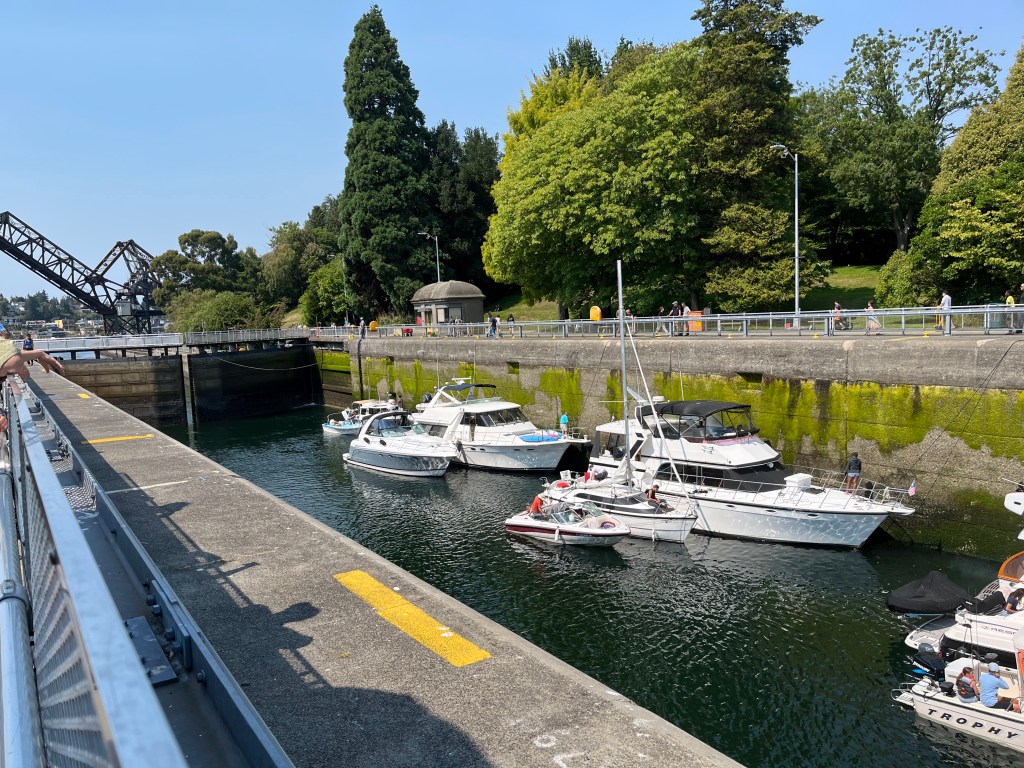 אני אוהבת לפעמים למצוא מקומות שקצת פחות במסלול הרגיל והמתוייר, ולכן לקחנו אוטובוס לנקודה שבה המים המלוחים מהאוקיינוס פוגשים את המים המתוקים מהאגמים, ובה שתי נקודות עניין: מעבר הספינות Ballard Locks, וסולם דגי הסלמון Fish Ladder. מעבר הספינות נועד להעביר סירות בין שני מפלסי גובה של המים. סירה מגיעה מהים, נכנסת ללוק, השער נסגר מאחוריה, מים מוזרמים כדי להעלות את המפלס, וכשמפלס המים זהה לגובה מפלס האגם השער נפתח והסירה ממשיכה לדרכה. פלא הנדסי! מדרגות הדגים הן רצף מדורג של בריכות קטנות בהן יכולים דגי הסלמון לעבור בקפיצה ממדרגה למדרגה כדי לעלות את הפרש המפלסים בדרכם מהאוקיינוס לאיזורי הרבייה במים מתוקים. ממש מעניין! כשביקרנו היו המון דגים, וגם כמה כלבי ים שבאו להנות משפע המזון. יש גם מוזיאון ומרכז מבקרים, אבל לא נכנסנו.