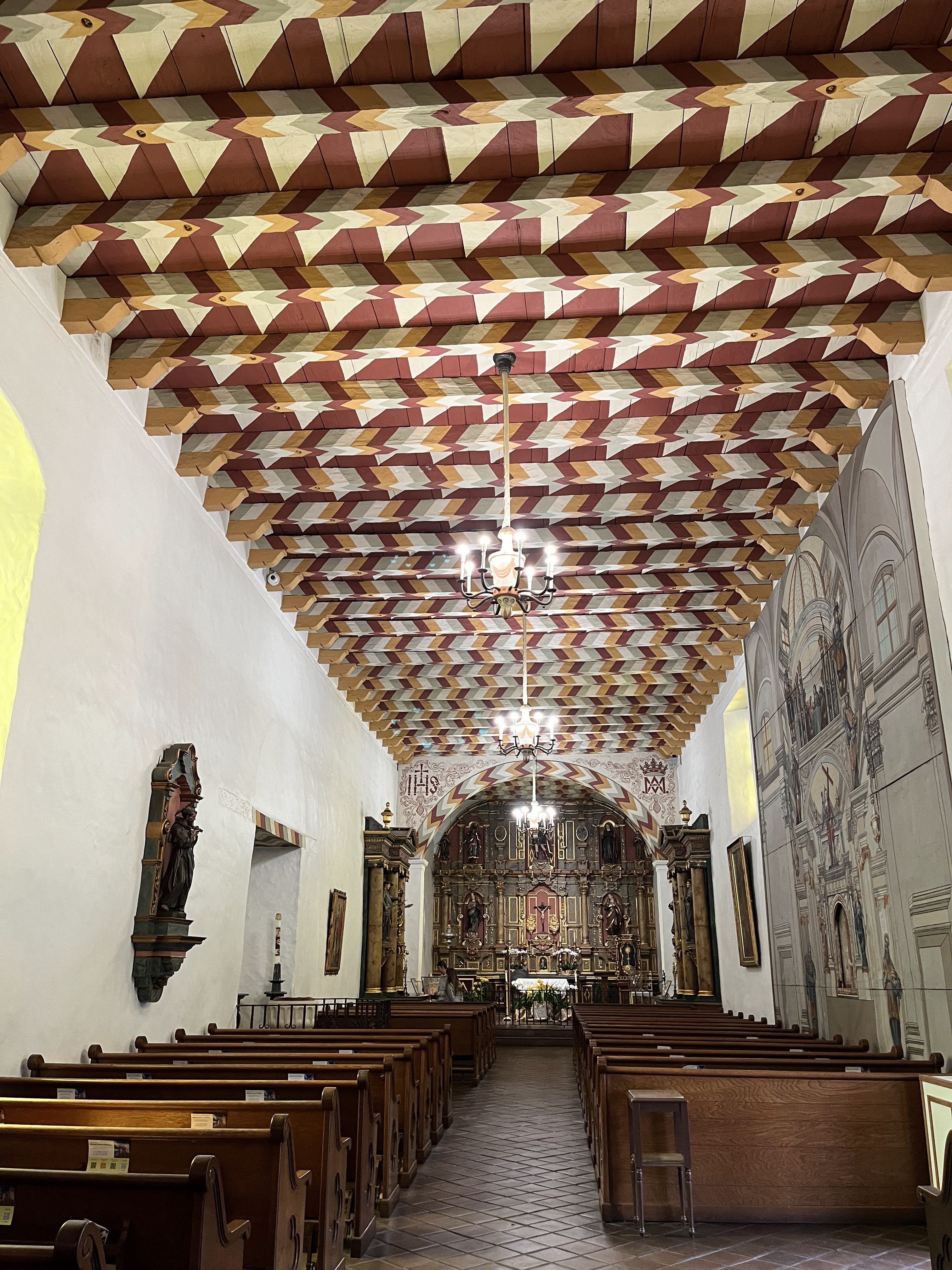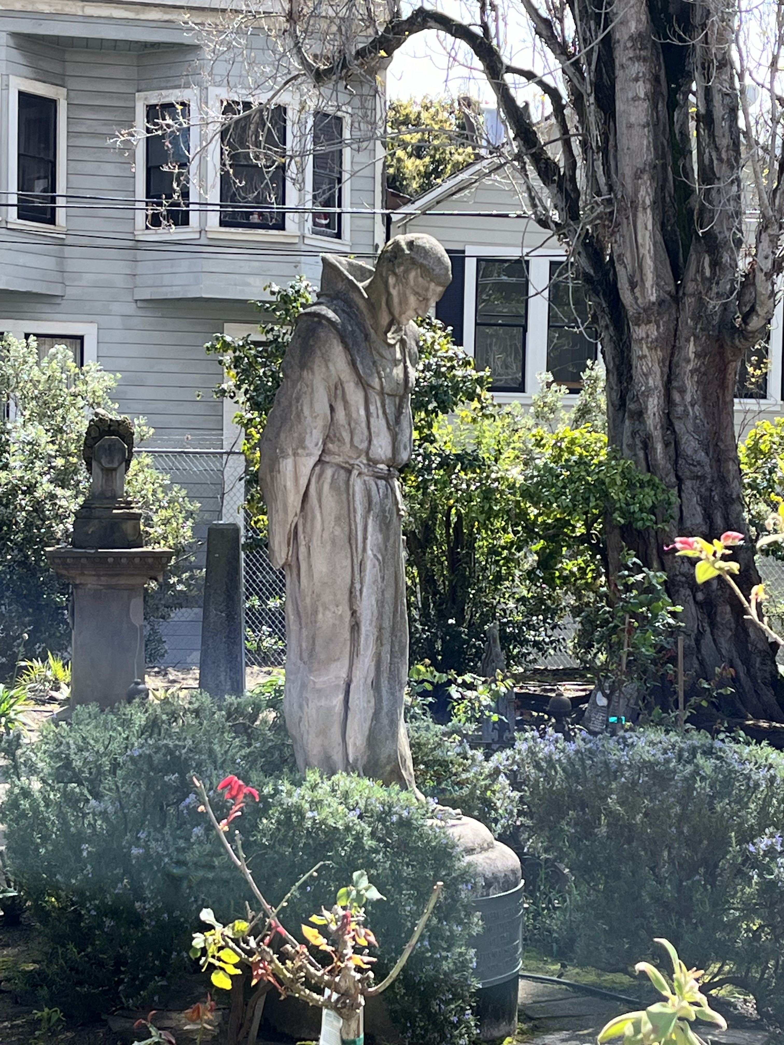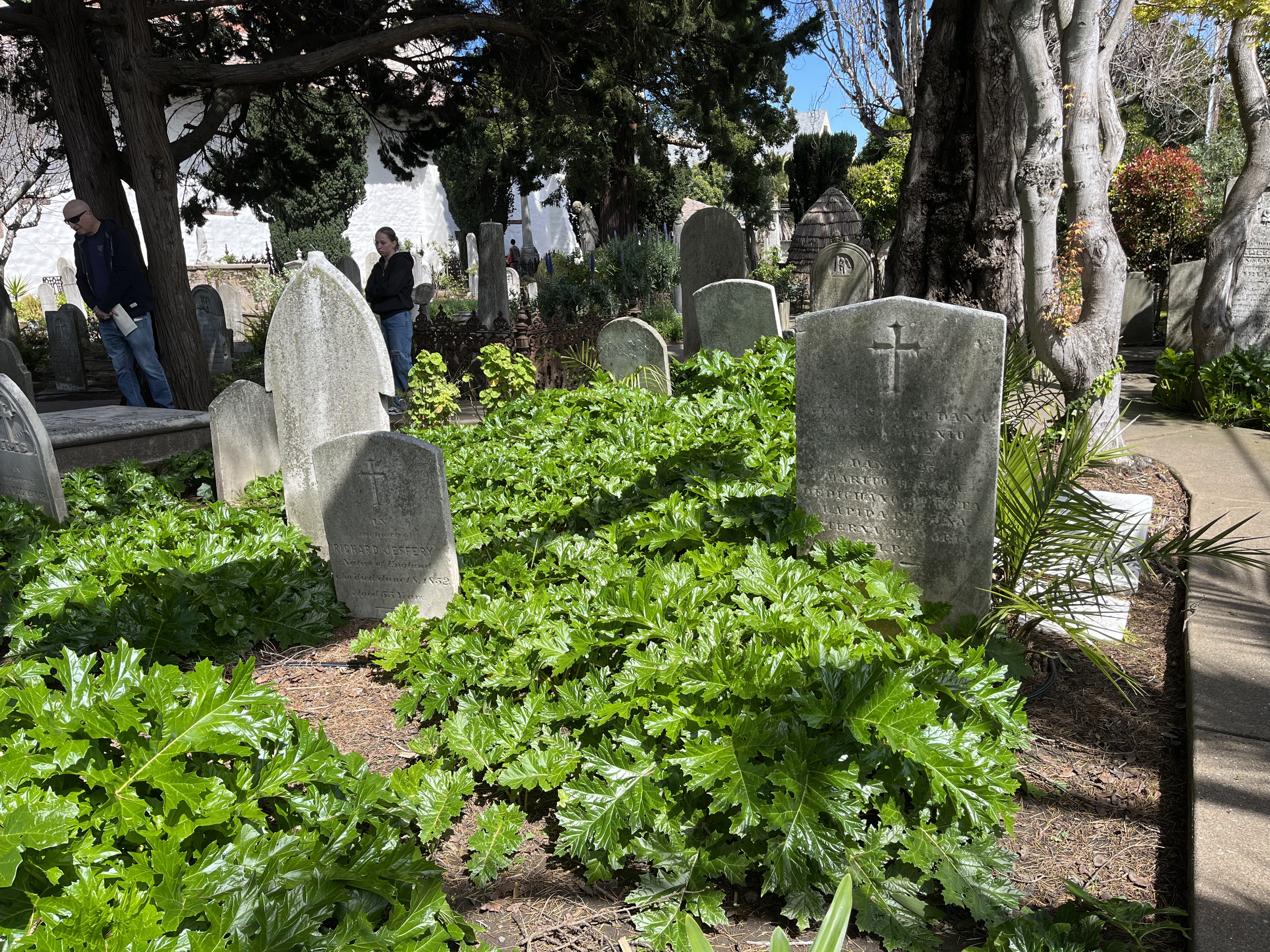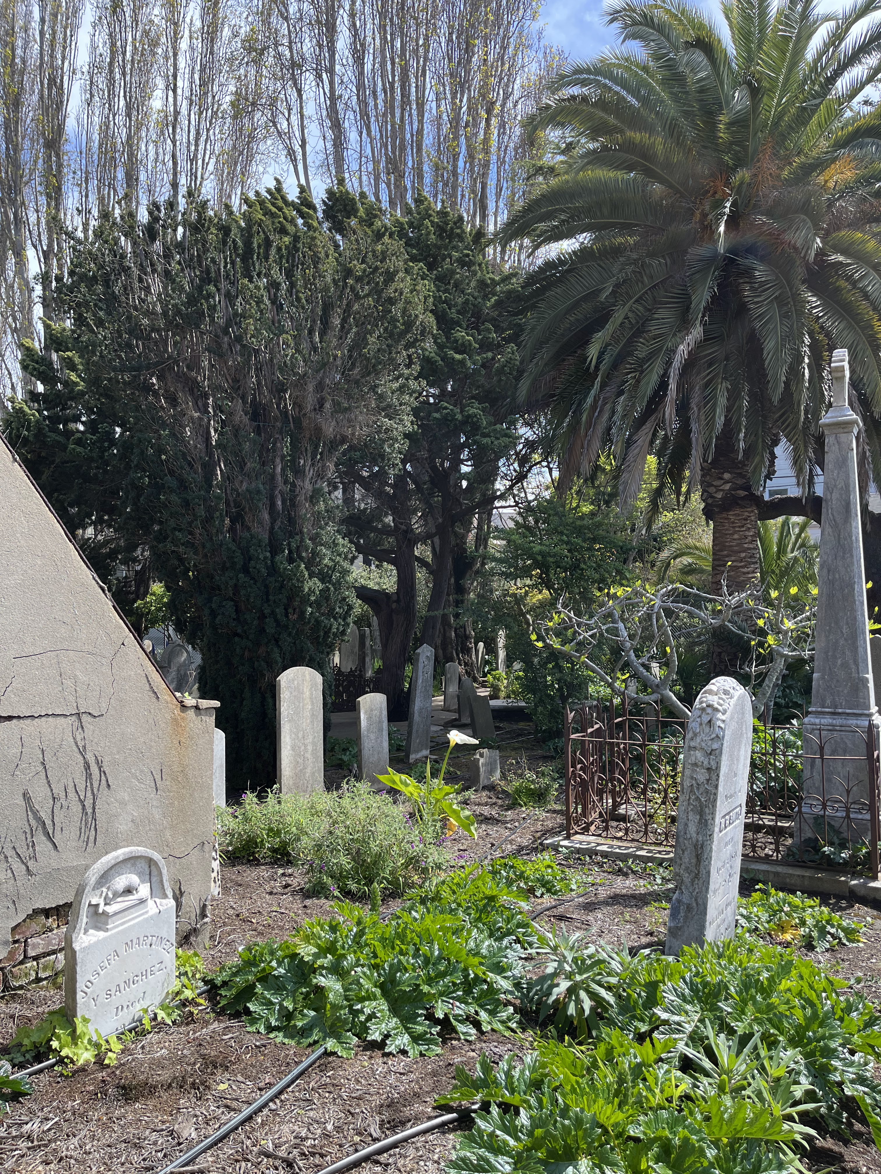 משם המשכנו למיסיון דולורס Mission Dolores, או בשמו הרשמי – מיסיון סאן פרנסיסקו דה אסיס Mission San Francisco de Asis, שנתן לשכונה את שמה. רשת המיסיונים הוקמה על ידי נזירים ספרדים שהגיעו ממקסיקו לאורך כל החוף המערבי, לאורך נתיב שנקרא אל קמינו ריאל – דרך המלך. כל מיסיון מוקדש לקדוש (או קדושה) והרשת הזו היוותה את הבסיס לפיתוח של קליפורניה. ביקרנו כבר במיסיון בכרמל, בסנטה ברברה ובסנטה אינז (סולבנג), וכל אחד מהם שונה ומעניין כשלעצמו. מישן דולורס הוא הבניין העתיק ביותר שנשאר עומד בסאן פרנסיסקו, ושרד שריפות ורעידות אדמה. החלק שנשאר מהמיסיון קטן יחסית והביקור בו לא ארוך. יש בו קפלה, כנסייה, מוזיאון שעושה גם כבוד לתושבים האינדיאנים שבנו את המיסיון והומרו לנצרות (לא תמיד מרצון) ובית קברות קטן. בכנסייה הגדולה יש חלונות ויטראז׳ יפים, שמתארים את כל המיסיונים של קליפורניה. וגם פסל משונה של קדוש עם מטאטא שעוד לא ירדתי לפשרו! בימי ראשון וחגים מתקיימות תפילות, אז פחות מתאים לביקור.