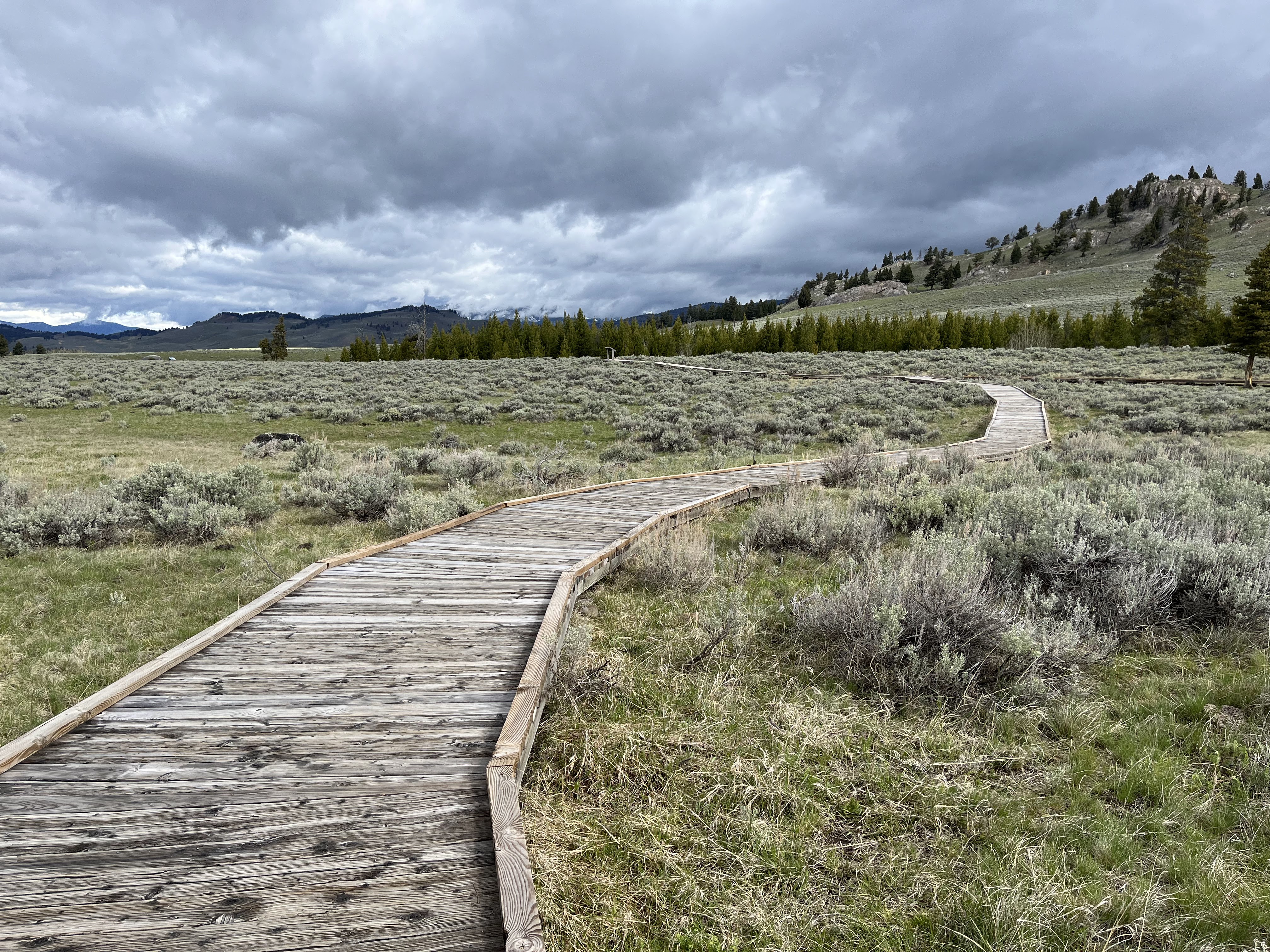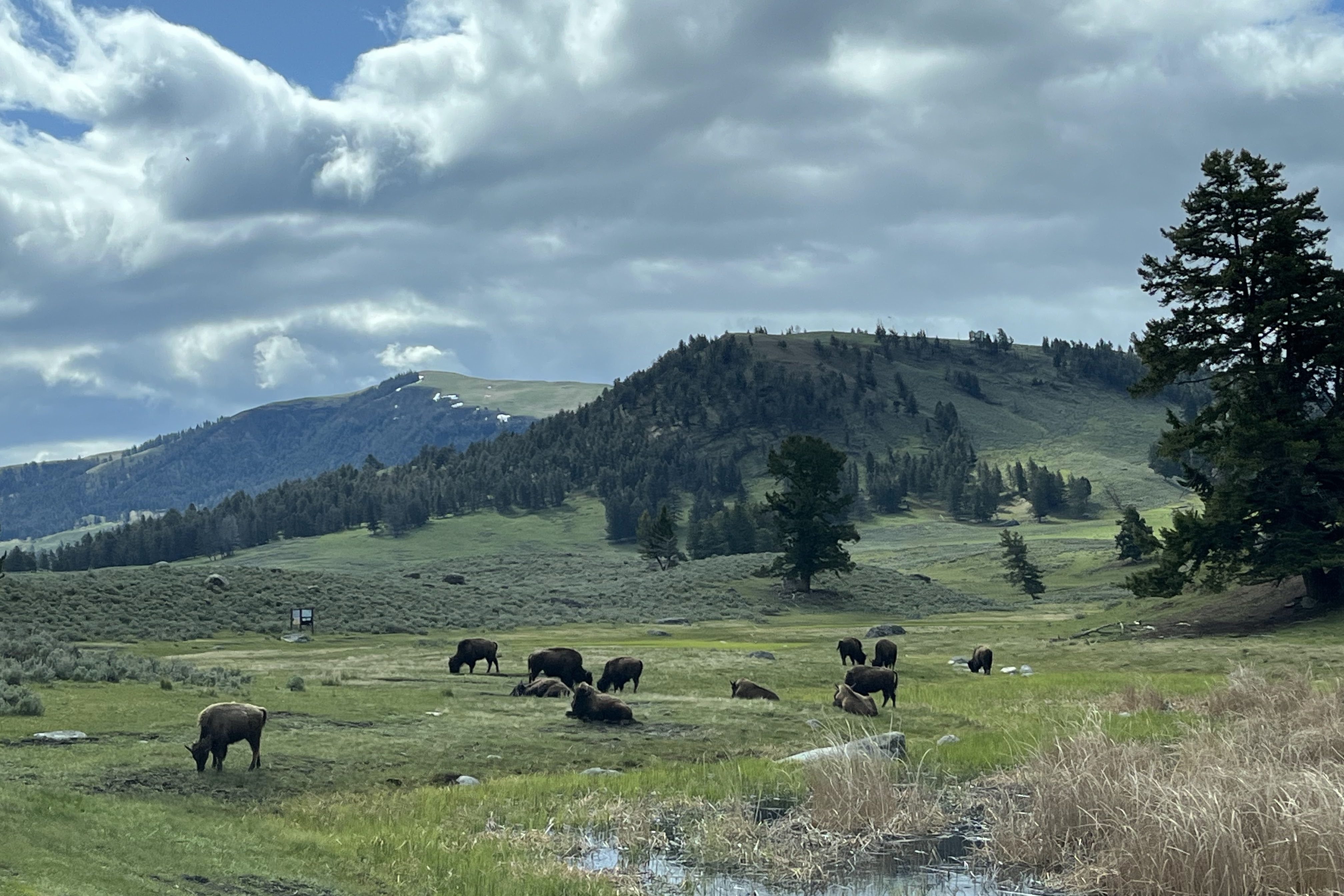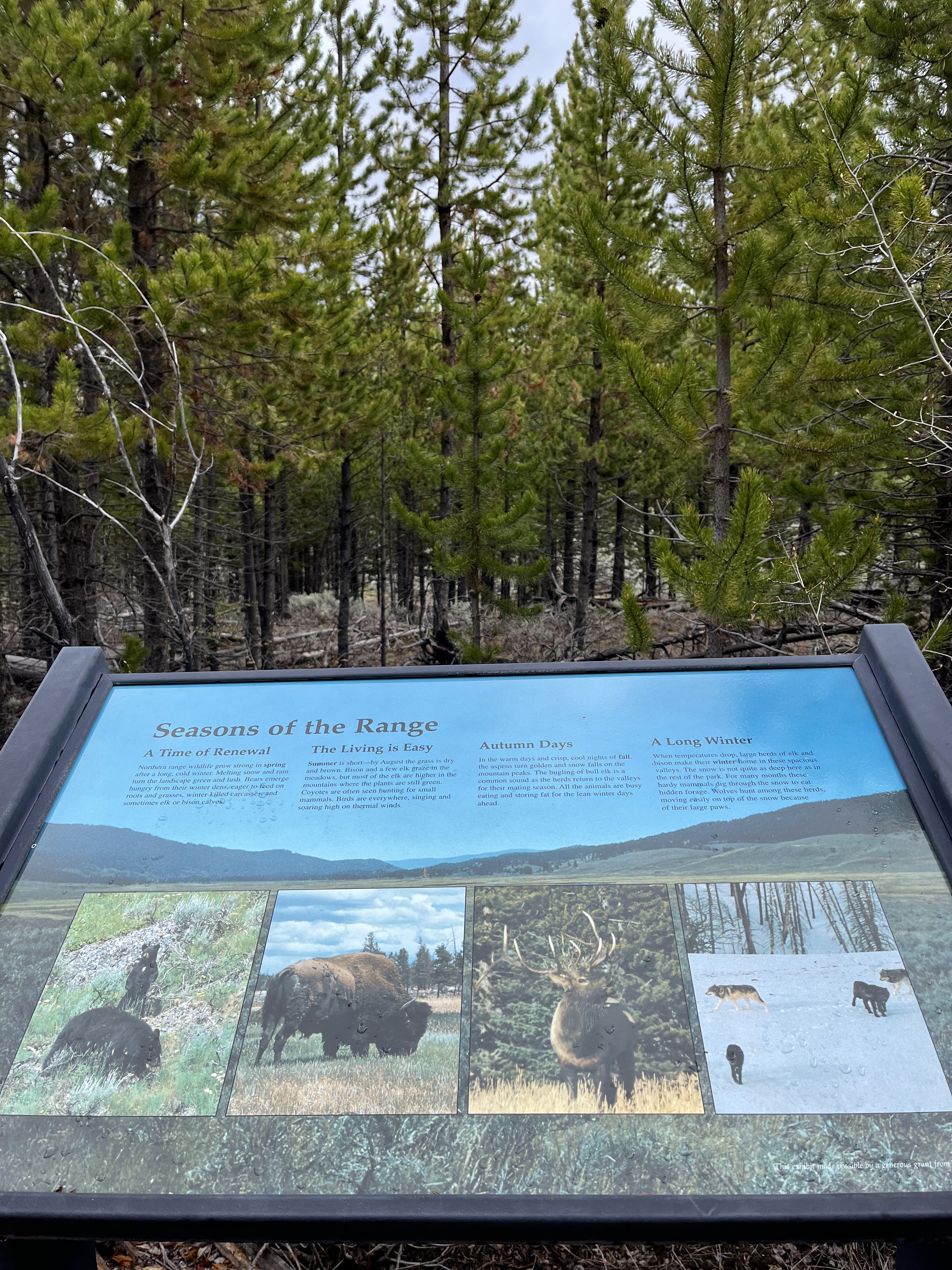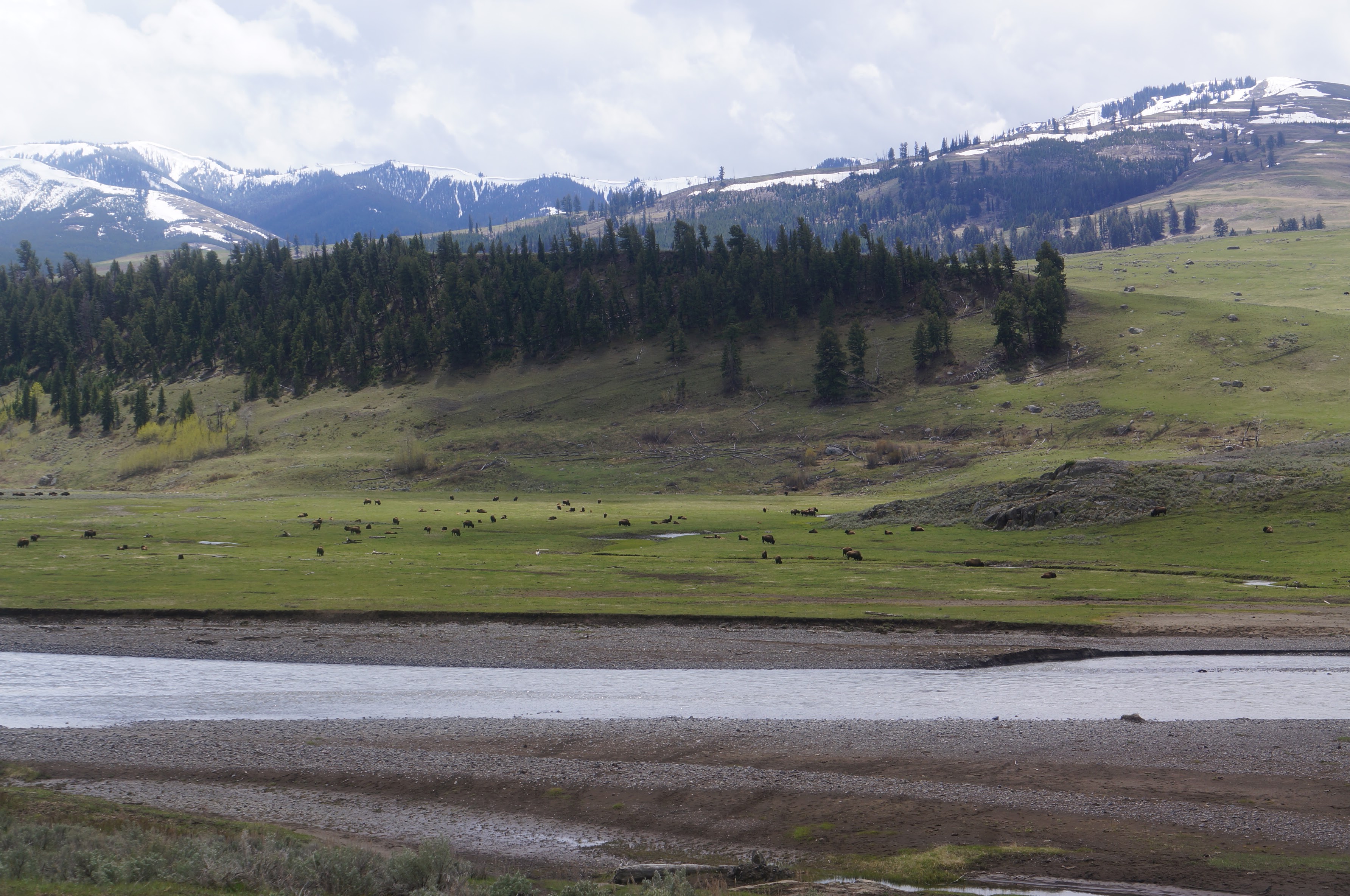 נסענו מזרחה לכיוון עמק למאר Lamar Valley לנוף של מרחבים ירוקים ועדרי בופאלו. עצרנו במפלים Undine Falls לתמונה זריזה, ובמסלול ההליכה באחו בשם Forces of the Northern Range Trailhead שבו יש טיילת עם הסברים ממש מעניינים על הטבע של הפארק, הצמחים ובעלי החיים.