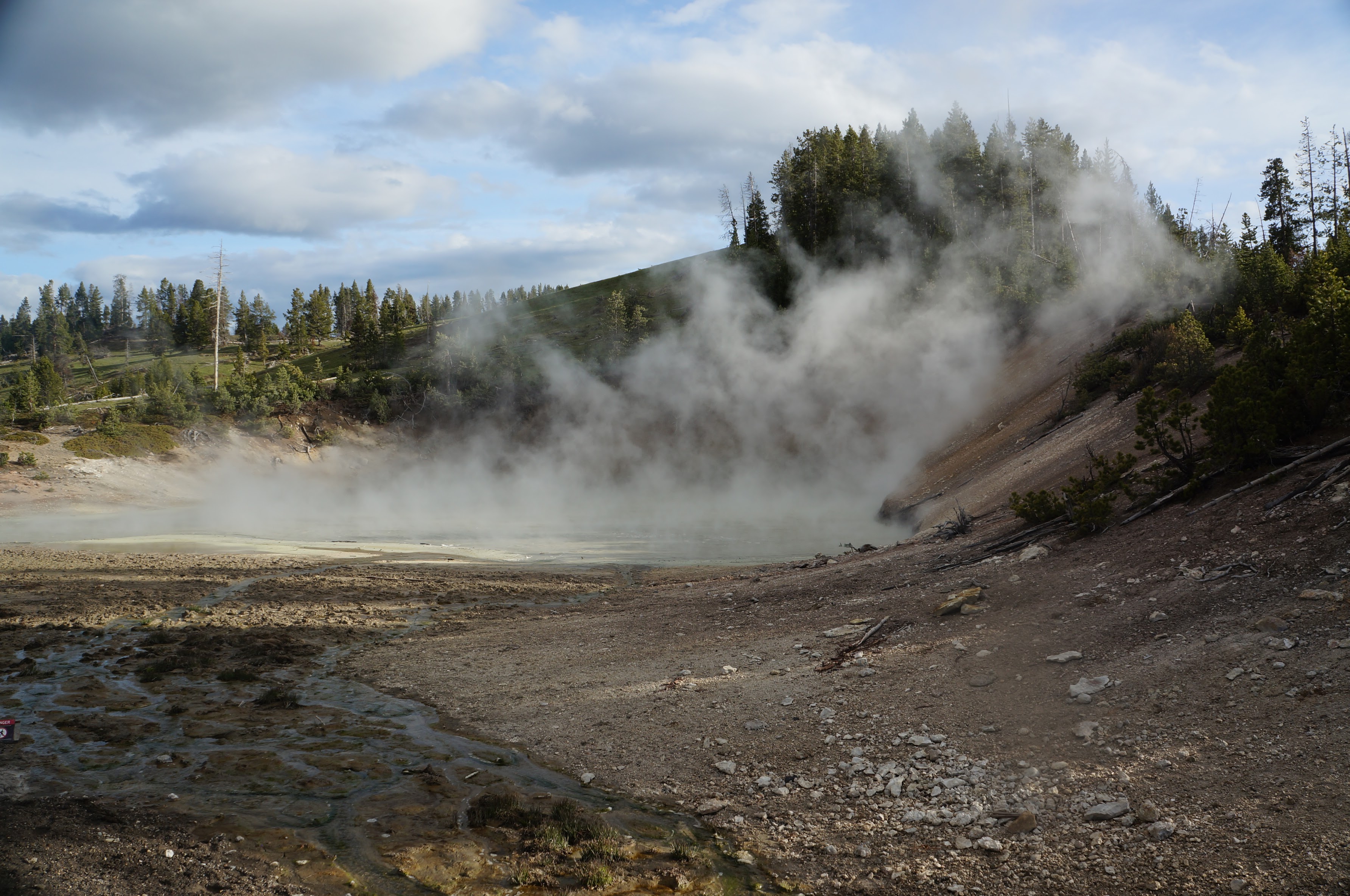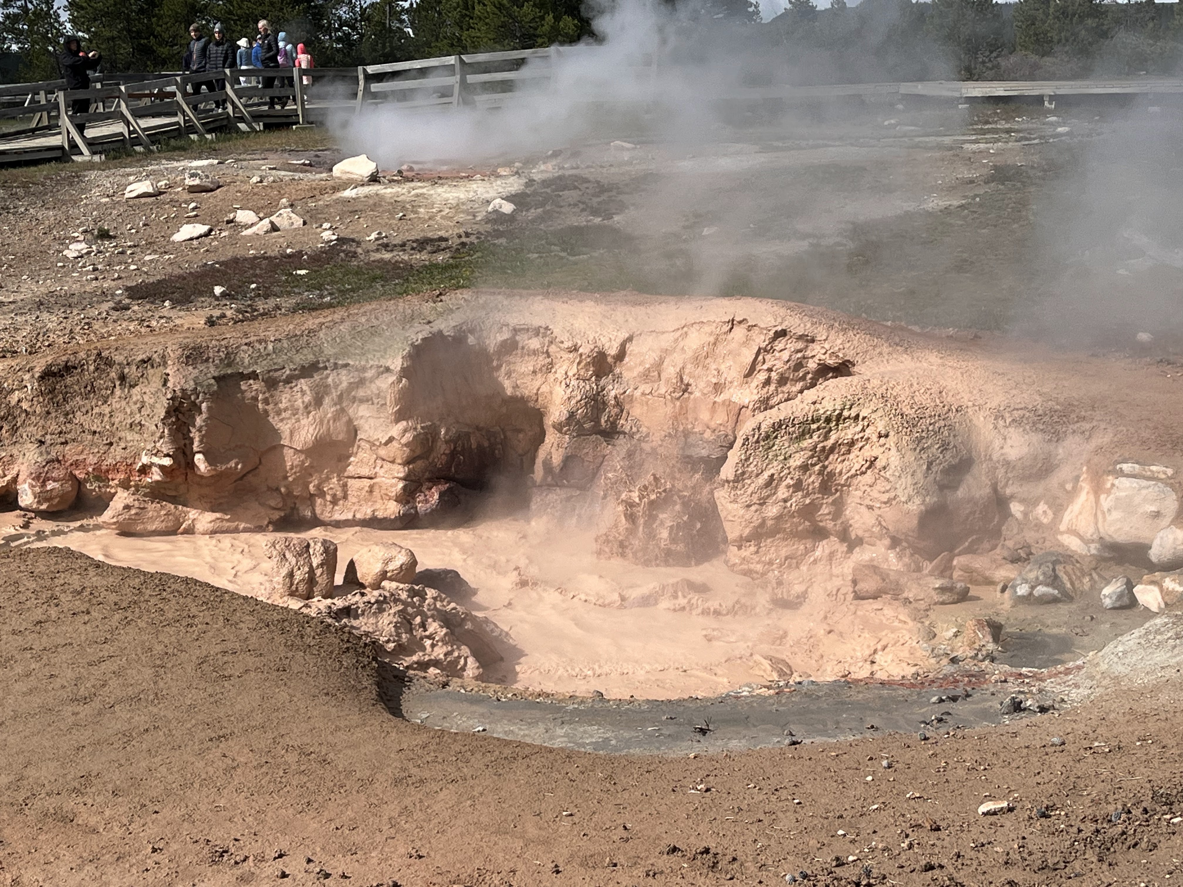 עצרנו ב- Mud Volcano לראות את בריכת הבוץ המבעבעת, ואת בריכת המים הרותחים המבעבעת לא פחות עם השם הדרמטי Dragon's Mouth Spring. מסלול קצר אבל ממש נחמד.