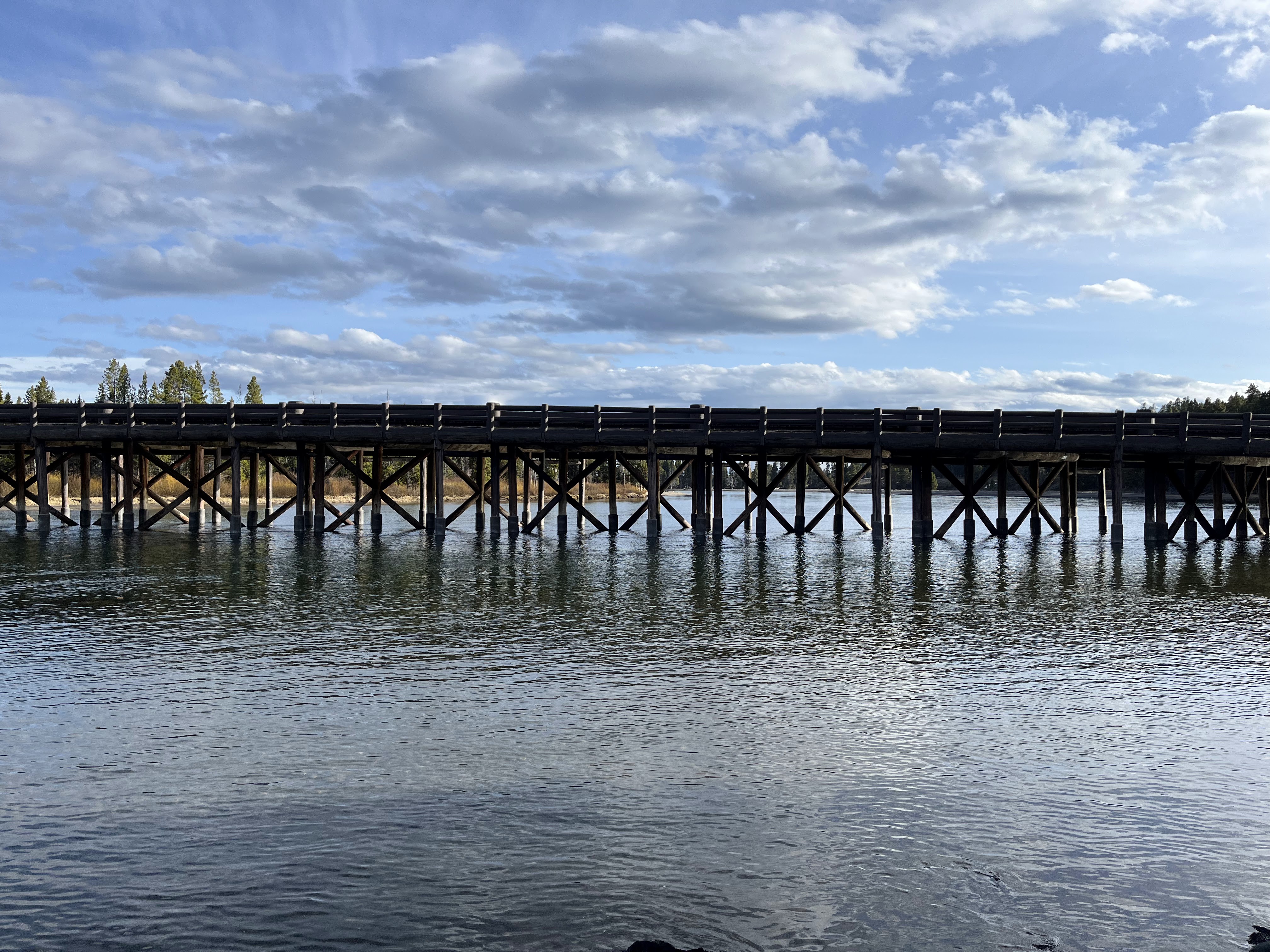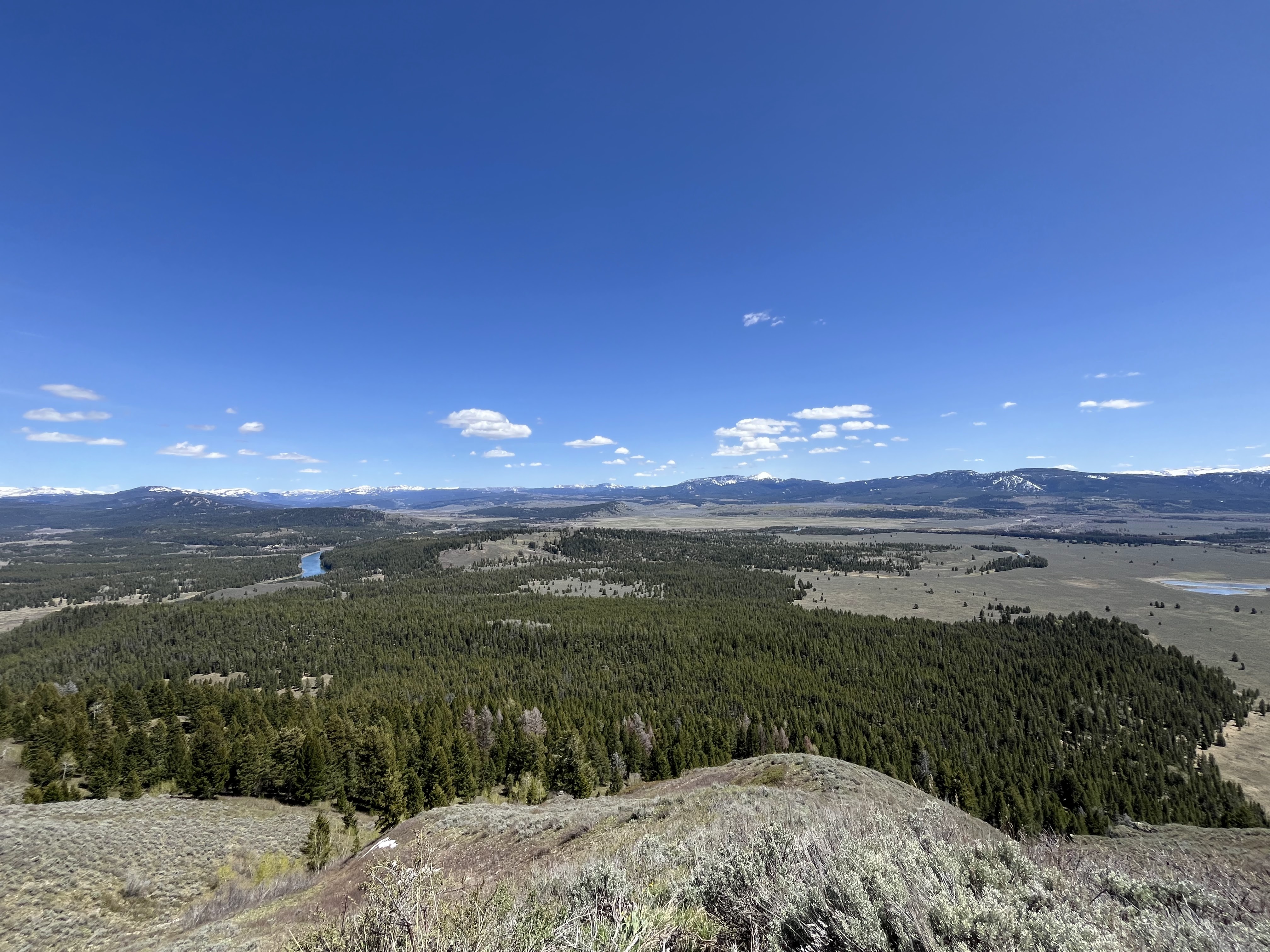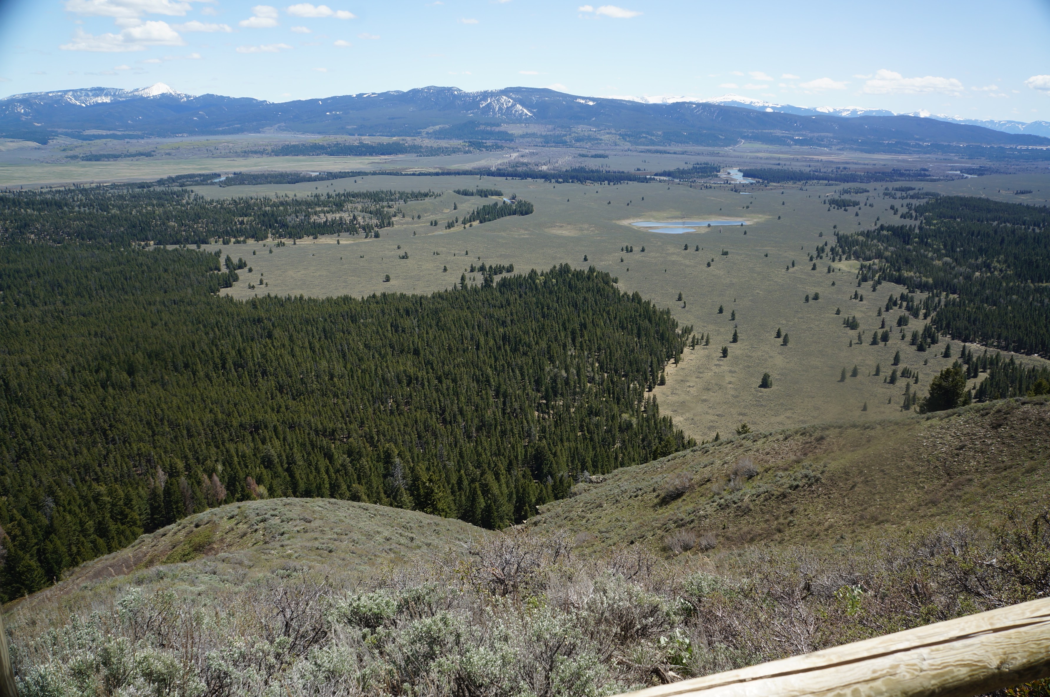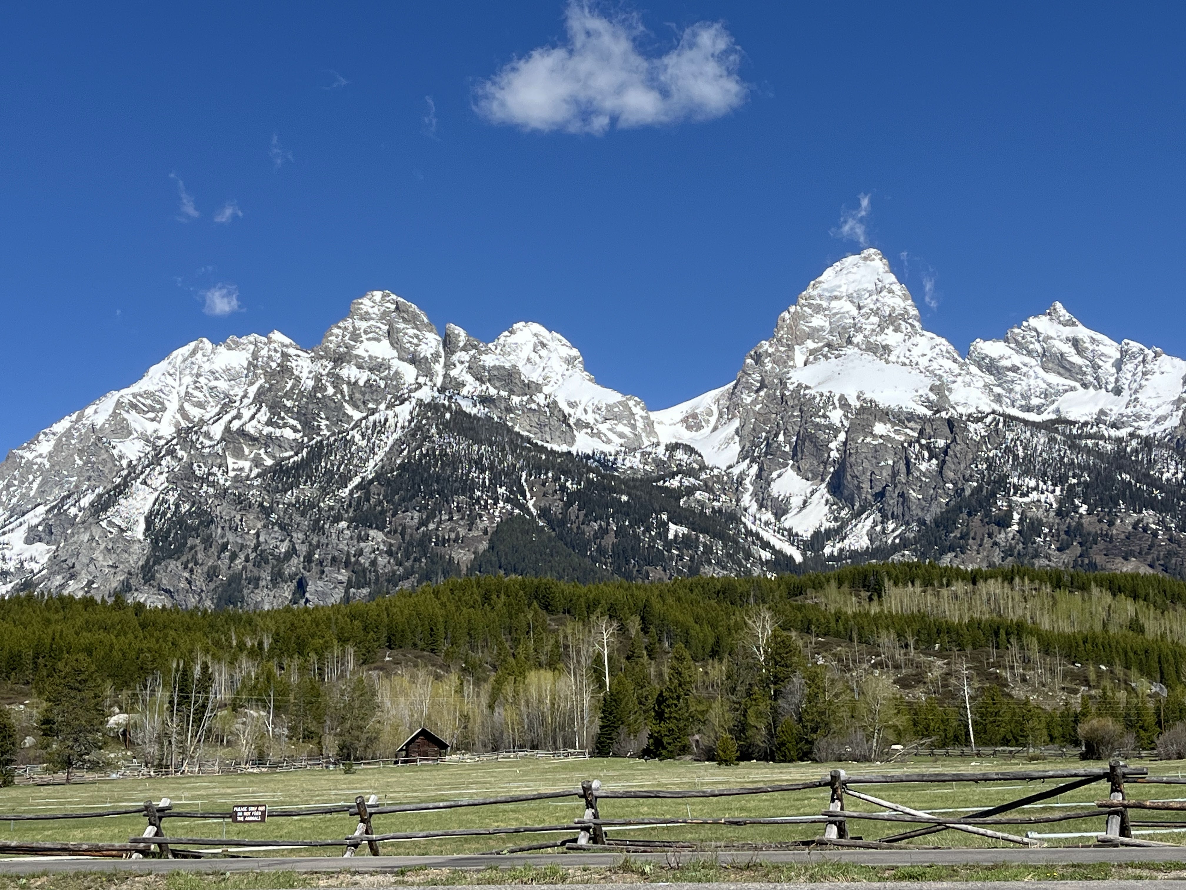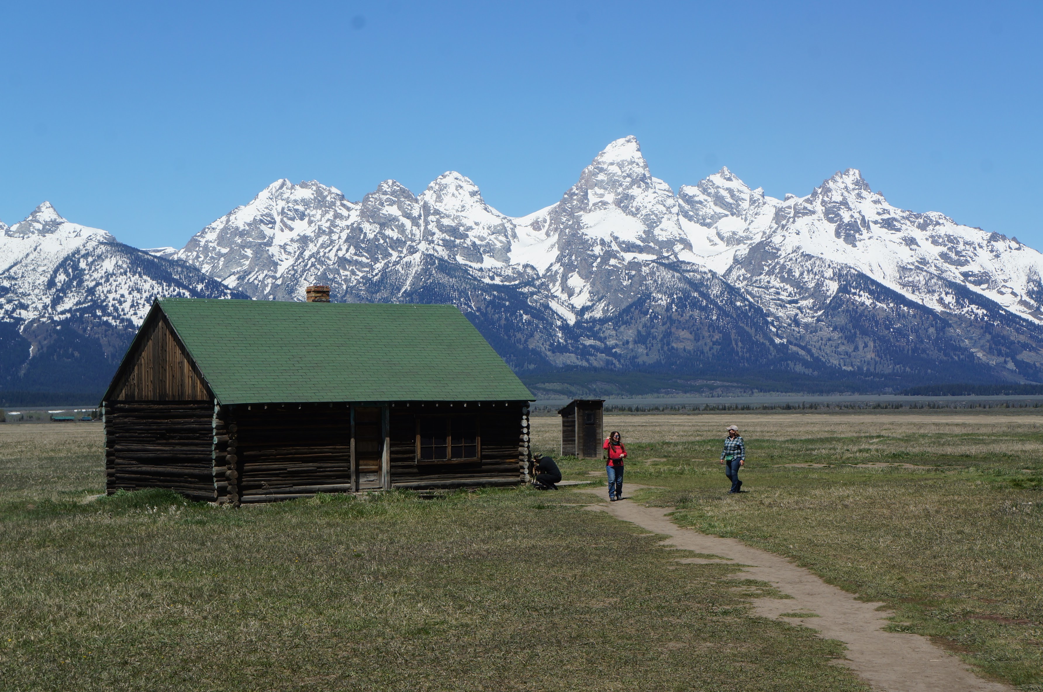 היו לנו עוד שתי השלמות קטנות בגרנד טיטון. הראשונה – שורת הבתים ההיסטוריים Mormon Row שנבנו על ידי מתיישבים מורמונים בסוף המאה ה-19. נשארו מספר קטן של מבנים עומדים, ואין אופציה להכנס פנימה לראות איך חיו בתקופה הזו, אבל הבתים על רקע ההרים המושלגים פוטוגניים מאד. השניה – נקודת תצפית על הנהר בשם Blacktail Ponds Overlook שהומלצה על ידי האפליקציה כמקום טוב לצפות בבעלי חיים, ואכן צפינו לא מאד מרחוק באייל Moose.