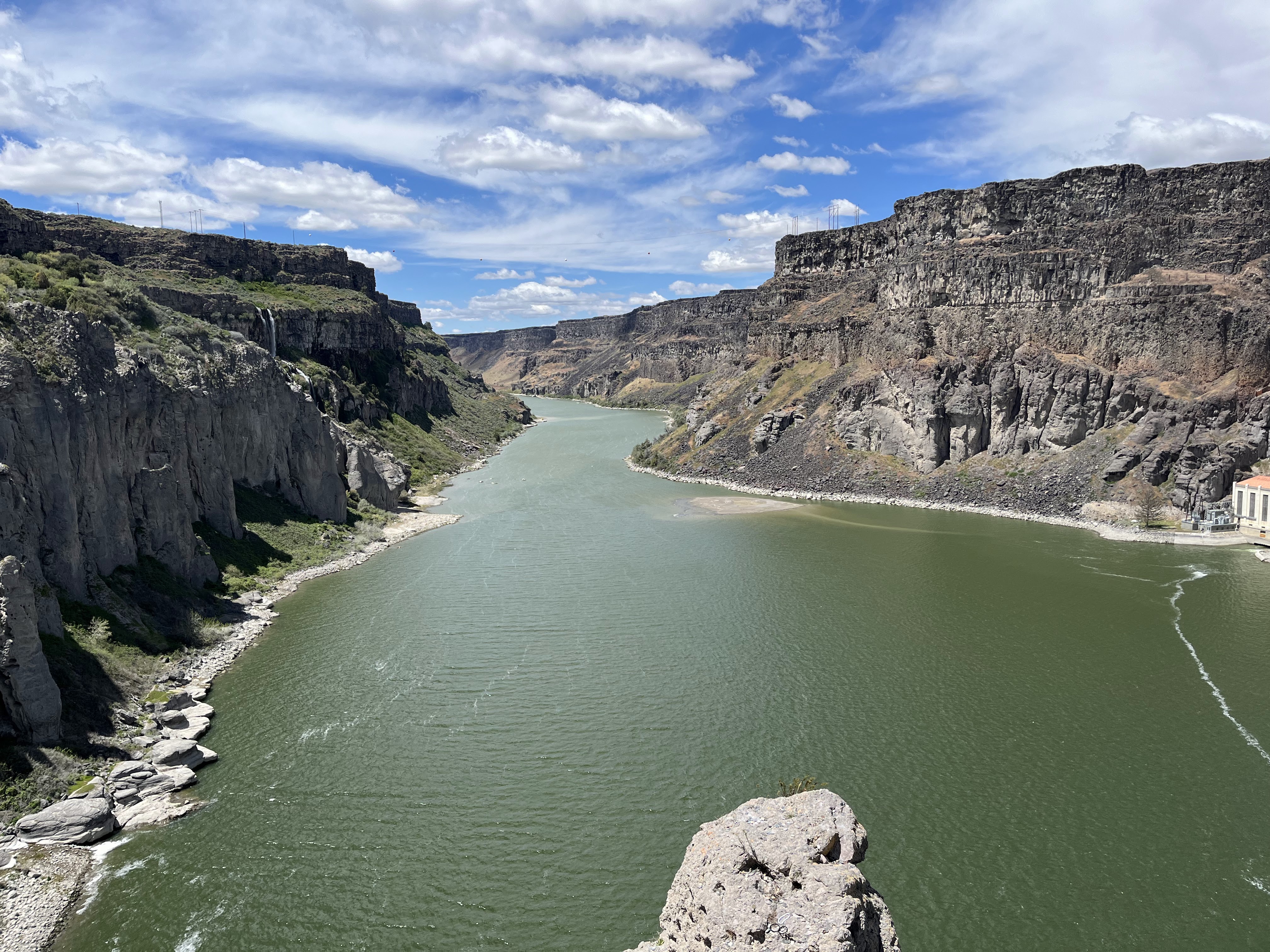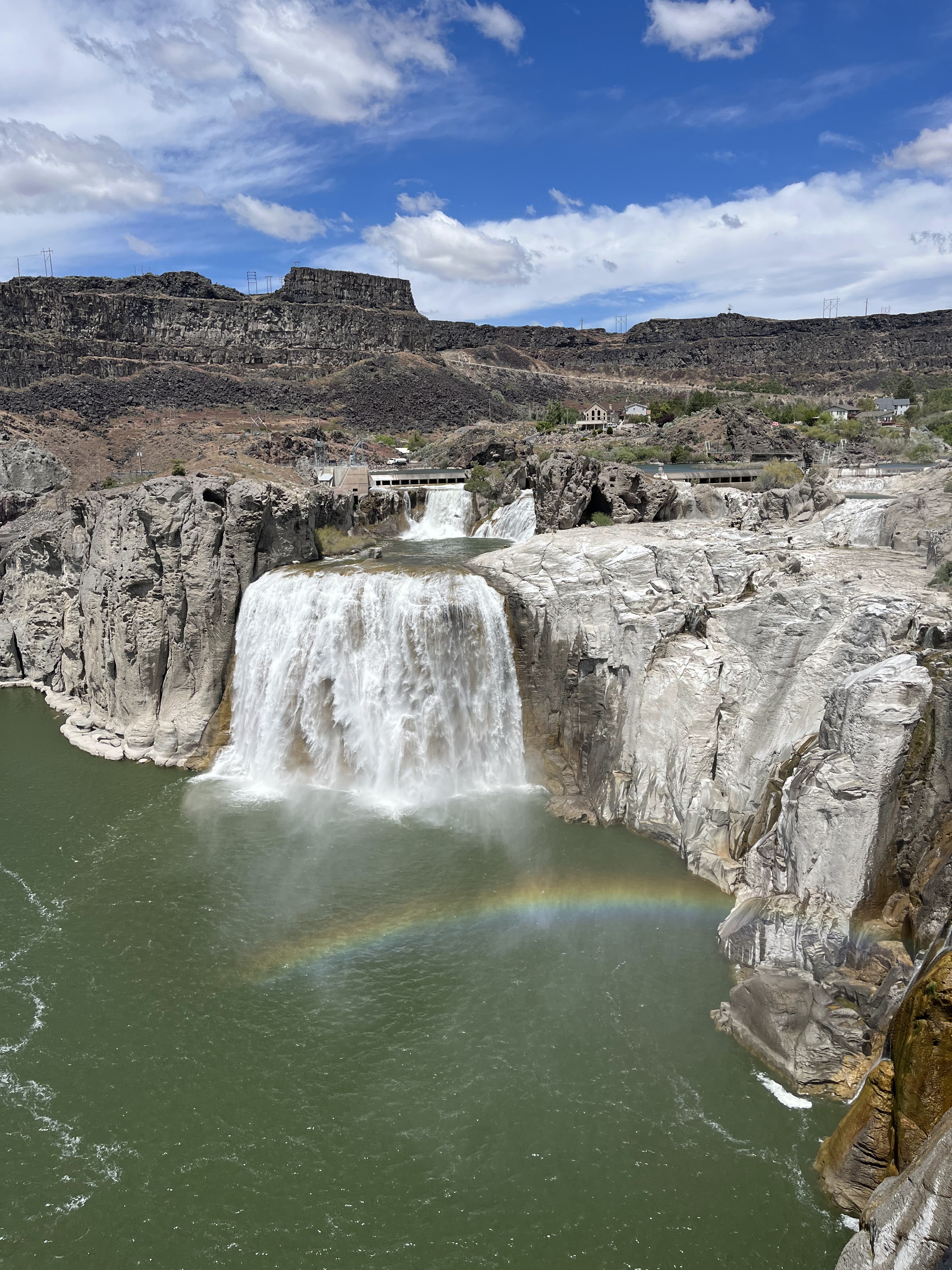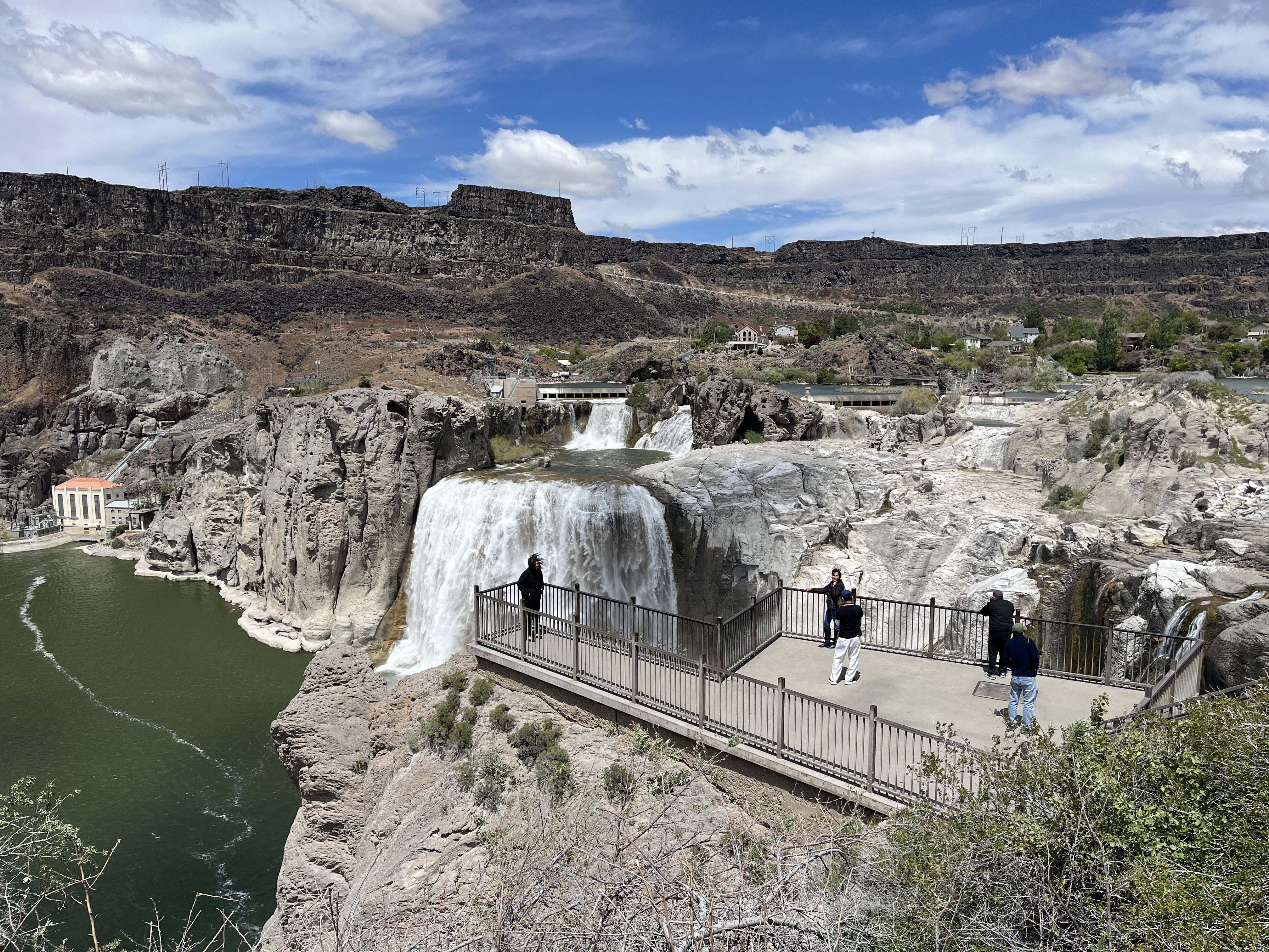 המשכנו בנסיעה של כ-3 שעות, בהן עברנו לנבדה וחזרנו שעה לאחור בזמן, נסענו צפונה, חצינו לאיידהו והתקדמנו שעה בזמן. הגענו לעיירה טווין פולז Twin Falls לעוד עצירה קצרה במפלי שושני Shoshone Falls. הפארק עם המפלים נמצא ממש בקצה העיירה וממש הפתיע. משלמים $5 בכניסה (שילמנו במזומן) ויורדים לכיוון חניה מסודרת. בדרך יש מזלג שבו אפשר לפנות ימינה לכיוון האגם Dierkes Lake שבקיץ אפשר לשחות בו, ושמאלה למפלים. מראה המפלים מרשים! הופתענו לטובה. יש גם מסלולי הליכה ושולחנות פיקניק אבל עבורנו זו היתה רק עצירה קלה ולא רצינו להתעכב.