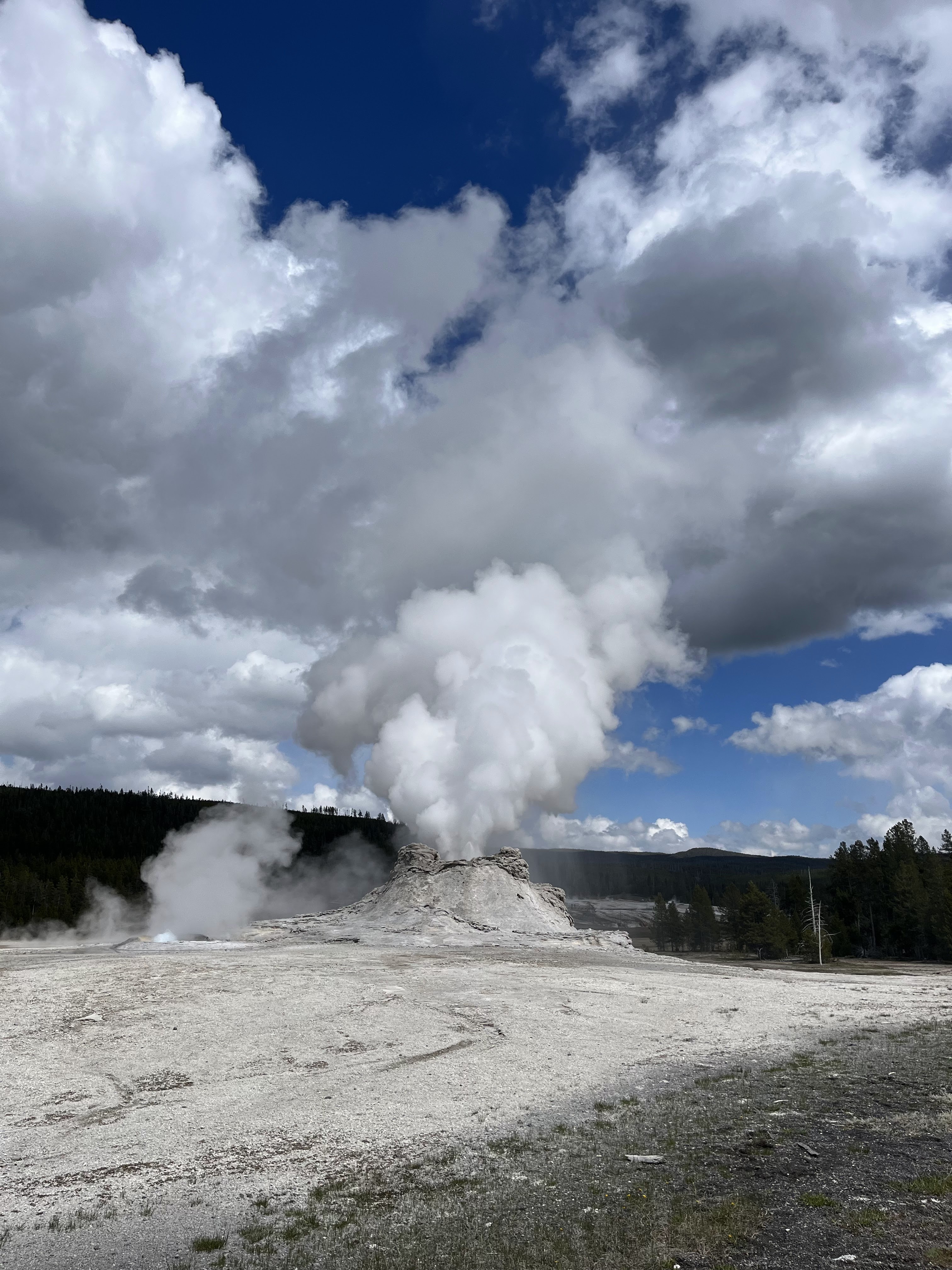 מאולד פיית'פול יצאנו למסלול הליכה נגד כיוון השעון שמקיף את אגן הגייזרים ועובר דרך הנופים האפוקליפטיים עד לבריכה החמה Morning Glory Pool. בדרך חזרה היו לנו שתי הפתעות נחמדות של גייזרים שהתפרצו בדיוק בזמן שהתאים לנו. את התחזית להתפרצות של Daisy Geyser ראינו באפליקציה של NPS והלכנו לחכות לו. בניגוד לאולד פיית'פול בו יושבים רחוק עם עוד כמה מאות אנשים, פה היו קומץ אנשים, וישבנו ממש מטרים מההתפרצות. זה היה הרבה יותר מרשים. בהמשך הדרך חזרה למרכז המבקרים ודי קרוב אליו, חזינו בהתפרצות של Castle Geyser. הגייזר הזה לא נובע מבריכה שטוחה אלא מקונוס של משקעים ישנים, וההתפרצות היתה ארוכה, מלווה בהמון קיטור, ודי מטורפת. המסלול כולו לקח לנו כשעתיים.
