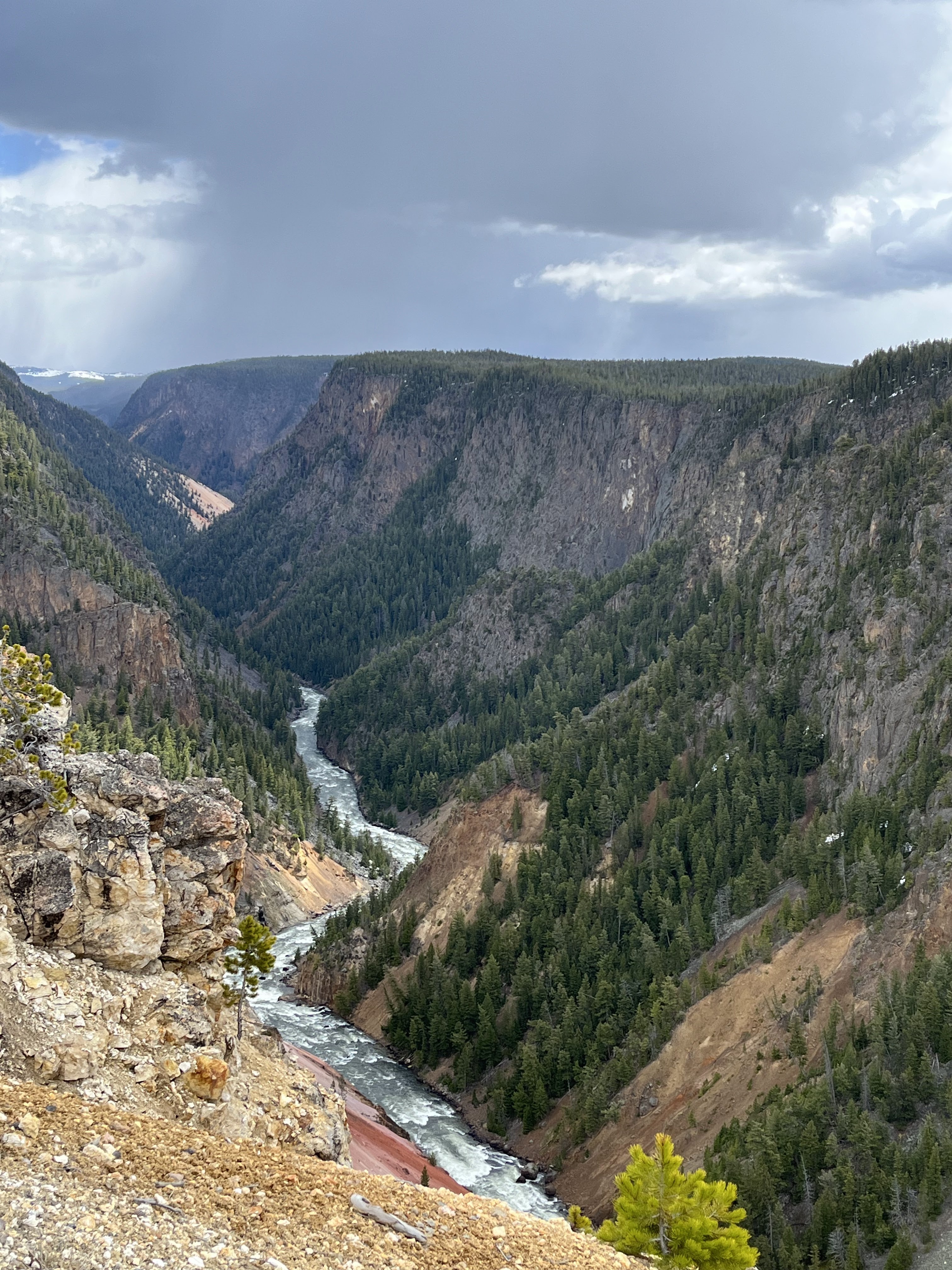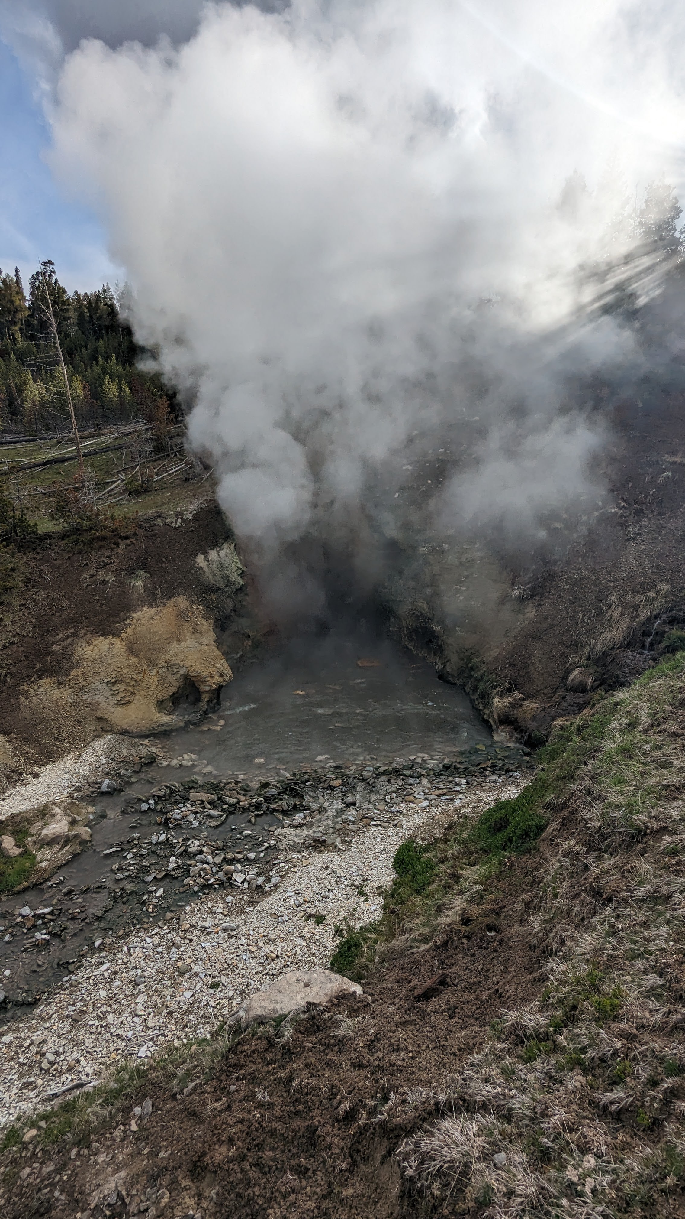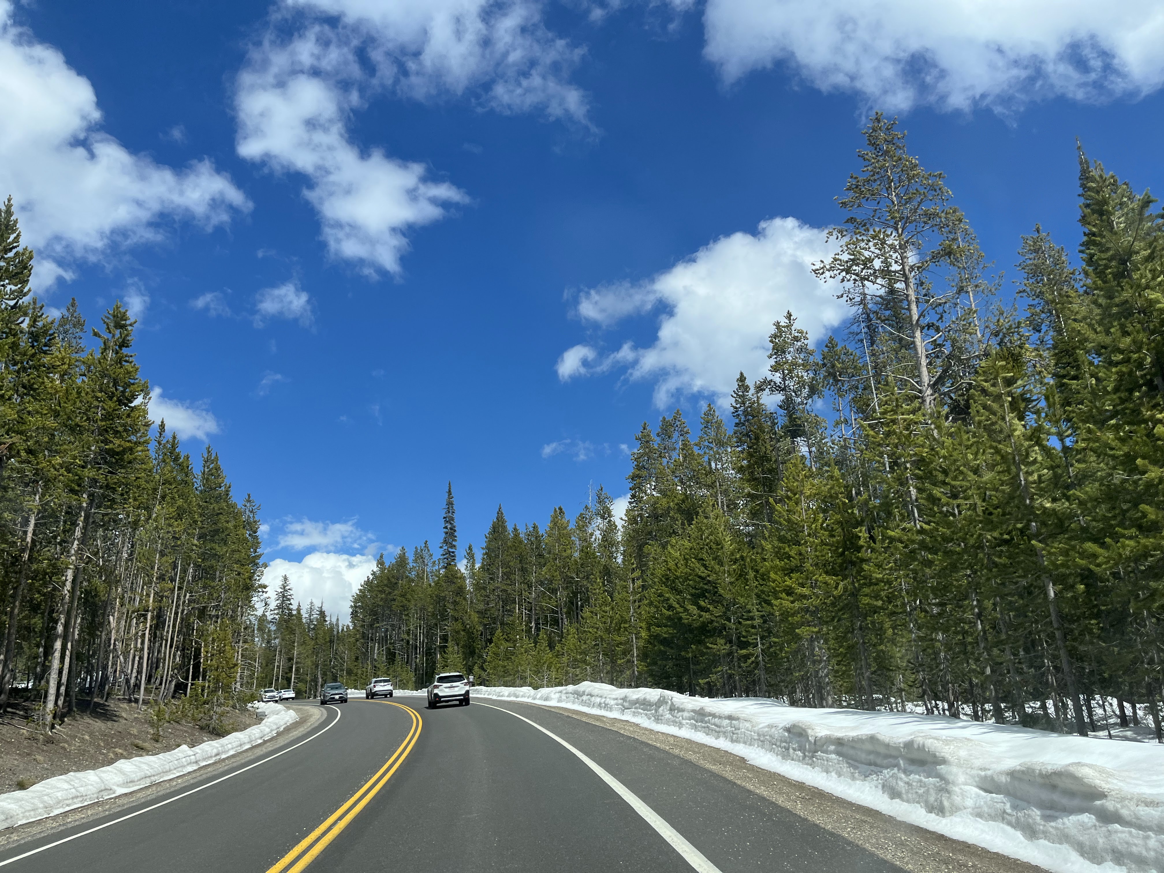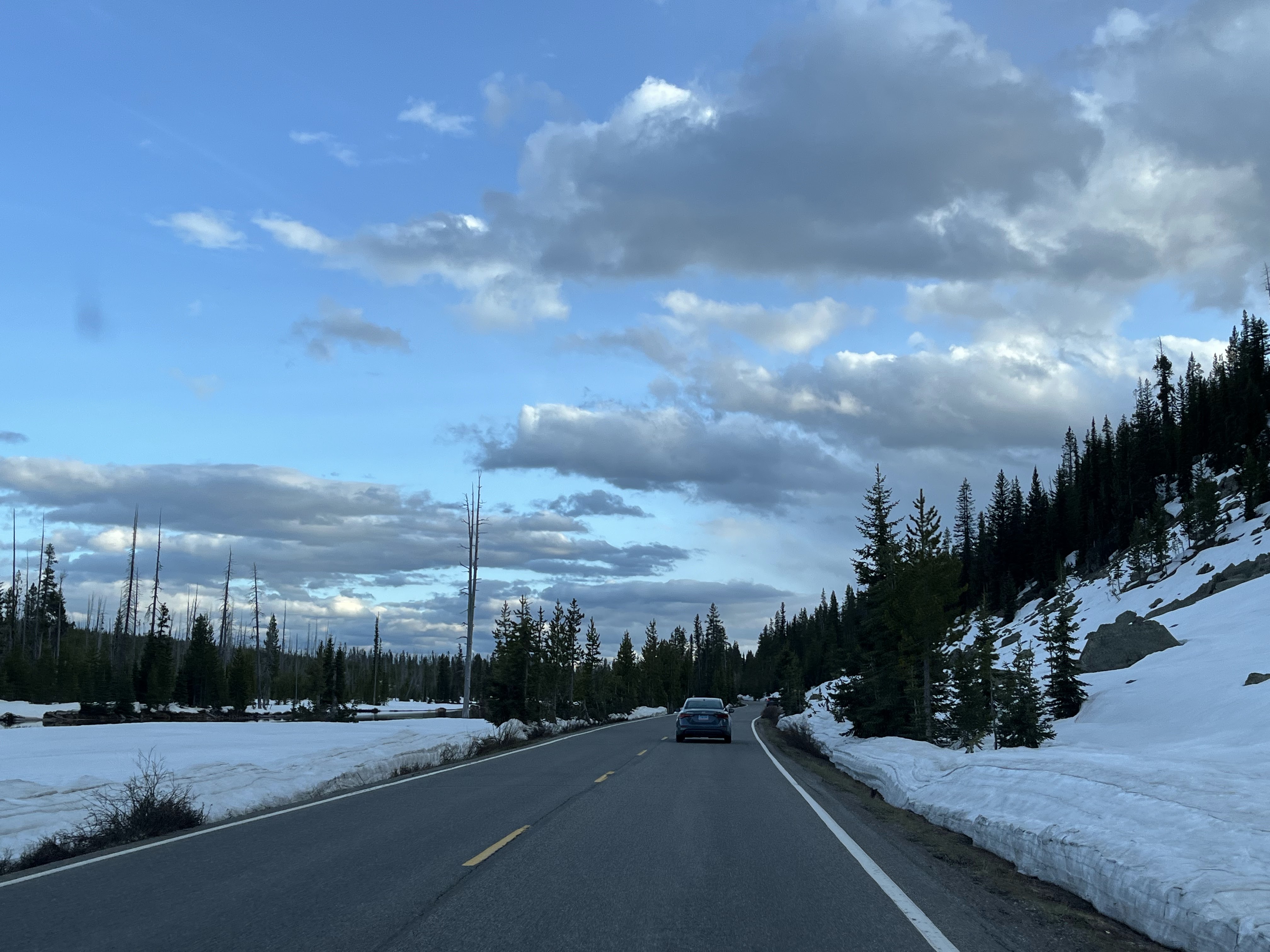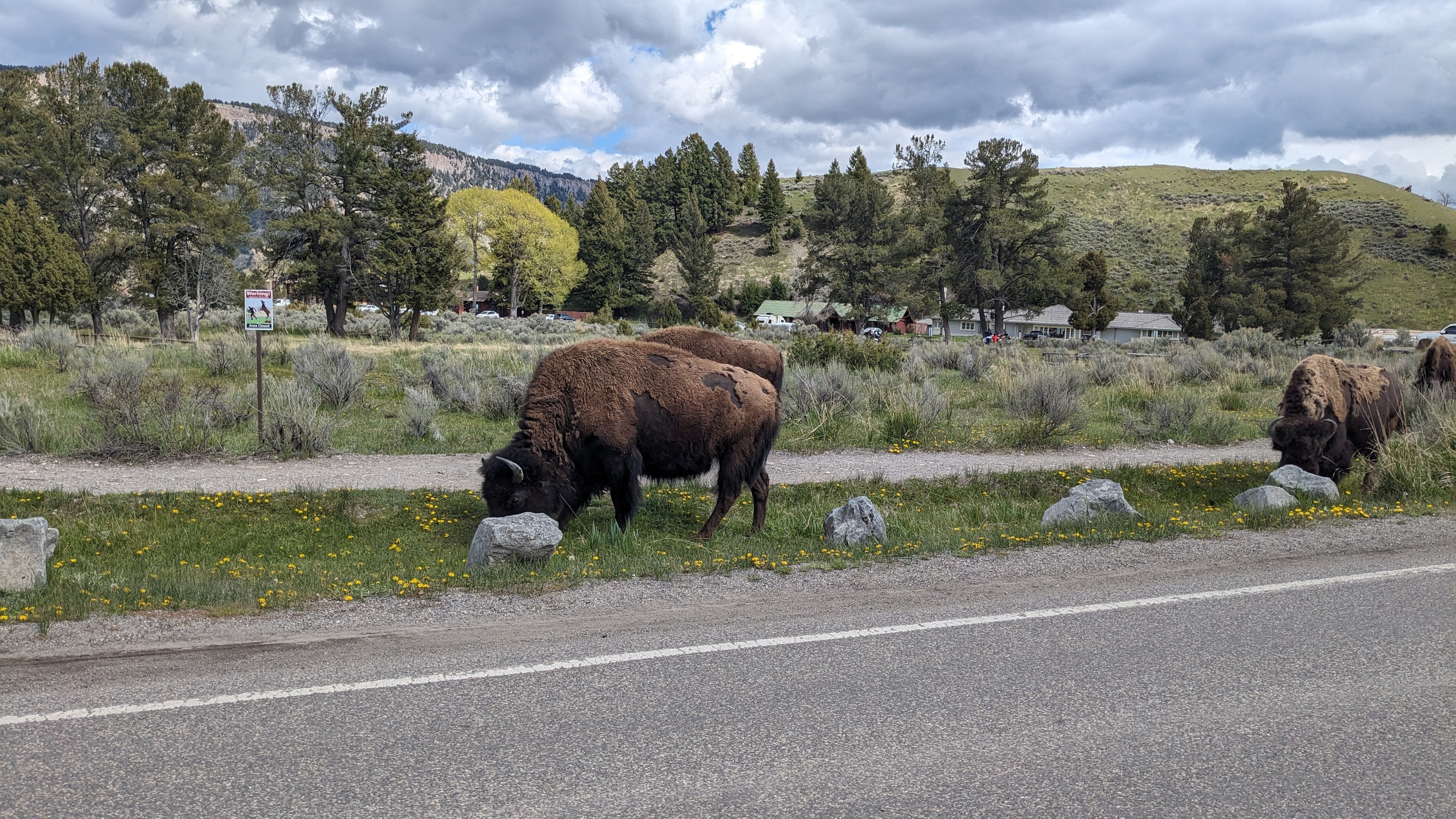 התוכנית המקורית היתה לרדת דרומה דרך כביש Dunraven Pass, אבל הקטע הזה, שהוא האחרון להיפתח כל שנה, היה סגור בגלל סופת שלגים מוקדם יותר בשבוע למרות שתיאורטית היה אמור להיות כבר פתוח. ולכן המקטע בין Tower Fall ל- Canyon Village שהיה אמור לקחת כ-40 דקות, הפך להיות מסלול שמקיף את החלק הצפוני של הפארק בשעה וחצי. אז חזרנו מערבה לכיוון ממות' והיה קצת עמוס אבל לא נורא, ואז פנינו דרומה לכיוון נוריס.