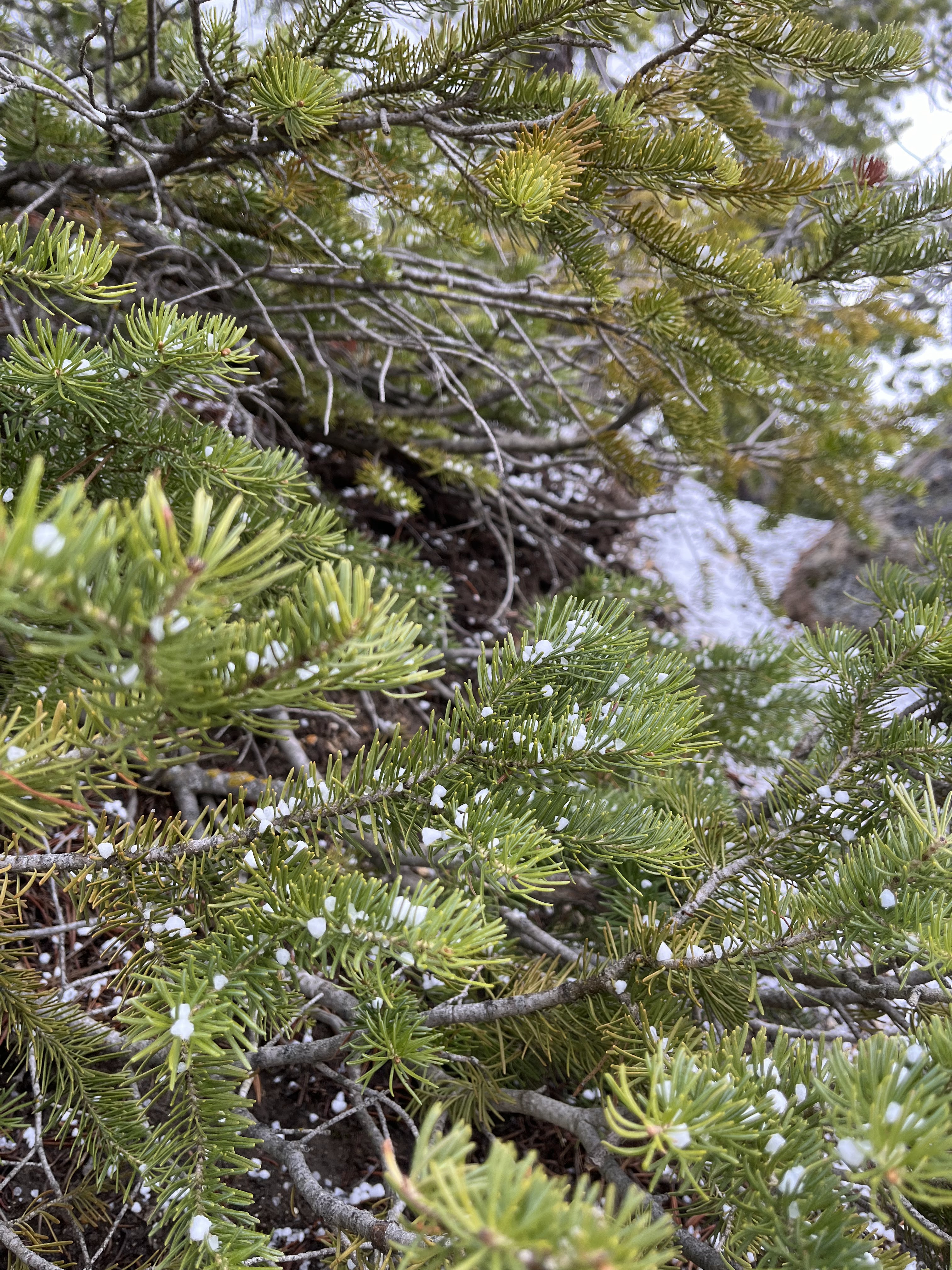 כשחזרנו לחניה היו כמה אנשים שצפו במשקפות על ההר. מסתבר שראו שם דוב. בעזרת ההכוונה שלהם (שהלכה משהו כמו – העץ המת הכי ימני, שליש למטה מהקצה, משמאל יש קרחת יער ירוקה, שם!) הצלחנו לראות אותו במשקפת אבל פחות הצלחנו לצלם. אין לי מושג איך הבחור שזיהה את הדוב עשה את זה. בלי משקפת הוא נראה כמו נקודה שחורה קטנה על צלע ההר…