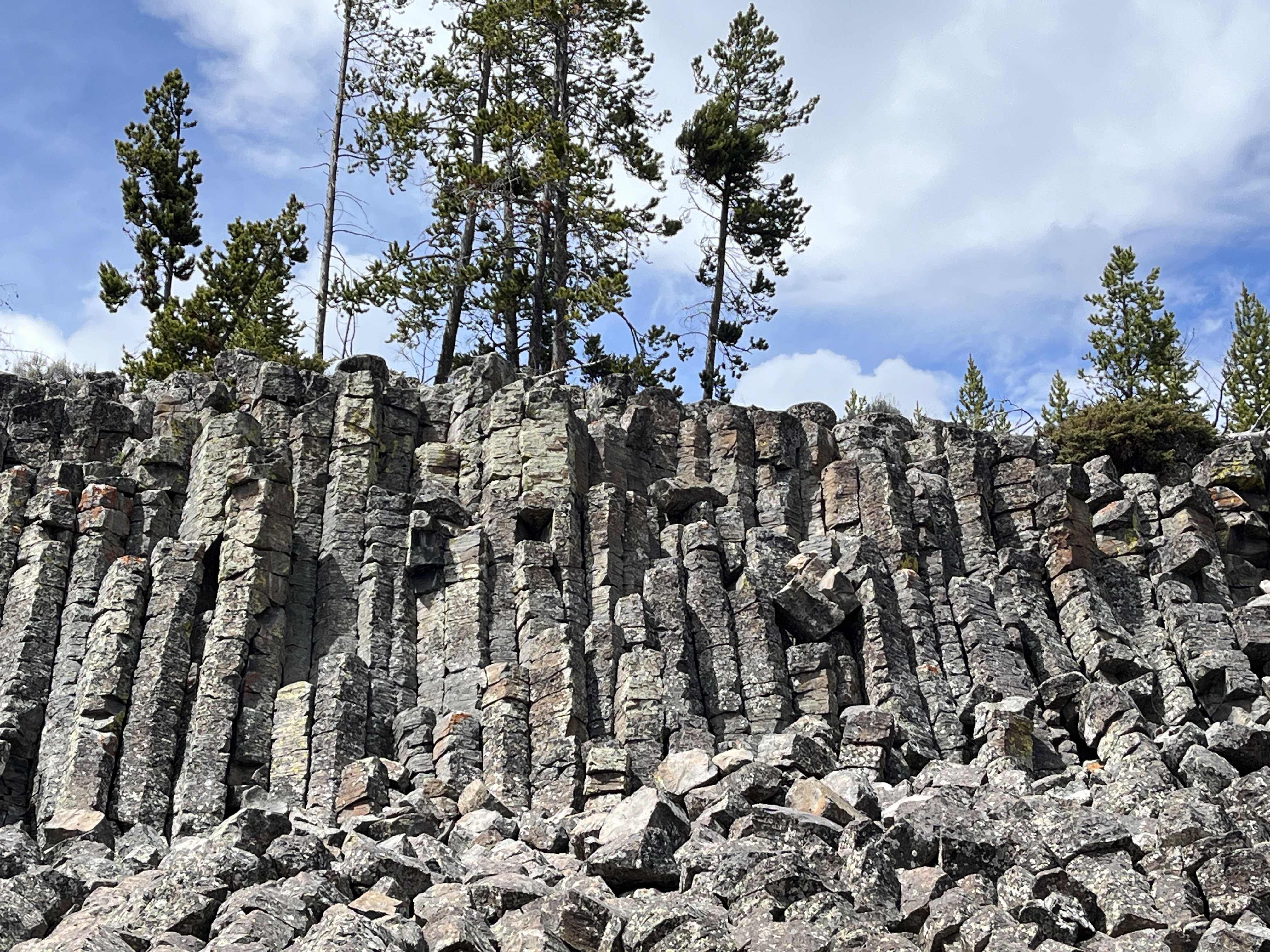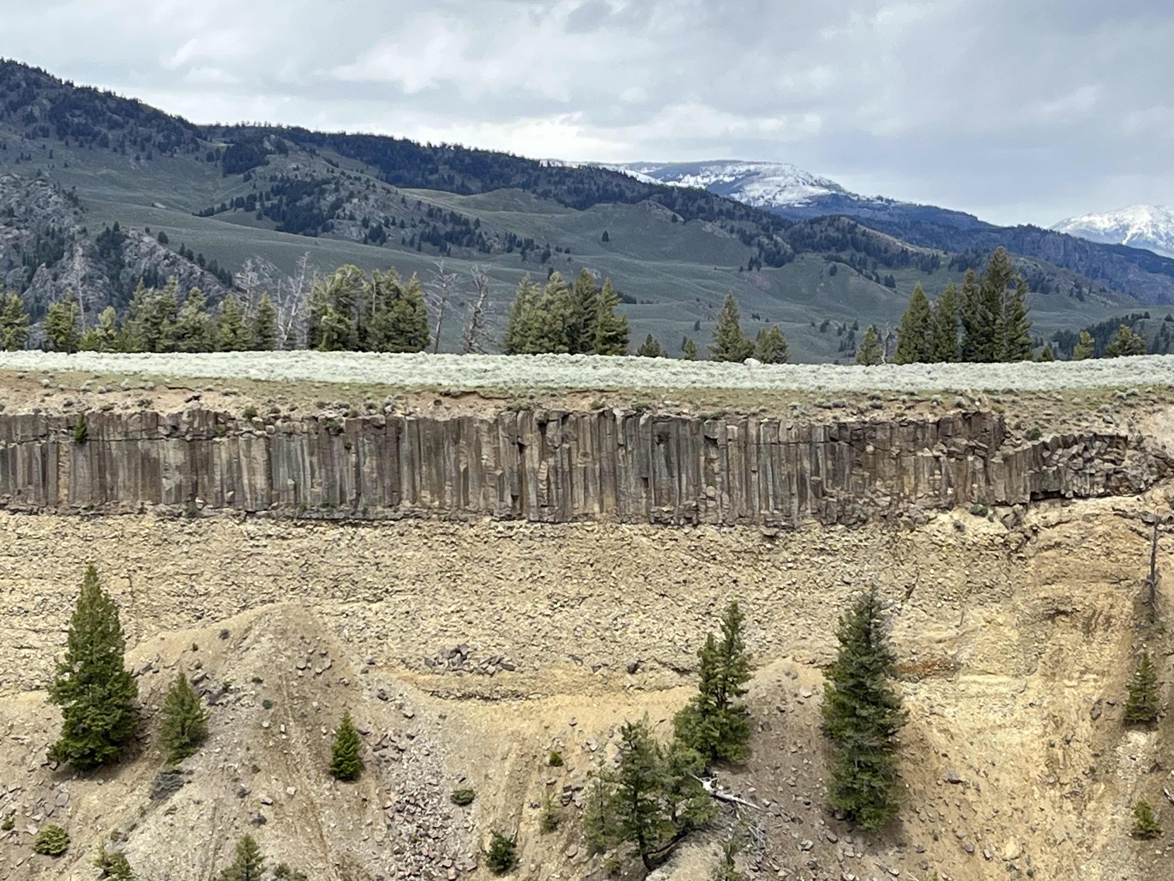 המשכנו בנסיעה צפונה עם עצירה קצרצרה בהר השואג Roaring Mountain לצילום והתרשמות מצלע ההר שיוצאים ממנה אדי קיטור. ובנקודת התצפית Sheepeater Cliff לראות את תצורות המשושים בצלע ההר. פה גם ירדנו ברגל ממש עד המים של נהר גרדינר (הרגוע).