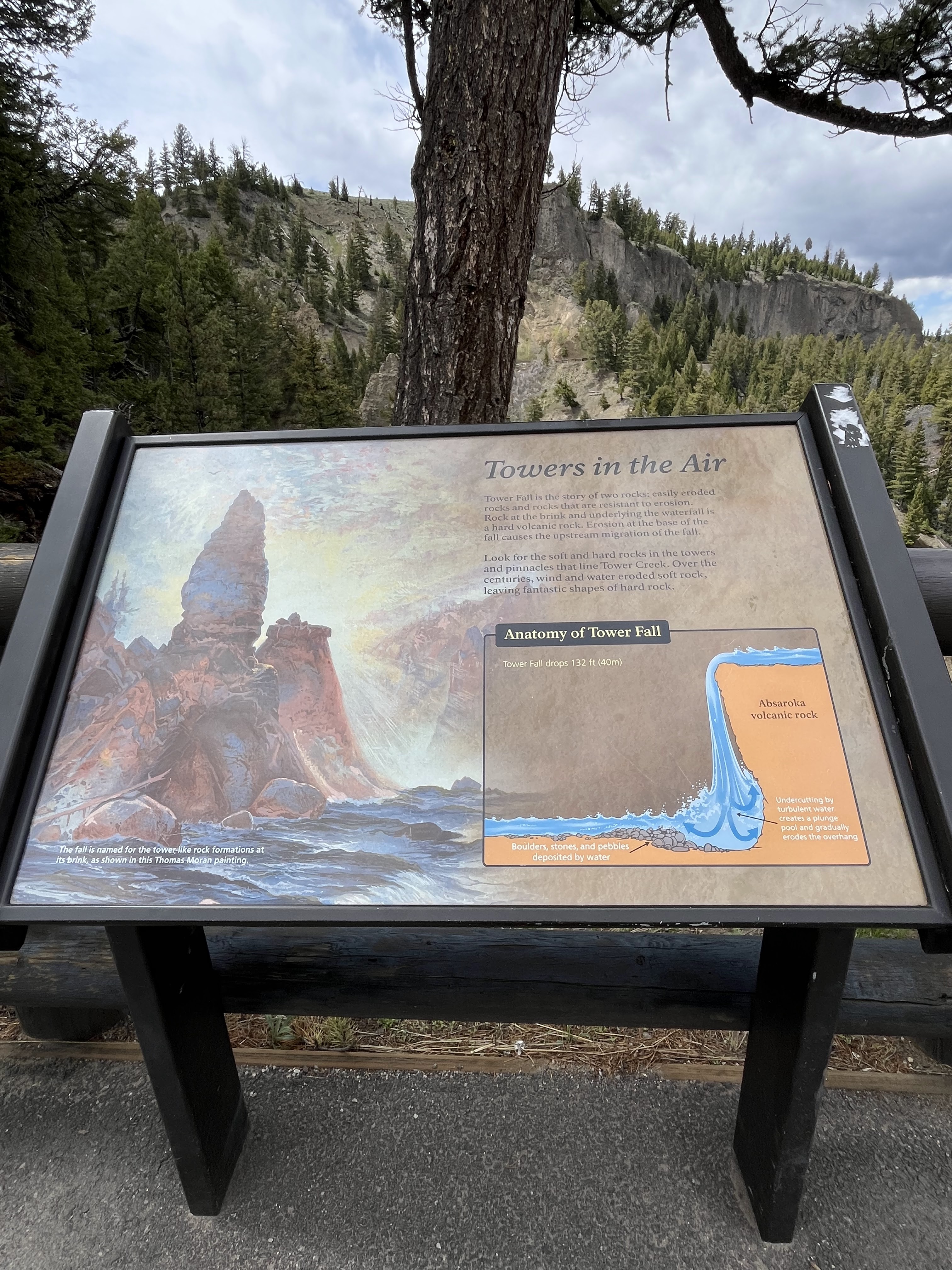 נסענו הלוך וחזור בעמק למאר עד נקודת התצפית על המפל היפה של Tower Falls שנקראים ככה בגלל תצורות סלעים שנראות כמו עמודים, ומשם התוכניות התחילו להשתבש.