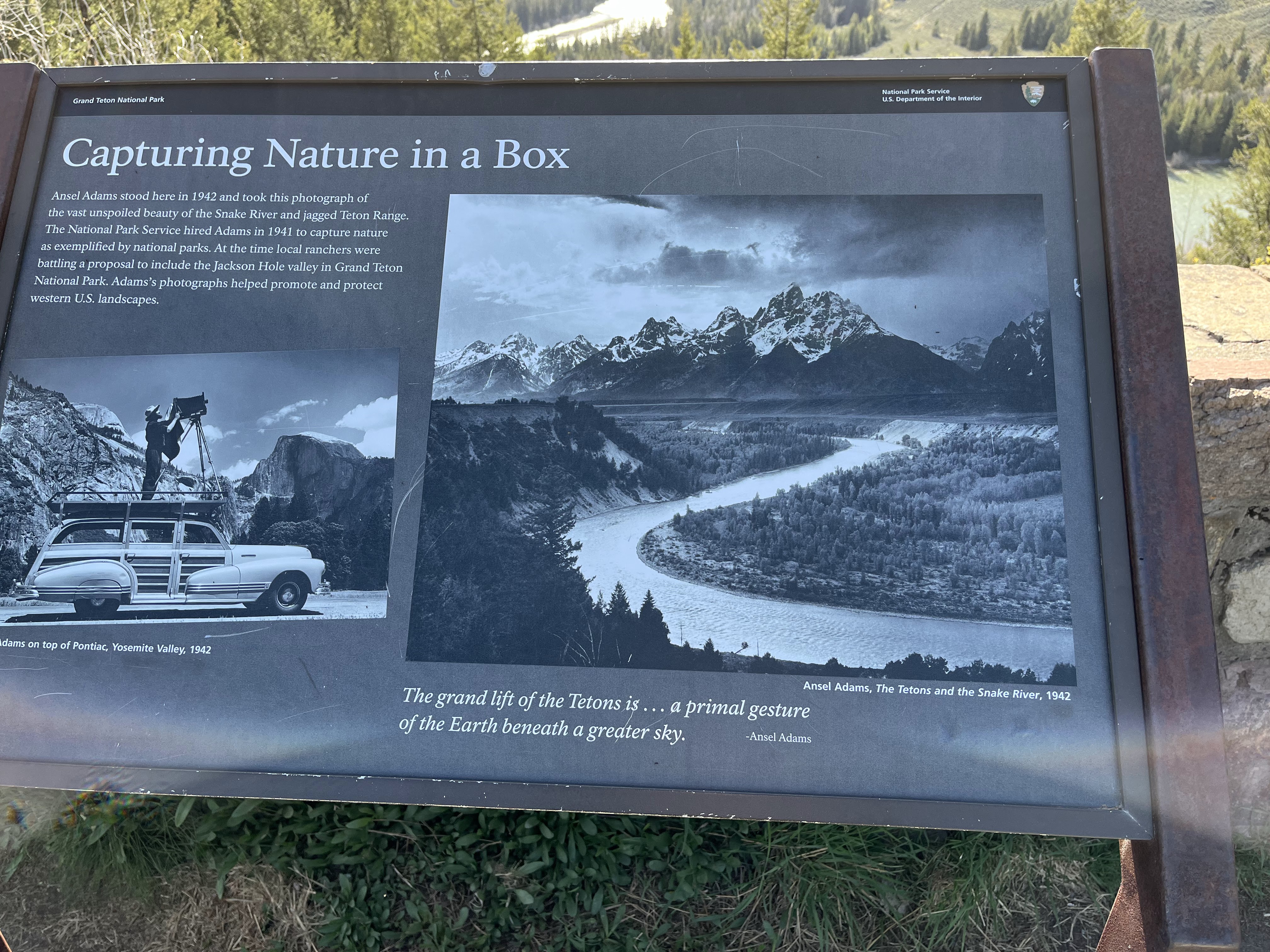 נקודת התצפית המפורסמת Snake River Overlook ממנה צילם אנסל אדמס את אחת התמונות המפורסמות של הפארק. עשינו טעות כשהגענו לתצפית אחר הצהרים, כי השמש היתה בפרצוף והתמונות פחות טובות. מומלץ להגיע לנקודה הזו בשעות הבוקר כשהשמש מאירה את ההרים ולא מאחוריהם.