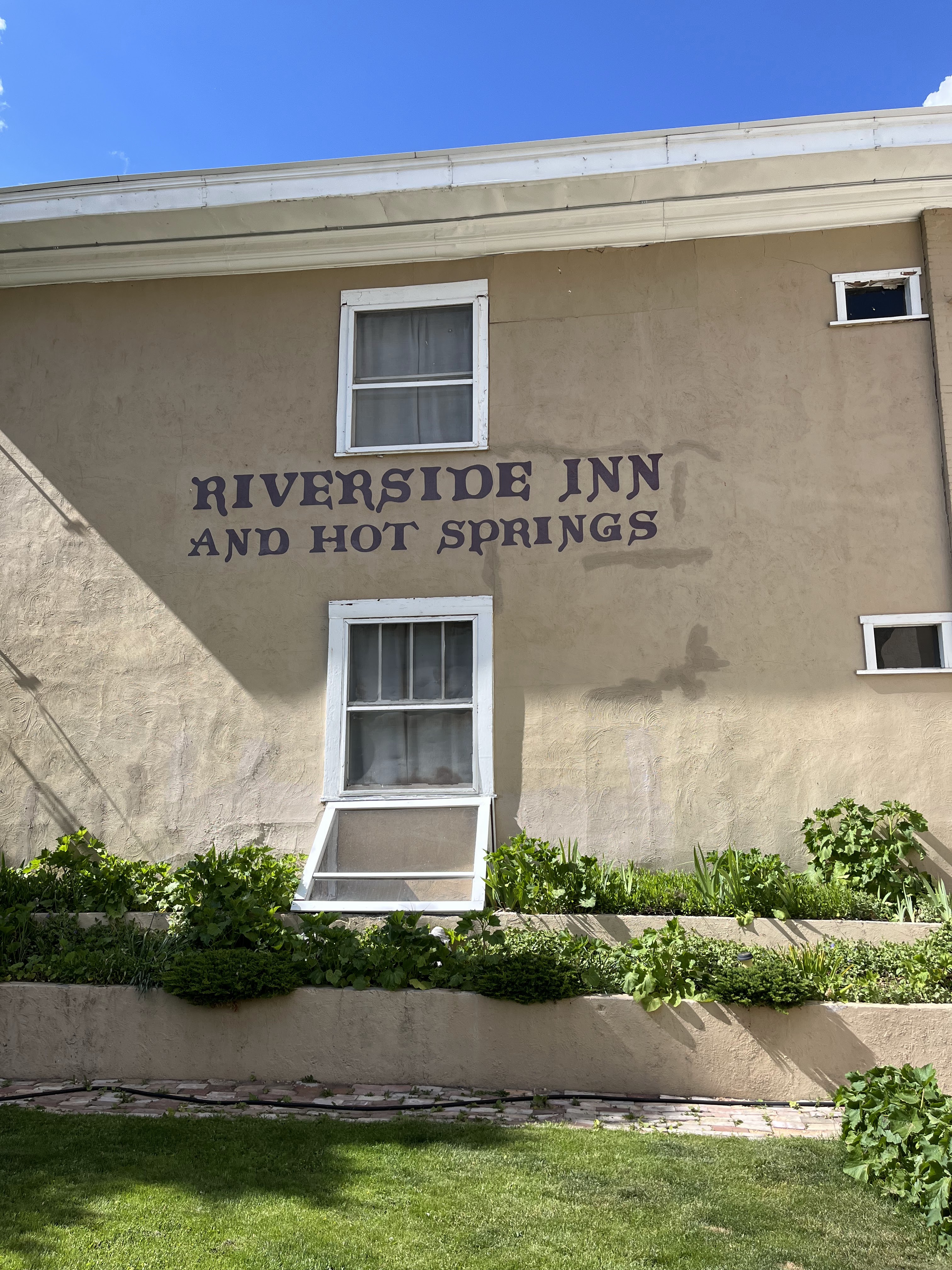 Riverside Hot Springs Inn & Spa מלון קצת ישן וקצת הזוי, אבל שירת את מטרתו של שנת לילה טובה, וטבילה כיפית במי מעיינות מאד חמים. יש ארוחת בוקר (רשימה של דברים שצריך לבחור אחד מהם, אנחנו לקחנו סינמון רול ופרנץ' טוסט), יש חניה, יש מרחצאות פרטיים לטבילה, והמפתח הוא מפתח, לא כרטיס מגנטי.