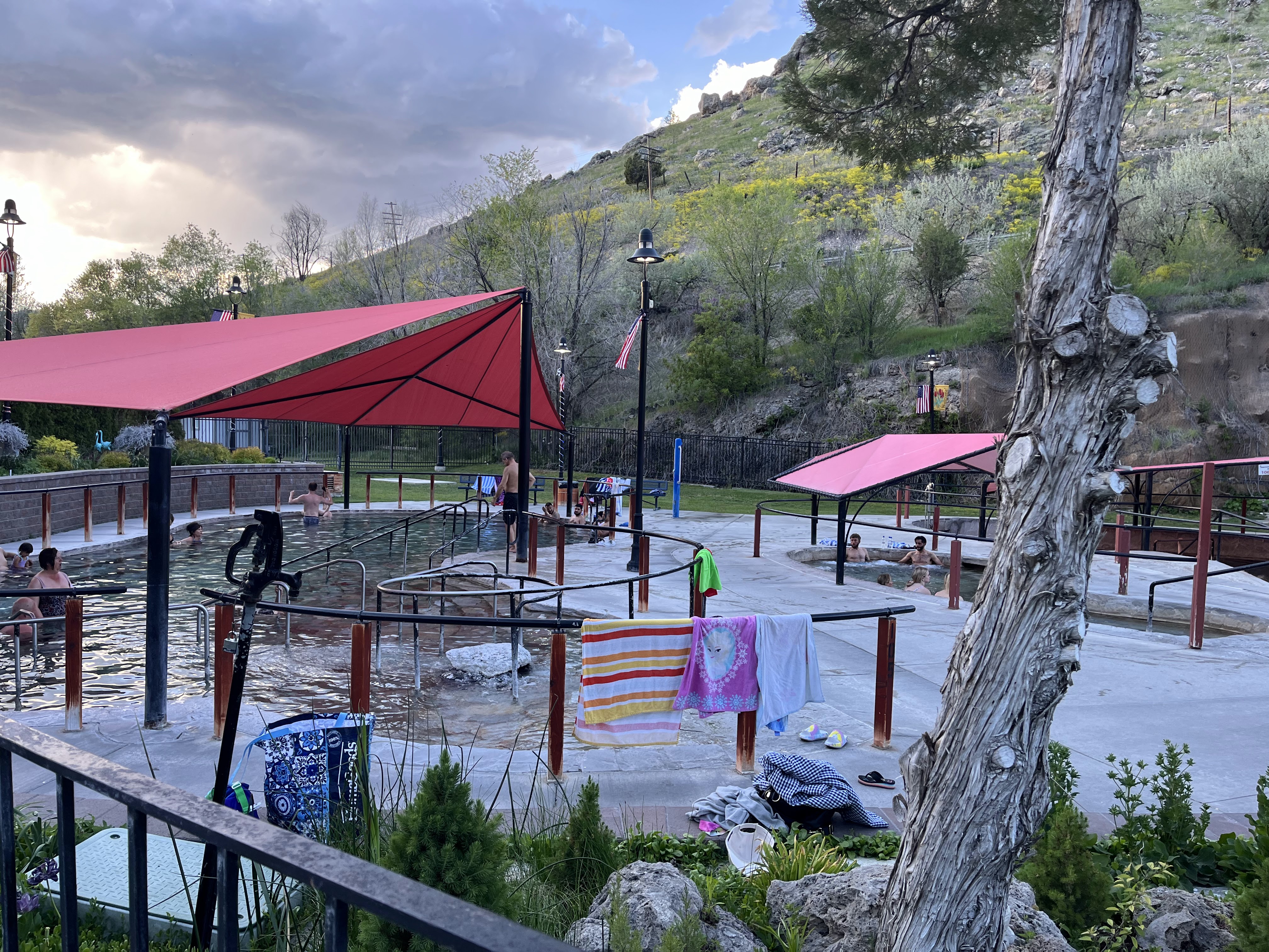 נפרדנו מהפארקים הלאומיים ונסענו כשעתיים בכבישים קטנים ונופים ירוקים עם המון פרות וסוסים, עד העיירה הקטנה באיידהו – לבה הוט ספרינגס Lava Hot Springs. כמו שאפשר לנחש מהשם, העיירה הקטנטנה הזו מתבססת על מרחצאות חמים שנובעים באיזור. יש מרחצאות ציבוריים במחיר לא גבוה, ובמלון שלנו היו בריכות חמות קטנות לשימוש האורחים. בעיירה יש גם בריכה עם מגלשות, ונהר שפופולארי לשייט אבובים, כולל שאטל שלוקח את הנוסעים מנקודת הסיום לנקודת ההתחלה.