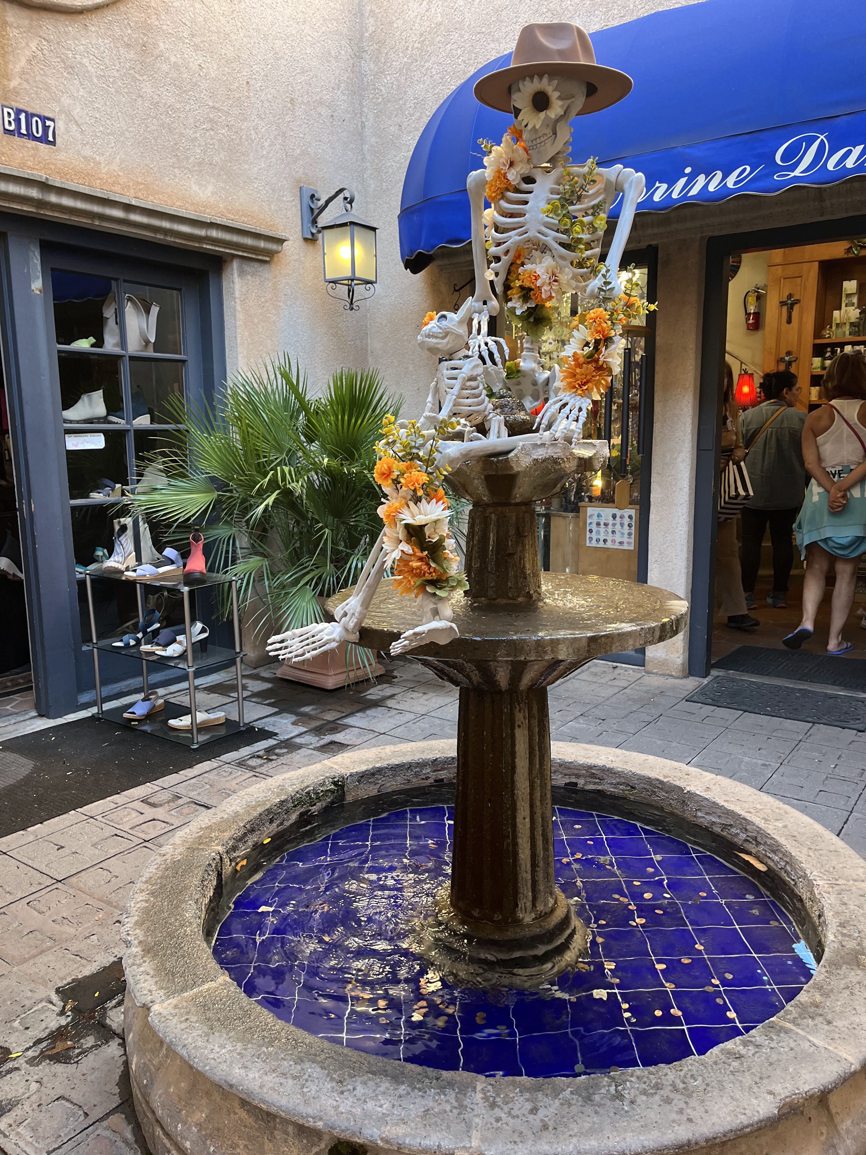 עשינו צ'ק אין ויצאנו שוב לביקור בכפר האמנים טלקפקה Tlaquepaque Arts & Shopping Village. למרות השם, לא מדובר בכפר שבו גרים אמנים, אלא במרכז קניות מסוגנן שבנוי בסגנון של כפר מקסיקני. הכפר מאד נחמד, מלא בגלריות וחנויות, וגם קצת אוכל. כשהמקום נבנה, בעלי הקרקע ביקשו שהמפתחים ישמרו על עצי השקמה Sycamore שגדלו על השטח, ולכן הבתים נבנו סביב העצים, חמוד ממש. הסתובבנו ב"כפר" שהיה מקושט לכבוד יום המתים Dia de los Muertos, התרשמנו מהאמנות, אכלנו גלידה וקנינו מזכרת קטנה.