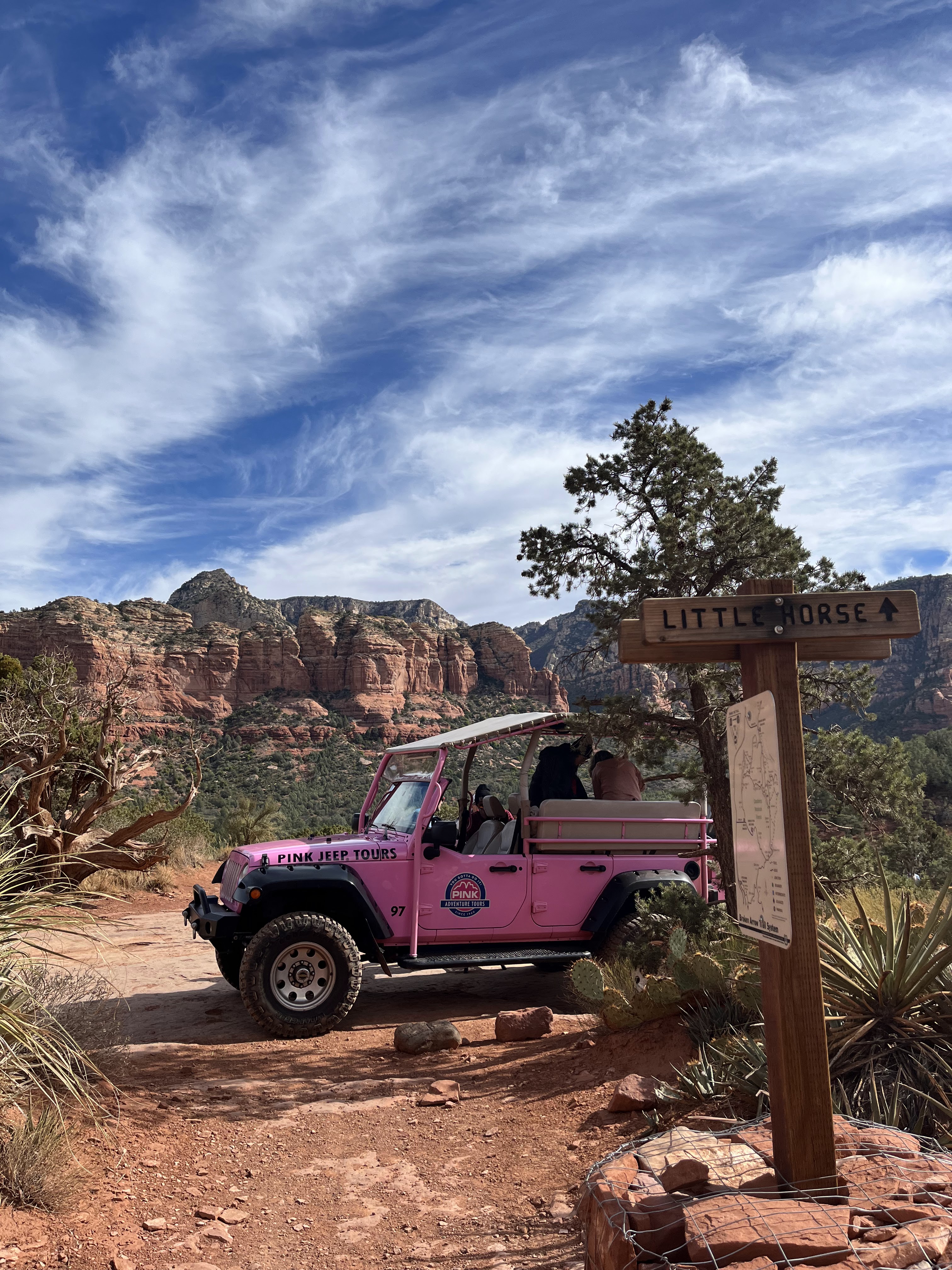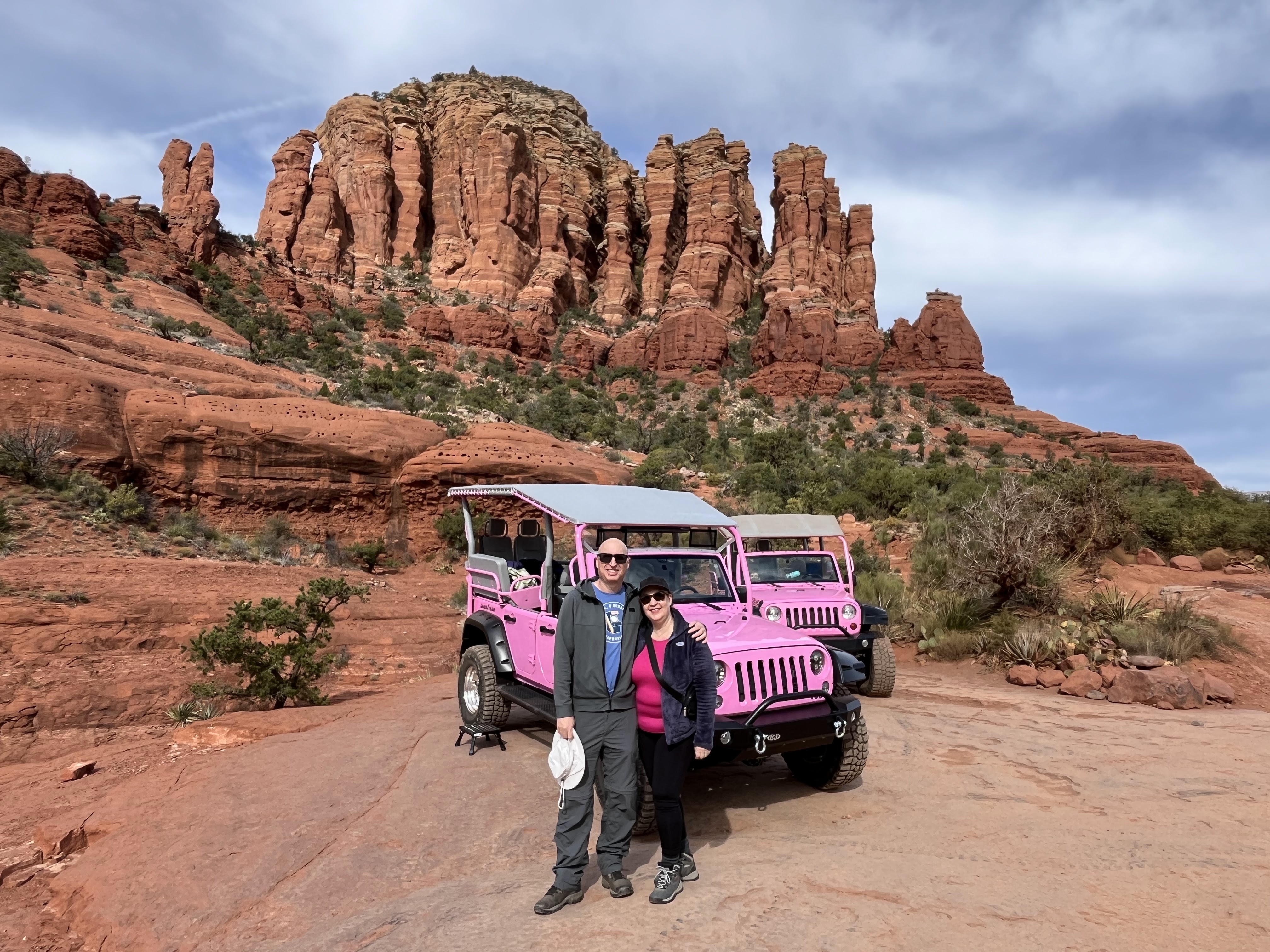 התחלו את הבוקר בארוחת בוקר במלון שהיתה נחמדה למדי במושגים אמריקאים ואז נסענו למרכז העיר סדונה שנקראת משום מה uptown (בניגוד לכל מקום נורמלי שבו למרכז העיר קוראים downtown) כדי להצטרף לסיור בג׳יפ ורוד. כשהתחלתי להתעניין בטיול ג'יפים קיבלתי המון המלצות על חברת הג'יפים הורודים Pink Jeep Tours, ובצדק. האופרציה מתוקתקת, הג'יפ נוח, והטיול כיפי לאללה.