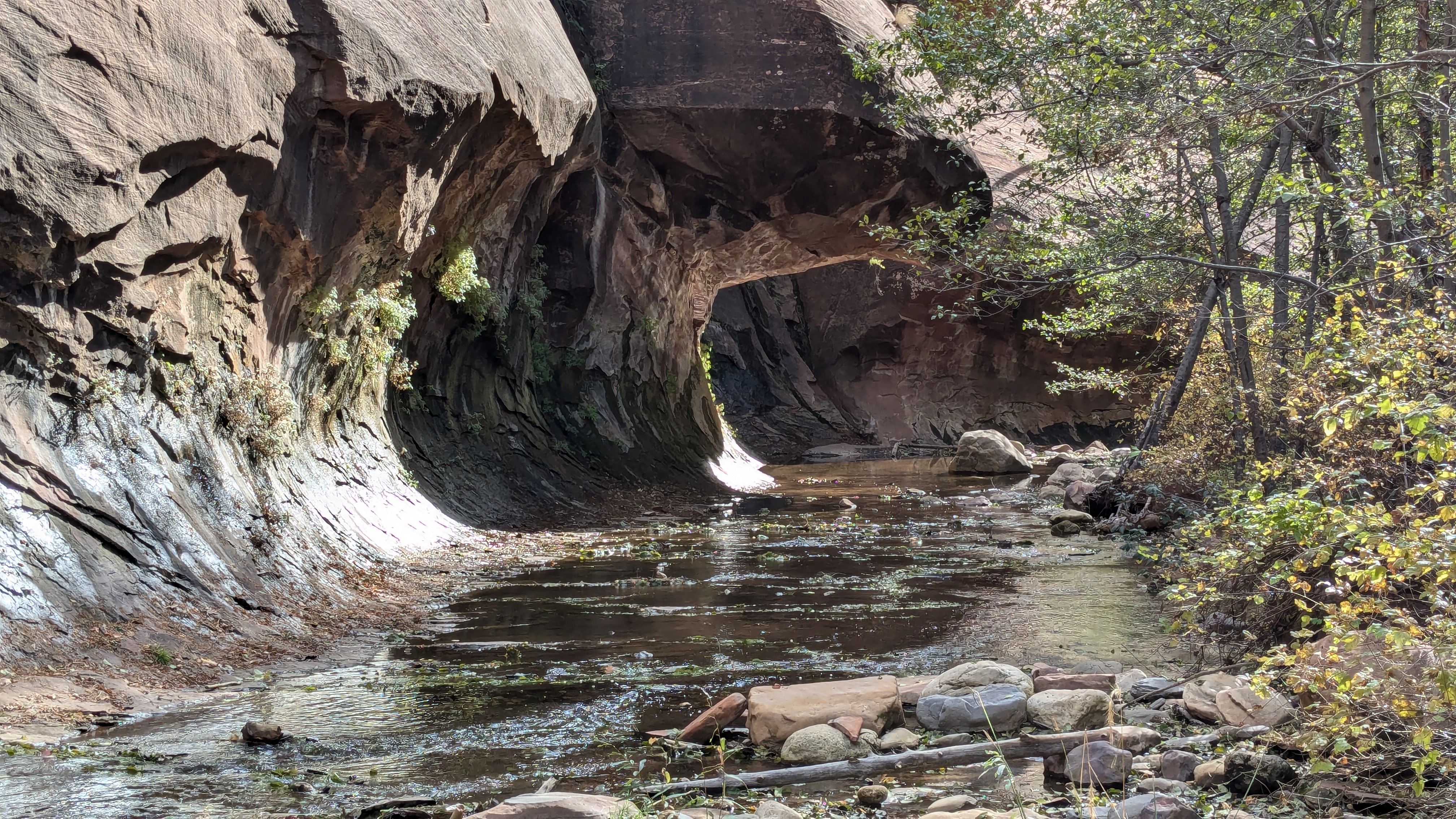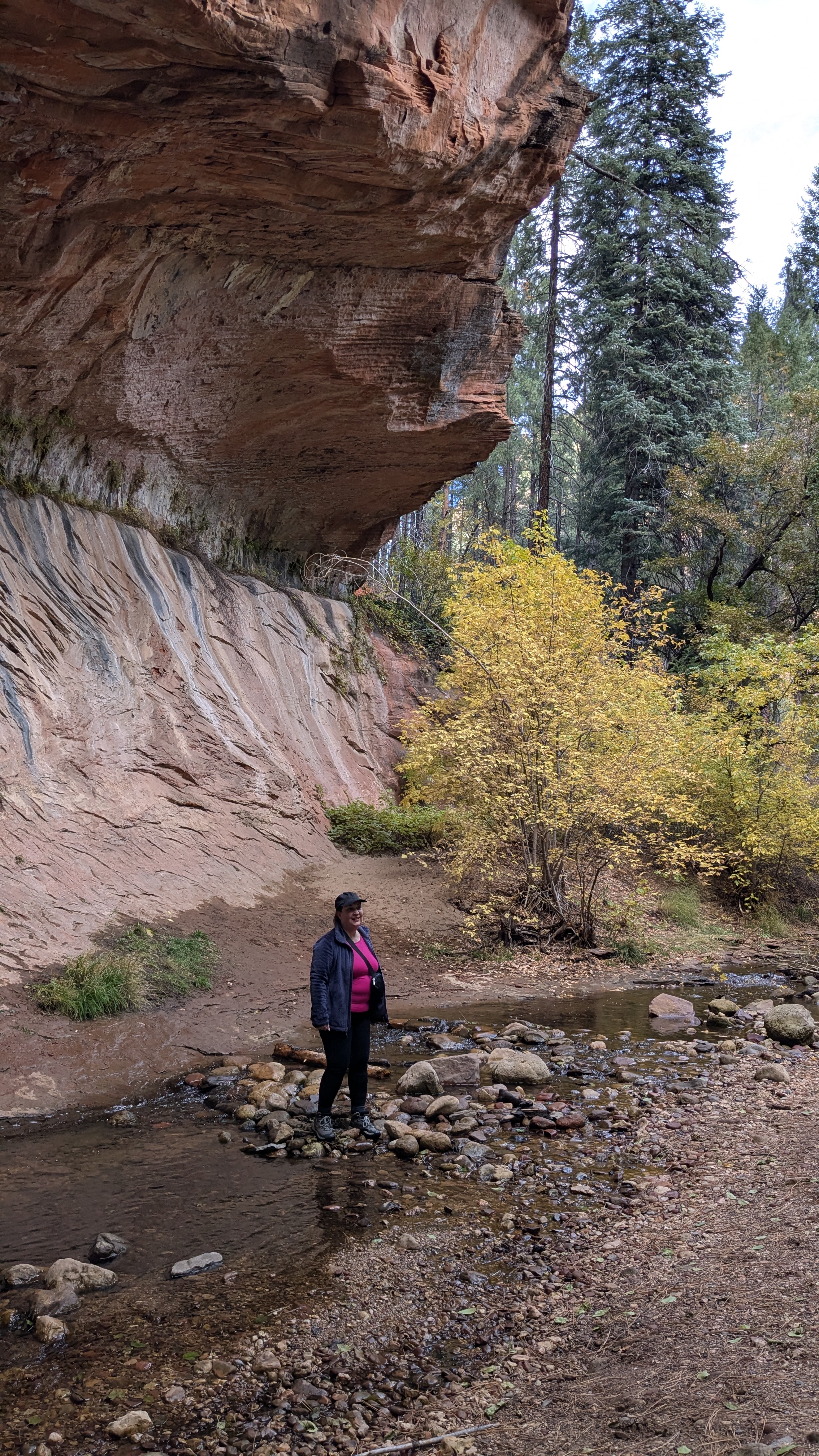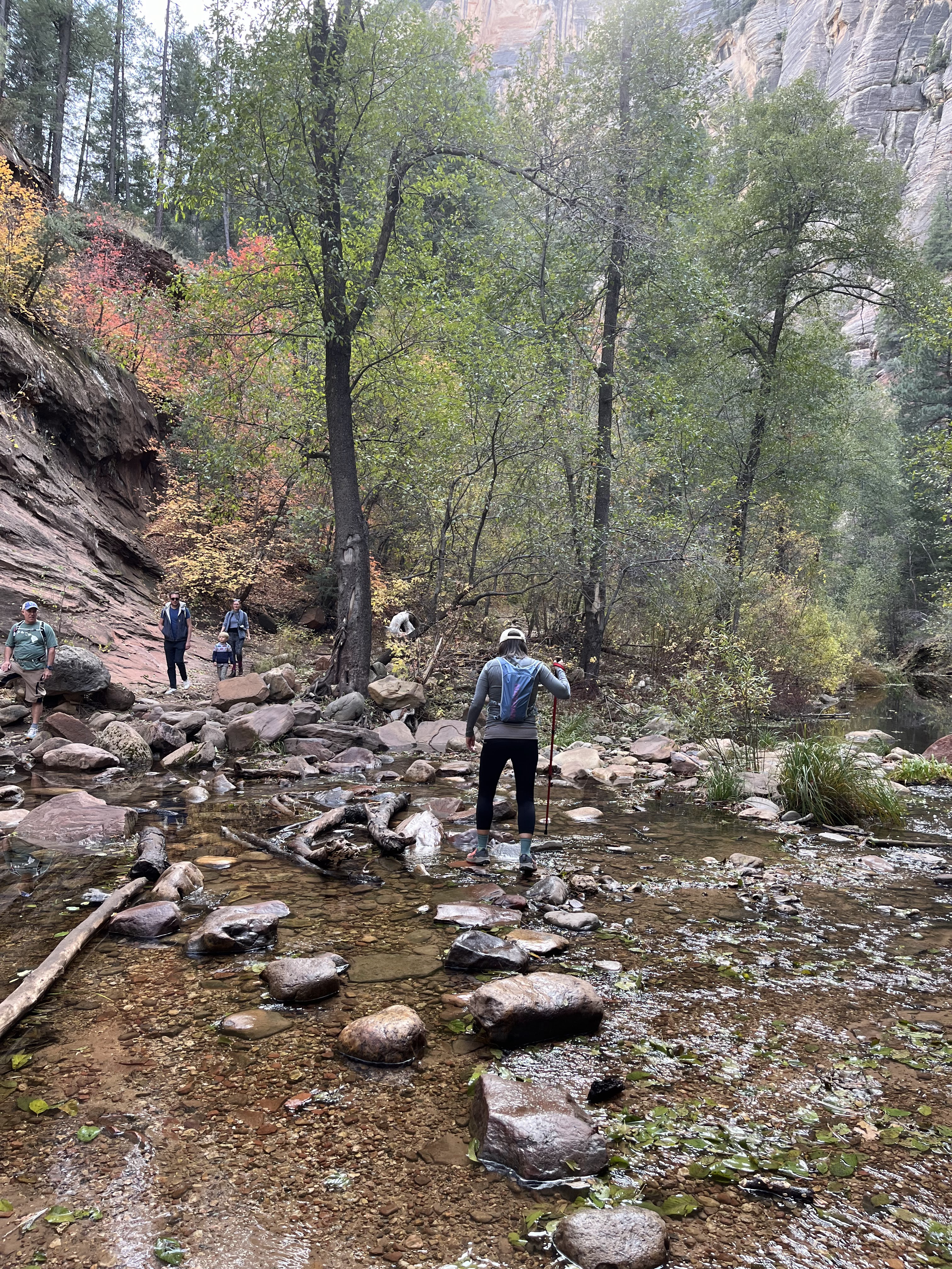 אחרי האחרונה הקלה, יצאנו צפונה מסדונה לכיוון פלאגסטאף Flagstaff. התוכנית המקורית היתה לבקר בפלאגסטאף ובמצפה הכוכבים על שם לאוול Lowell Observatory אבל הוא היה סגור לשיפוצים, אז לא הגענו עד לשם, אבל בדרך טיילנו באחד המסלולים היפים שיצא לנו לבקר בהם. מסלול ההליכה West Fork of Oak Creek Trail #108 הוא מסלול יפיפה לאורך הנחל בתוך הקניון, והוא לא קשה, למעט העובדה שצריך לחצות את הנחל הרבה פעמים. הצטערתי קצת שלא היו לי מקלות הליכה להקל על חציית הנחל, אבל בעזרתו של נעם הסתדרתי. גם העובדה שאנחנו מטיילים עם נעלי הליכה גבוהות ואטומות למים מאד הקלה, כי לא חששתי לדרוך בנחל עצמו. המסלול המלא הוא הלוך וחזור, כ 3.5 מייל לכל כיוון, אבל אנחנו בחרנו ללכת רק כמייל אחד לכל כיוון. עדיין היה מהמם עם מצוקים, מים, צמחיה, וגם צבעי שלכת. מסלול מומלץ.
