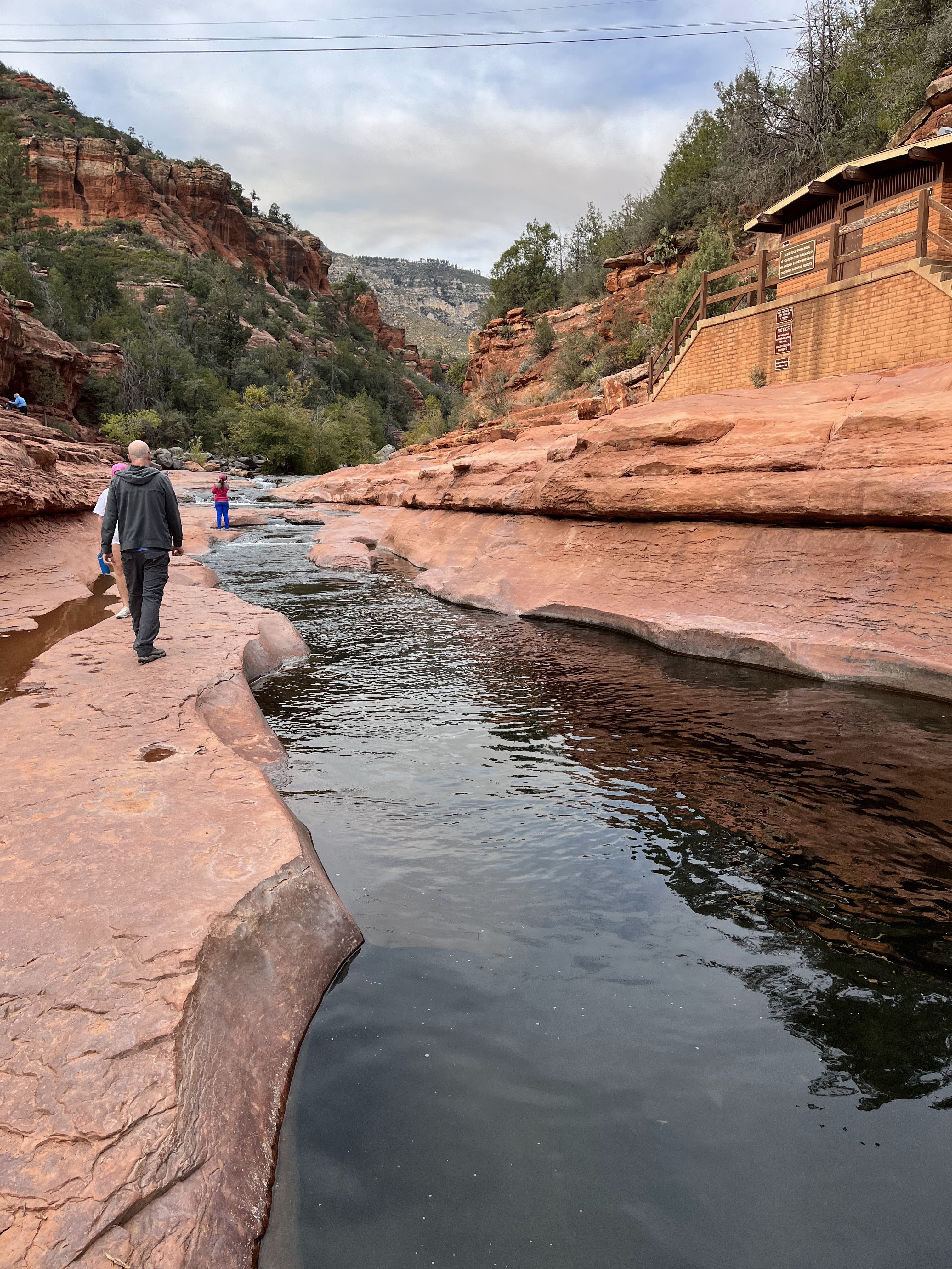בדרך חזרה לכיוון סדונה ערכנו עצירה לביקור קצר בSlide Rock State Park המפורסם. בקיץ האתר משמש לשחיה וגלישה במגלשות סלע טבעיות, וכשמזג האויר חורפי והמים קפואים, סתם יפה לראות אותו ולהתרשם.