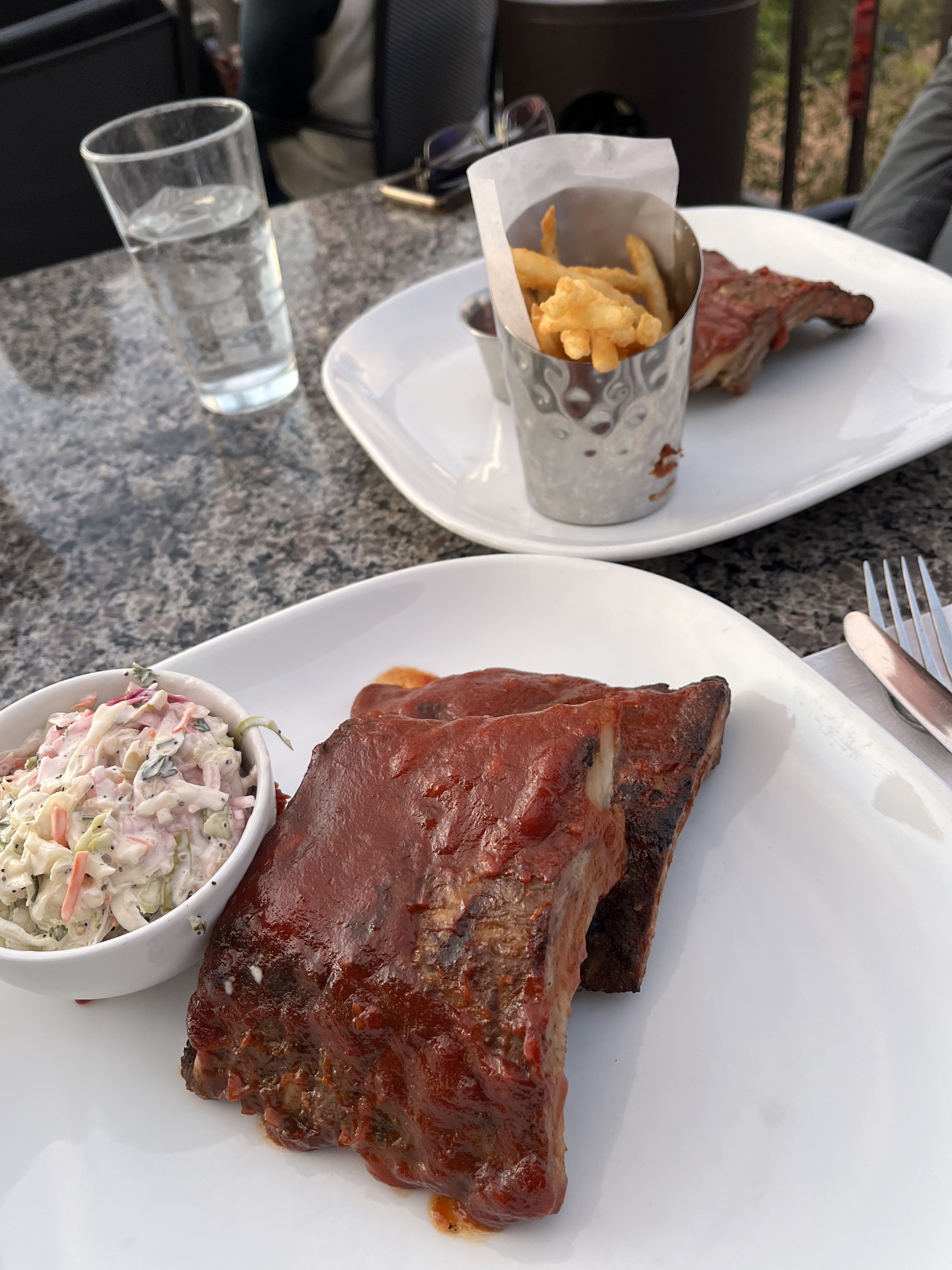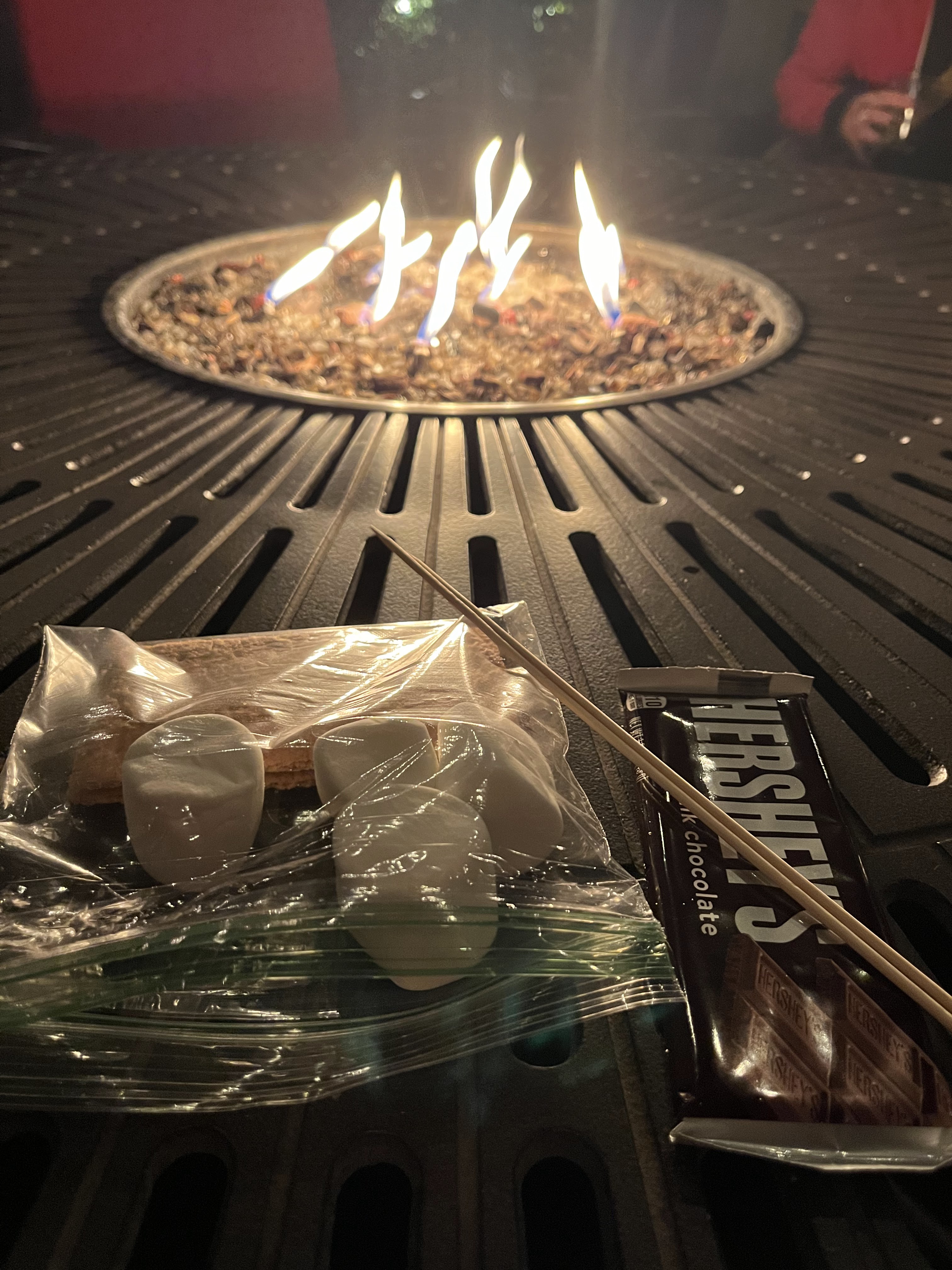 כיוון שלכיוון מרכז העיר היו פקקים בזכות אירועי יום המתים המקסיקני בכפר האמנים, נשארנו באיזור המלון. לארוחת ערב אכלנו במסעדה יפה בשם The Hudson שגם היא הומלצה על ידי המדריך בסיור בבוקר. ישבנו בחוץ על הדק מול ההרים והשקיעה (יש פטריות חימום שמדליקים כשמתקרר) וחלקנו מנה נדיבה של פוקי ומנה גדולה של צלעות. ולסיום הערב הלכנו לשבת ליד הפייר פיט של המלון, איפה שאפשר היה למצוא מוסיקה, יין, וסמורס (סנדוויץ' של ביסקוויט, שוקולד הרשי, ומרשמלו שמחממים על האש). משהו נחמד שהמלון מספק לאורחיו.