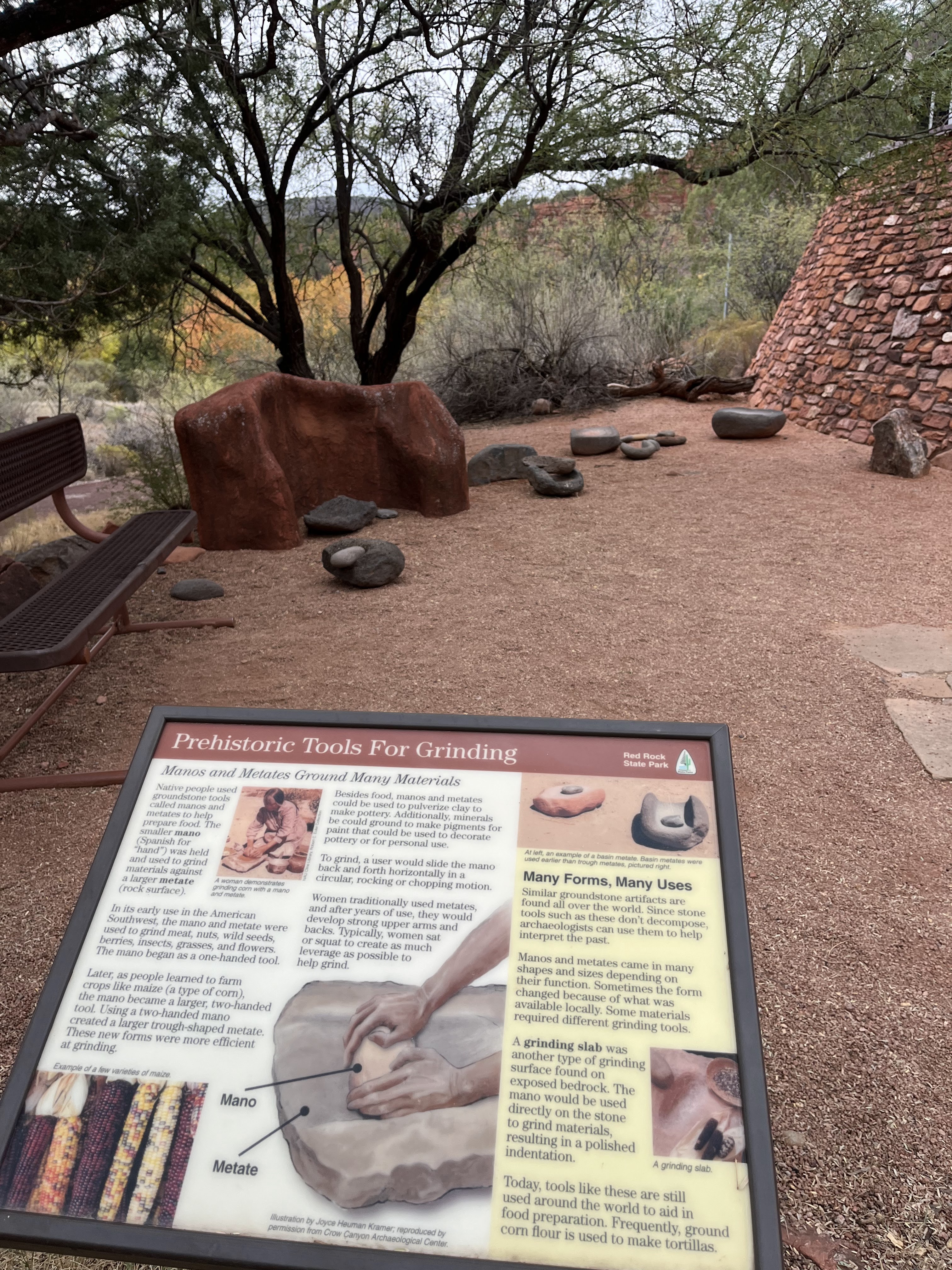 הסיור היה כל כך איטי שאחריו כבר היינו מוכנים לארוחת צהרים, אז נסענו לכיוון Airport Mesa – הר שטוח שממנו יש נופים נהדרים, כדי לאכול צהרים במסעדה Mesa Grill שנמצאת ממש בשדה התעופה הקטן של סדונה. ישבנו ליד חלון וצפינו במטוסים קלים ממריאים ונוחתים. המסעדה היתה די פשוטה אבל טעימה, וכשיצאנו כבר היה תור אז כדאי להזמין מקום בשעות עמוסות. המשכנו לחניה של נקודת התצפית Sedona Airport Scenic Lookout ממנה נשקף נוף רחב ידיים ויפה של העמק וההרים. בשביל התצפית צריך לחצות את הכביש אגב. בכניסה שאלו אותנו אם נרצה לשמור את הקבלה כדי לחזור אחר הצהרים לצפות בשקיעה, אמרנו שלא, מה שהיה סוג של טעות בדיעבד. התחלנו ללכת לאורך מסלול ההליכה מהחניון Sedona View Trail #169 אבל הוא היה מלא באבנים ודי שיעמם אותנו אז עשינו אחורה פנה.