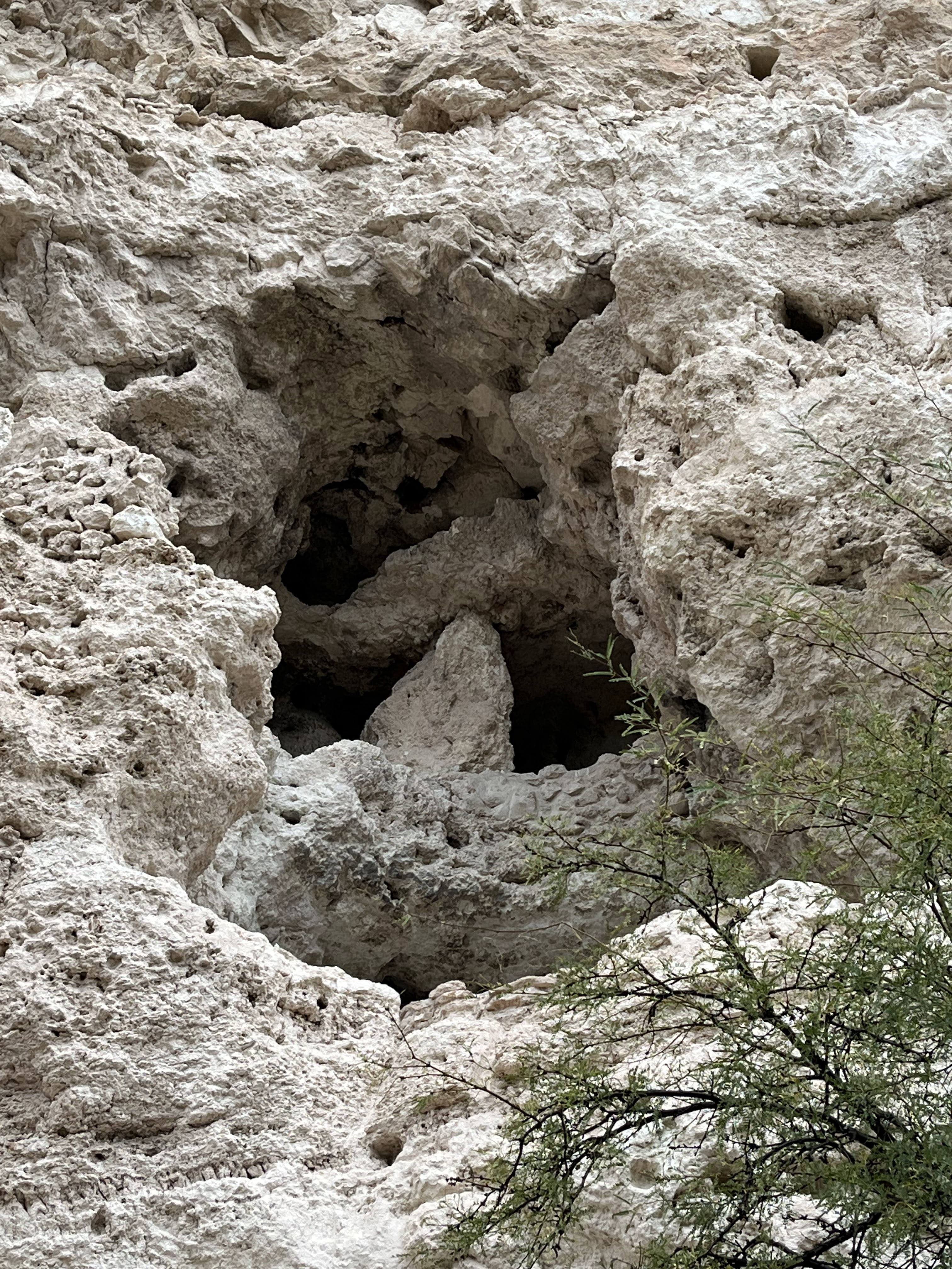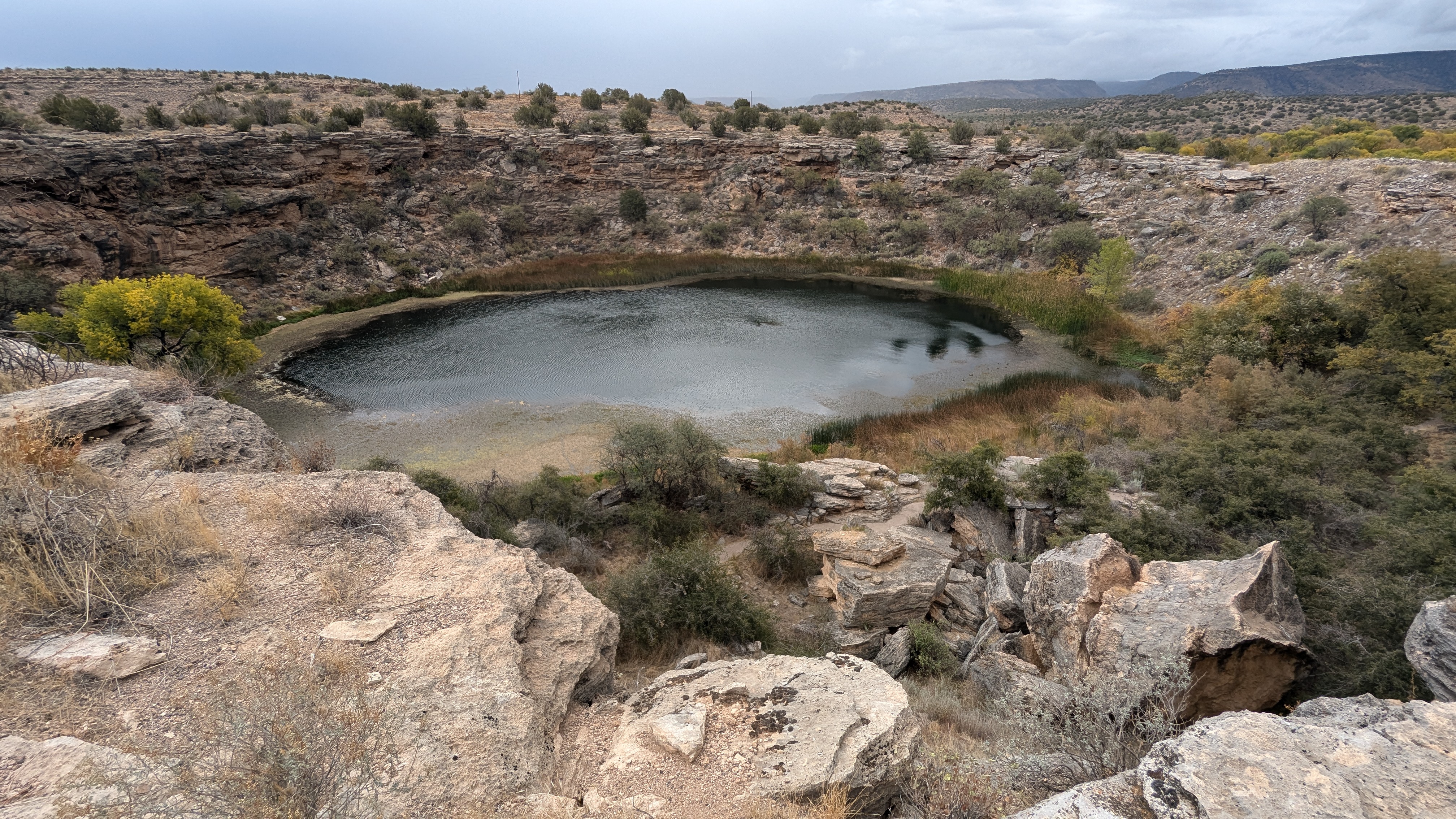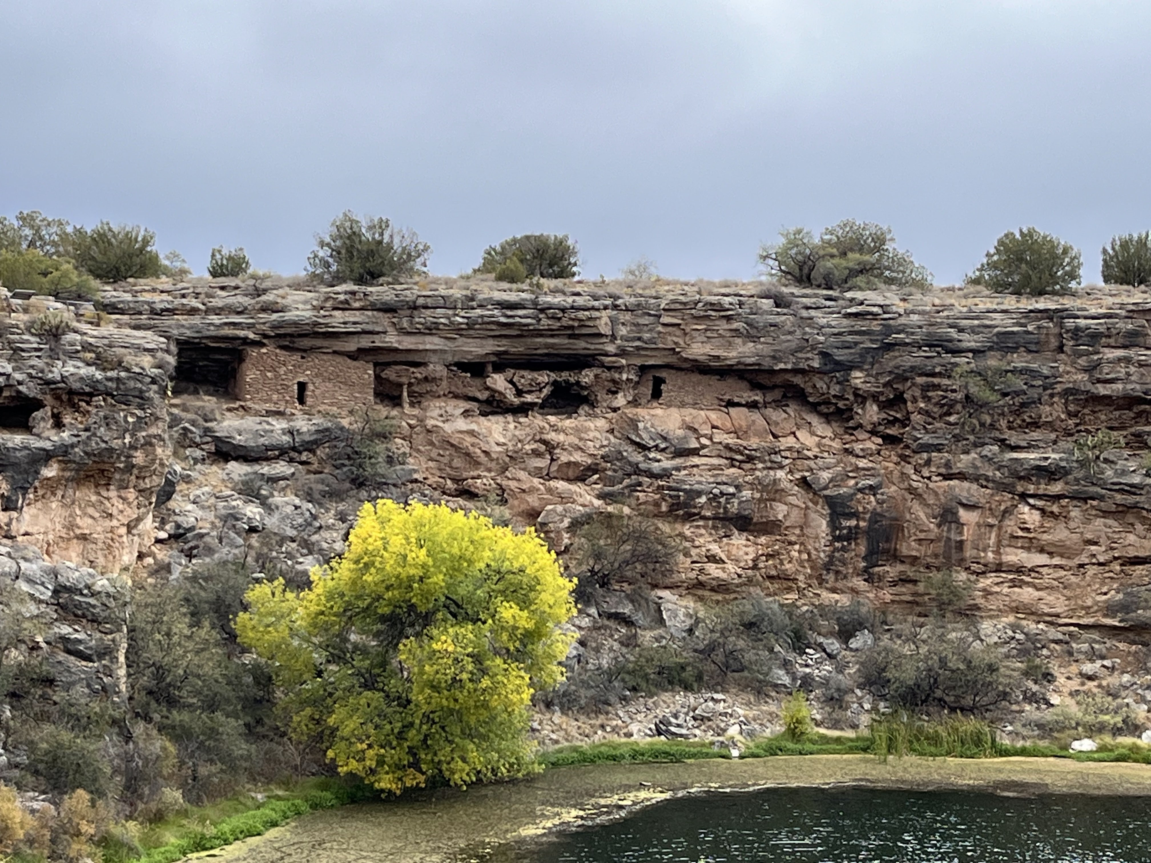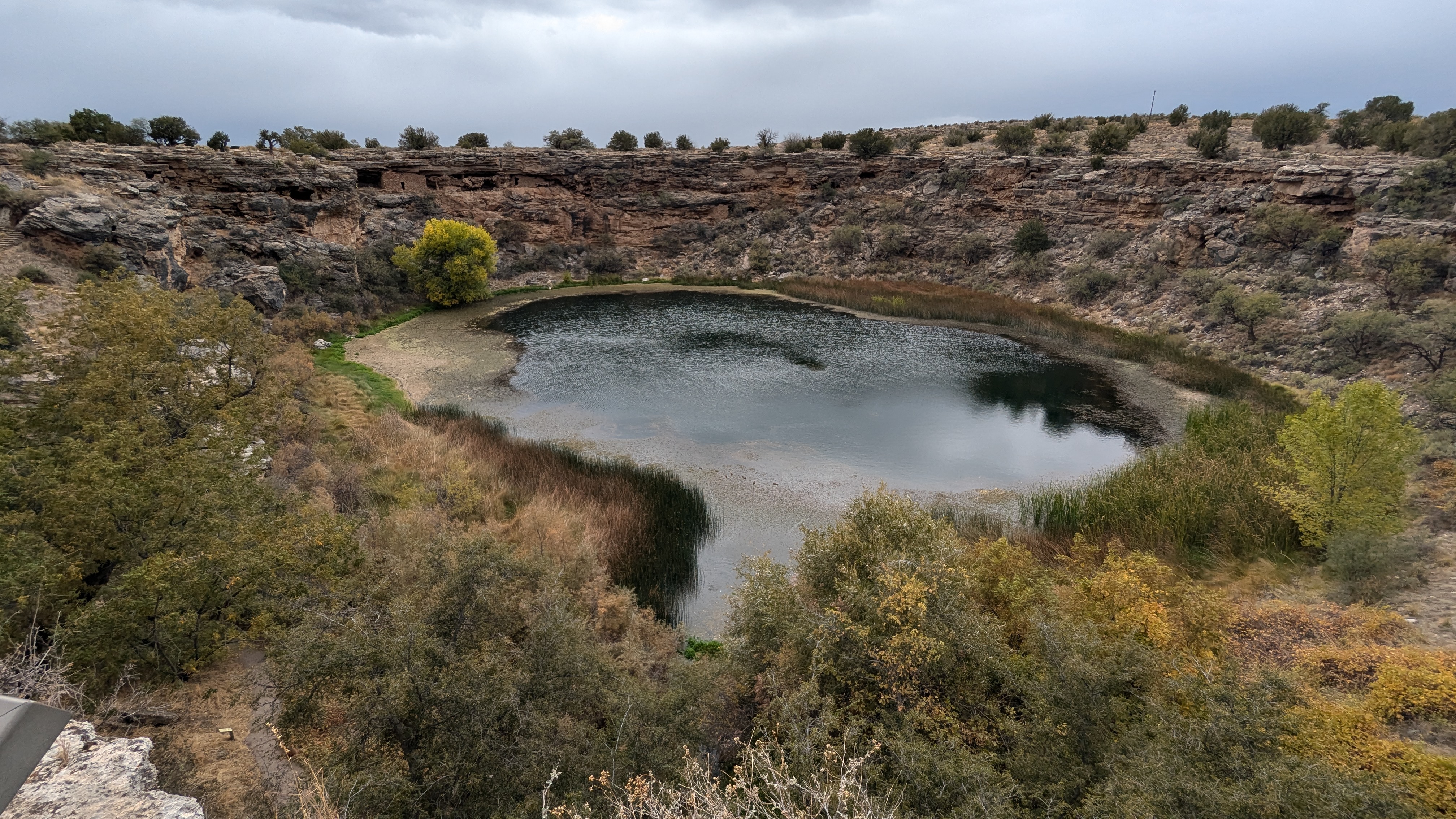 המשכנו בדרכנו, חזרה לכביש המהיר I-17 ומשם ליעד הבא במסלול המורשת – Montezuma Well. וואו, איזה הפתעה מעניינית! בניגוד למה שהשם מרמז, אין פה באר, אלא מעיין ענקי עם נביעה טבעית שנמשכת כבר מאות רבות של שנים. סוג של נווה מדבר. המים חמימים (23 מעלות) ומלאים בפחמן דו חמצני, ולכן אין בהם דגים אלא רק יצורים מוזרים ועלוקות. המעיין מפתיע בגודלו, ביופיו, ובבתים שנבנו במערות שלאורך הדפנות. הלכנו לאורך המסלול, קראנו את השלטים שהסבירו על הצמחים (ודי אישרו את מה שסיפרה לנו המדריכה בפארק רד רוק), וירדנו גם לראות את אחת התעלות שבנו התושבים העתיקים. מקום מפתיע.