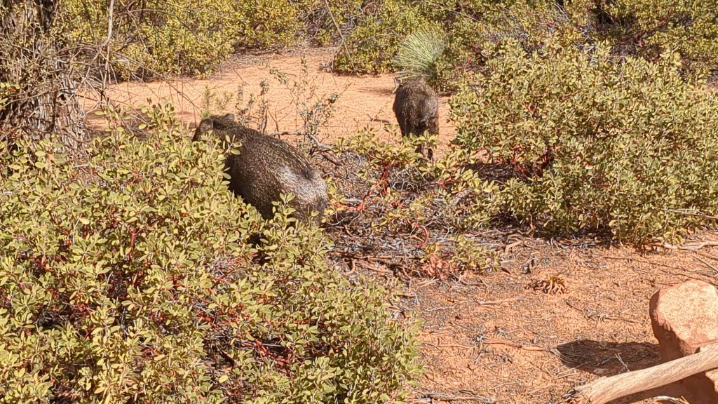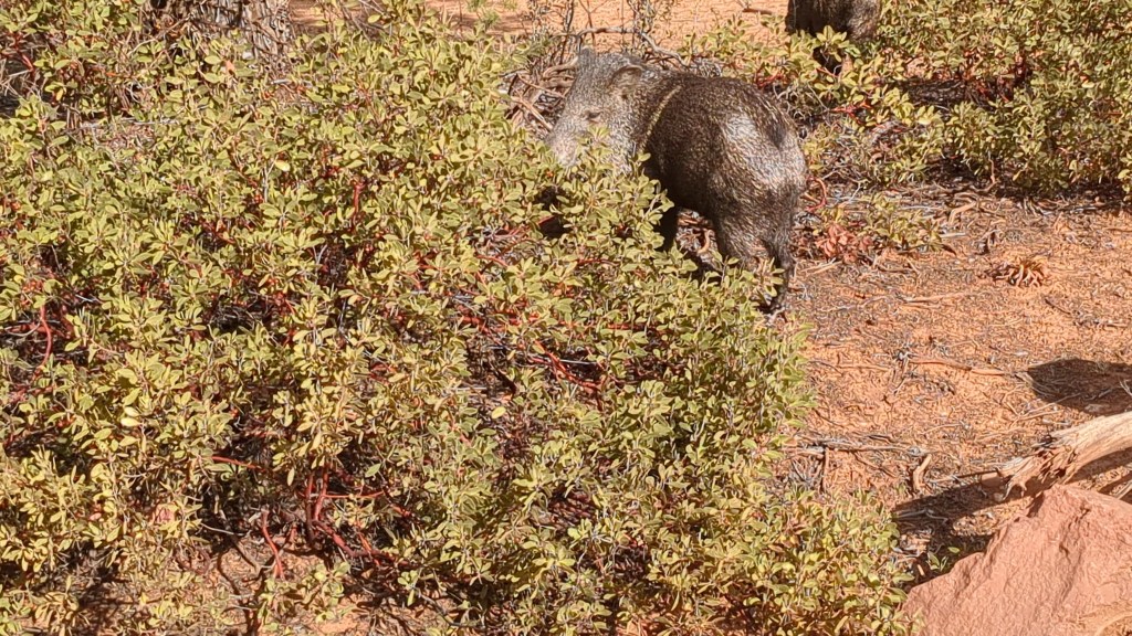 בחרנו בסיור הדגל של החברה Broken Arrow Tour, ובג'יפ היו איתנו מדריך וקבוצה מצחיקה למדי של בחורות קוריאניות. הסיור ארך כשעתיים, בהן נסענו בשבילים, טיפסנו על סלעים (עם הג'יפ), ירדנו בנחלים יבשים, וגם עשינו שתי עצירות לתצפיות וצילומים של נופים מטורפים. המדריך היה נחמד מאד, נהדר בנהיגה האתגרית, ודיקלם לא רע את המידע הסטנדרטי, אבל לא הכי ידע לענות על שאלות (ואני מאלו ששואלות שאלות). בדרך גם התמזל מזלנו ופגשנו את החיה דמויית החזיר השעיר הנקראת חבלינה Javelina. הם נעים בקבוצות בדרך כלל, אוכלים פירות יער, קקטוסים וחרקים, ונראים מאד משעשעים.