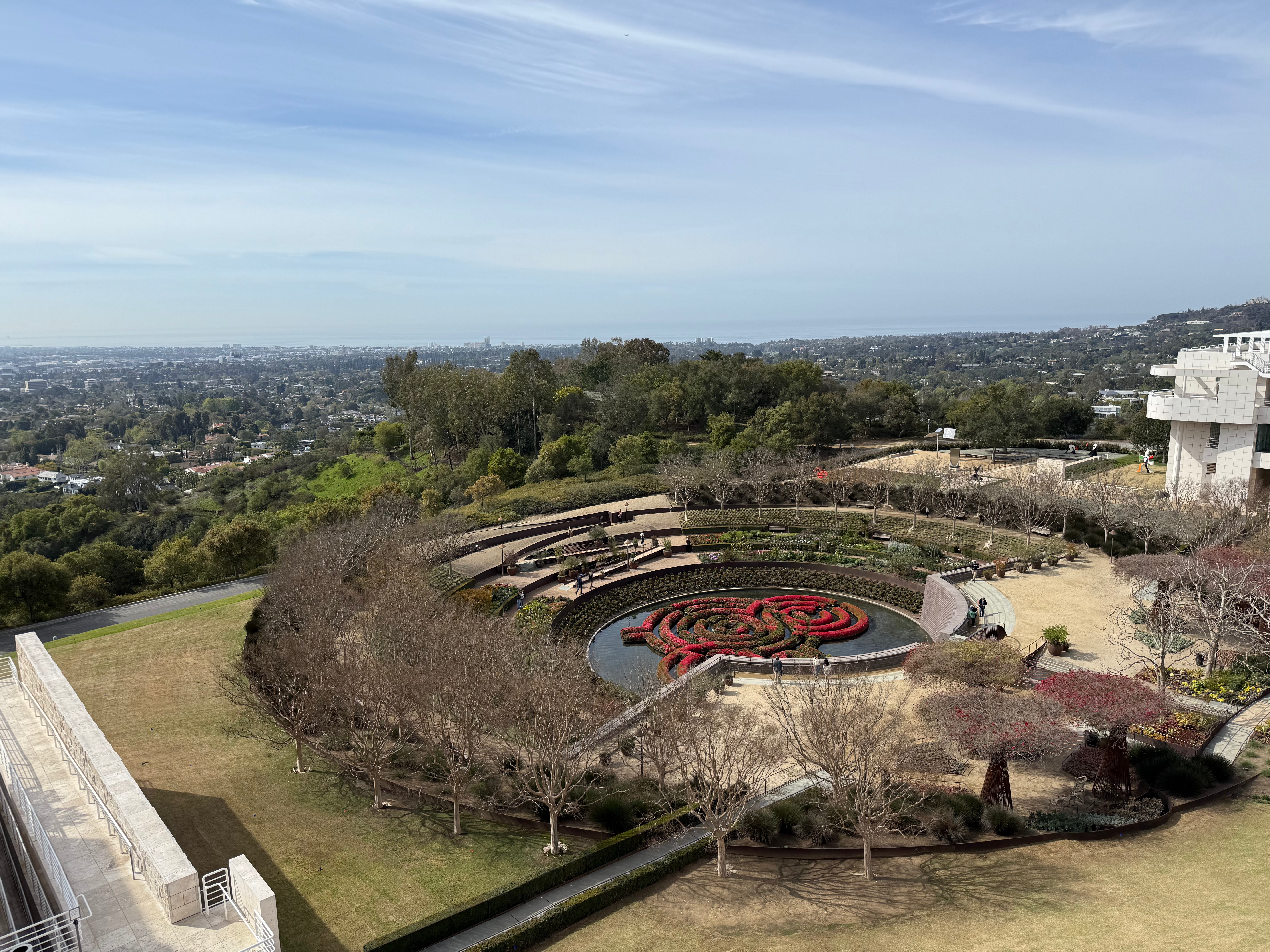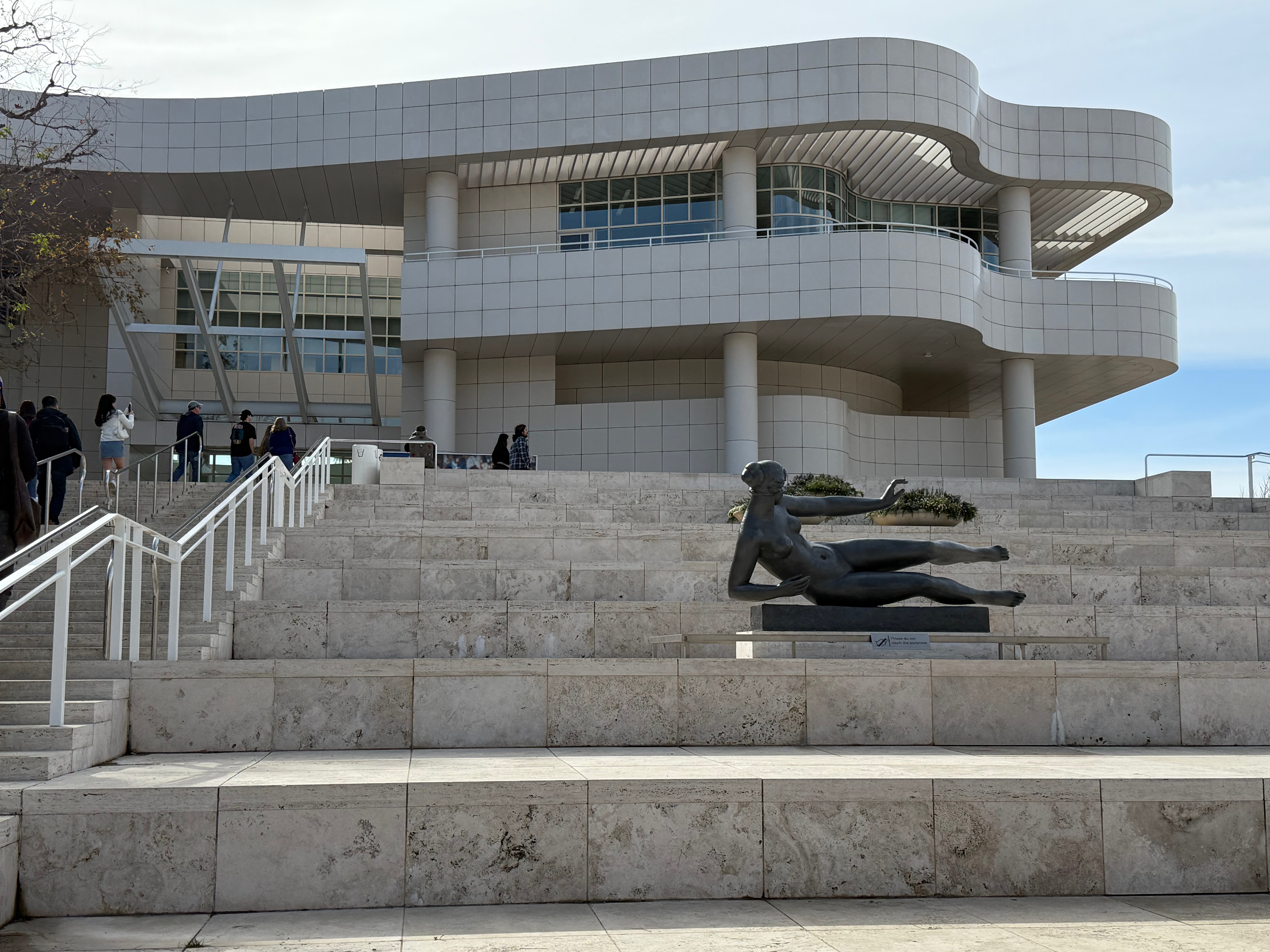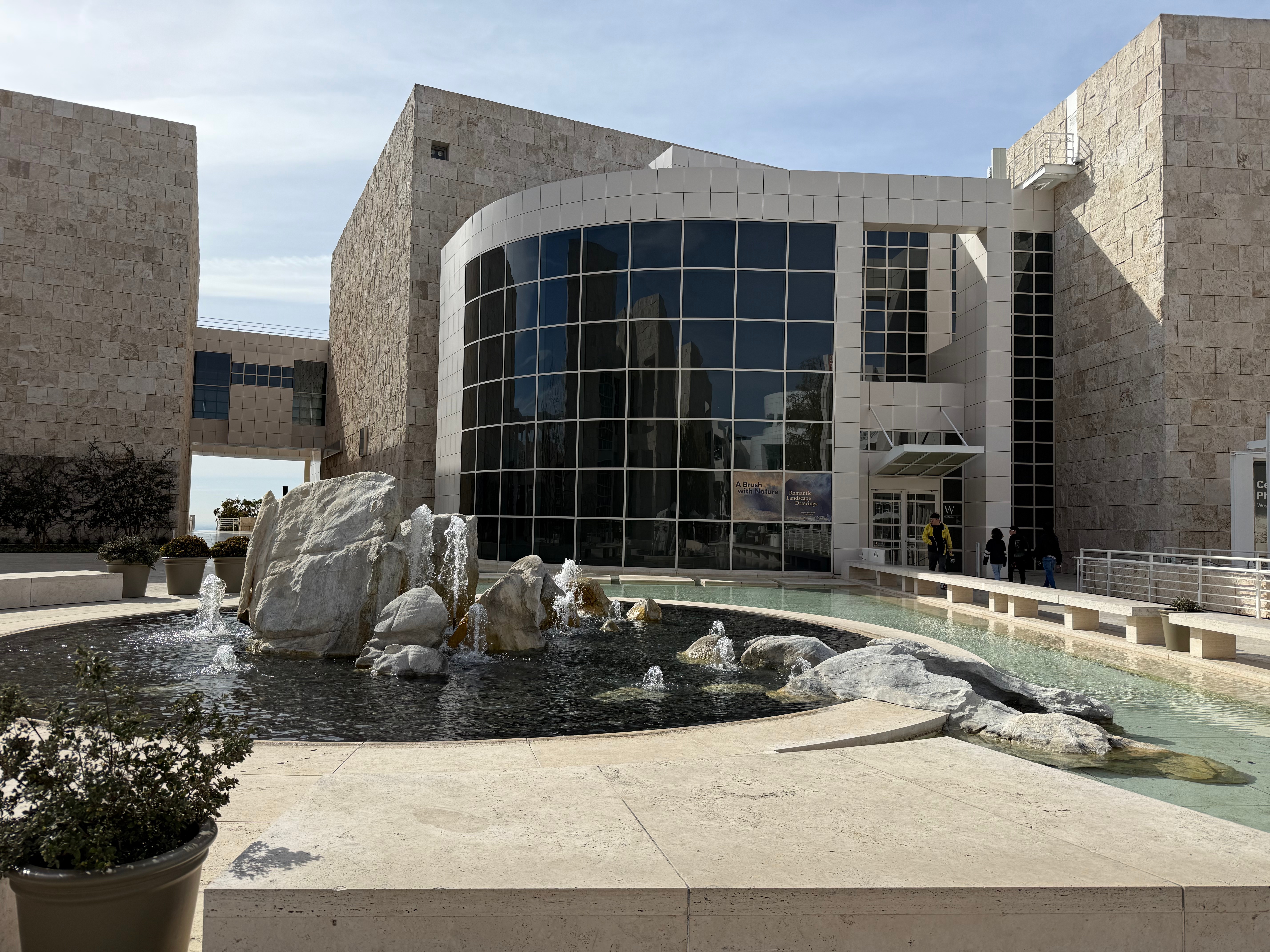 המרכז ובו מספר מבנים עם תערוכות קבועות ומתחלפות יושב על הר עם נוף מטריף של העמק ובו לוס אנג'לס. התערוכות כוללות בעיקר ציורים בעיקר מאירופה, בערך מ-1600 ועד ימינו. יש גם גנים, פסלים, ובית קפה מקסים. ההגעה למוזיאון מהחניה ברכבת קטנה, אבל אפשר גם ברגל. אנחנו עלינו בטראם וירדנו ברגל הליכה קלה של כ-20 דקות. מאד נהנינו, אבל למי שגר בישראל ויש לו גישה קלה למוזיאונים אירופאים מובילים זה אולי יהיה פחות מרגש.